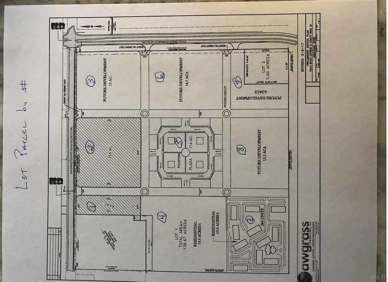 This is likely the most sought after frontage on CO Rd 20 parcel available or ever offered on the Foley Beach Express corridor. The entire parcel of a remaining 139.6 acres has been zoned as a PUD. Buyer must subdivide out their 15.6 acres Parcel ID 2, primarily through planning and zoning administrative action since the subject parcel is greater than 10 acres. Very simple deal, the PUD was approved with 1 “C” store.The entire parcel or remaining 139.6 acres may be purchased together or in part. See photos of Parcel ID’s by number.