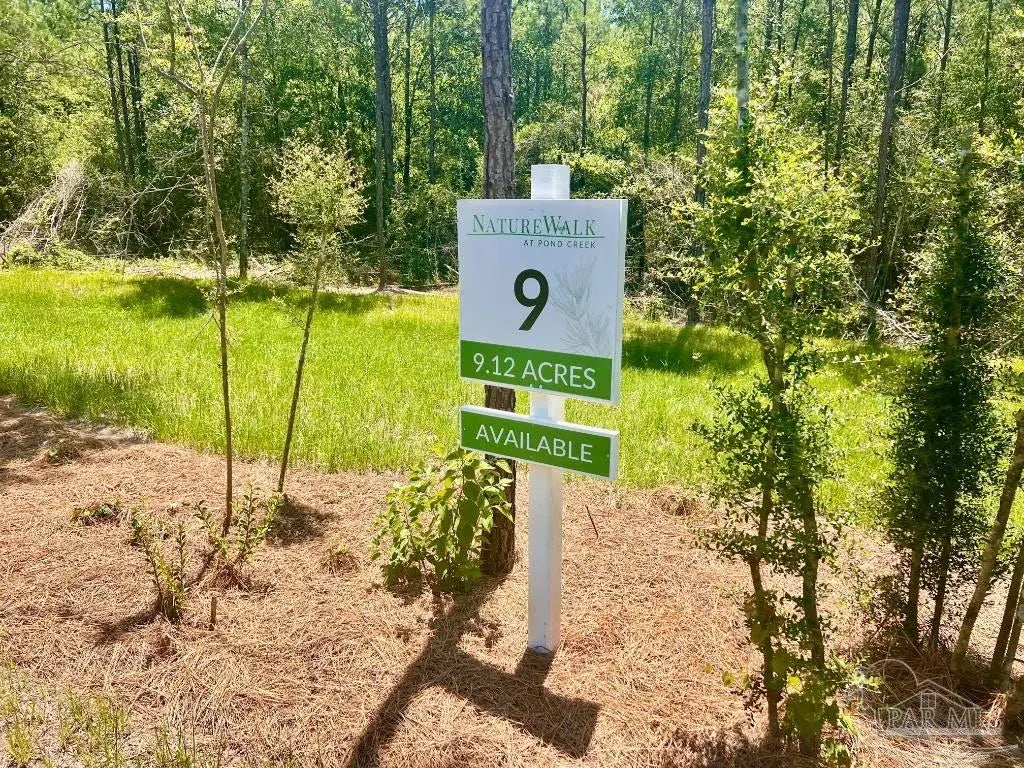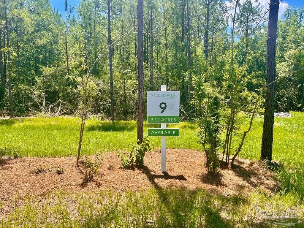 Discover the beauty of NatureWalk at Pond Creek, one of the most prestigious land communities in Northwest Florida. NatureWalk is nestled amidst pine tree forests, lush greenery, scattered oaks, and natural flowing creeks. The idealistic landscape is almost "untouched," providing privacy, peace, and serenity for each lot. Lot 9 is a beautiful and private 9.12-acre parcel located in a desirable cul-de-sac at the end of Creekdown Ln. There is approximately a 0.5-acre mulched homesite at the top of the lot, near the cul-de-sac. This homesite features a diverse array of vegetation, including mature pines, oaks, magnolia trees, and other trees that surround the creek area. The Pond Creek is located at the back of the property. ADDITIONAL COMMUNITY INFORMATION: NatureWalk at Pond Creek community was launched in 2023, and since then, this exclusive community has become a place that attracts buyers from all across the United States. The Owner's vision for this community is simple: Quality Family Living Centered Around Nature. Curved and paved roads, a distinctive community layout thoughtfully combined with Northwest Florida's natural beauty, high-end landscape features, common areas set in a scenic natural environment, and high-speed internet are all reasons for that. This unique community is situated on 653 acres of land, comprising 100 lots in total, and features homesites ranging from 2 to 15+ acres, including premium creek-front parcels. As of July 2025, close to 50 out of 100 parcels have been sold. LOCATION: Another aspect that makes this community very special is its location. NatureWalk at Pond Creek is conveniently located within a short drive of Publix, Big-Box stores, restaurants, and hospitals. Our community is centrally located for outdoor enthusiasts: from Blackwater River freshwater fishing and boating to our Gulf Coast, featuring the emerald blue waters of the Gulf of Mexico and beautiful beaches.