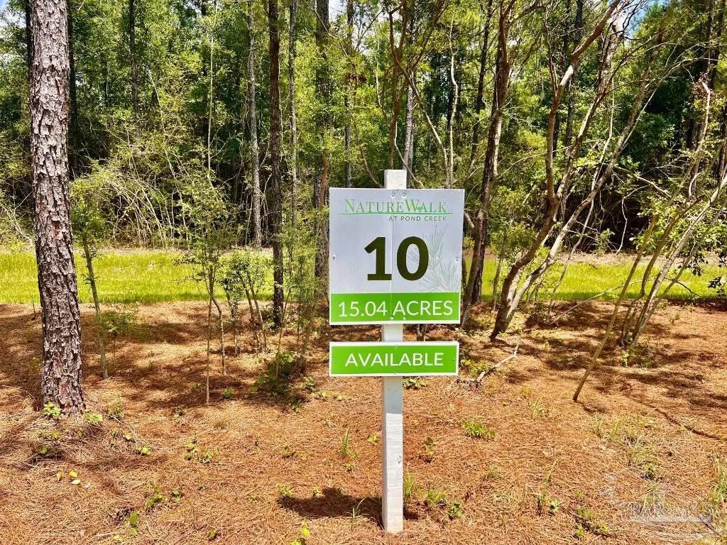 Discover the beauty of NatureWalk at Pond Creek, one of the most prestigious land communities in Northwest Florida. NatureWalk is nestled amidst pine tree forests, lush greenery, scattered oaks, and natural flowing creeks. The idealistic landscape is almost "untouched," providing privacy, peace, and serenity for each lot. Lot 10 is a spacious homesite located at the corner of NatureWalk Dr and Creekdown Ln. This parcel features a diverse array of vegetation, including mature pines, oaks, magnolia trees, and other trees that surround the creek area. The Pond Creek is located at the back of the property. Several trails have been cleared on this property. ADDITIONAL COMMUNITY INFORMATION: NatureWalk at Pond Creek community was launched in 2023, and since then, this exclusive community has become a place that attracts buyers from all across the United States. The Owner's vision for this community is simple: Quality Family Living Centered Around Nature. Curved and paved roads, a distinctive community layout thoughtfully combined with Northwest Florida's natural beauty, high-end landscape features, common areas set in a scenic natural environment, and high-speed internet are all reasons for that. This unique community is situated on 653 acres of land, comprising 100 lots in total, and features homesites ranging from 2 to 15+ acres, including premium creek-front parcels. As of July 2025, close to 50 out of 100 parcels have been sold. LOCATION: Another aspect that makes this community very special is its location. NatureWalk at Pond Creek is conveniently located within a short drive of Publix, Big-Box stores, restaurants, and hospitals. Our community is centrally located for the outdoor enthusiast: From Blackwater River for freshwater fishing/boating, Blackwater River State Forest for it's small creeks, horseback riding, nature trails, zip lining, canoeing and tubing, to our Gulf Coast with emerald blue waters of the Gulf of Mexico and beautiful sandy beaches.