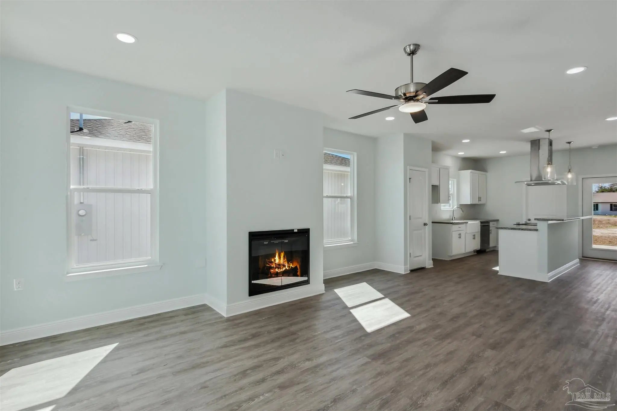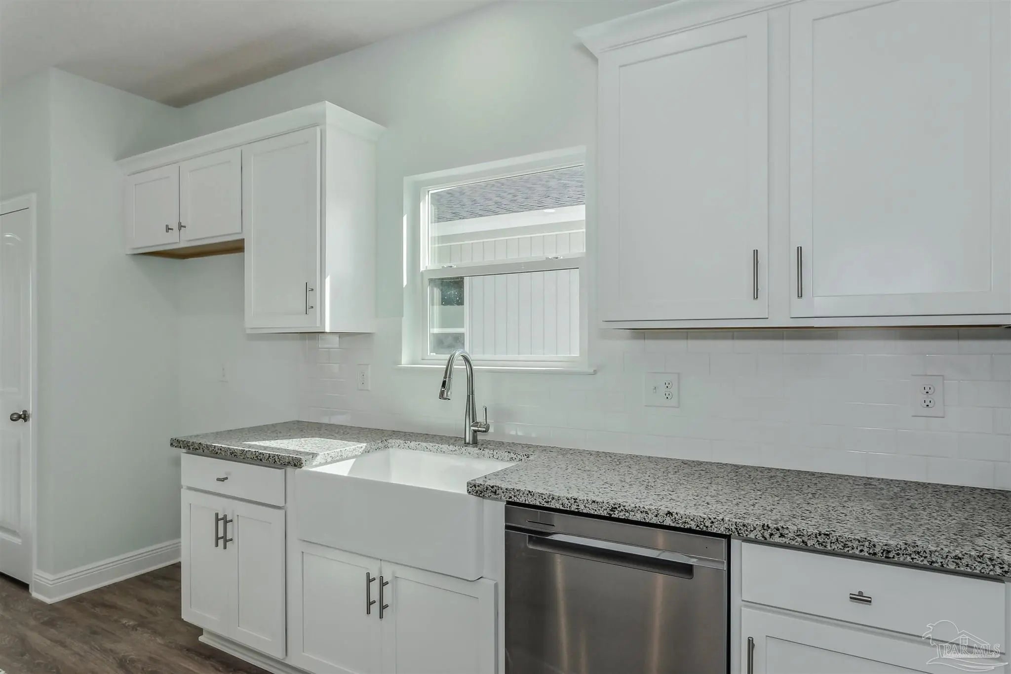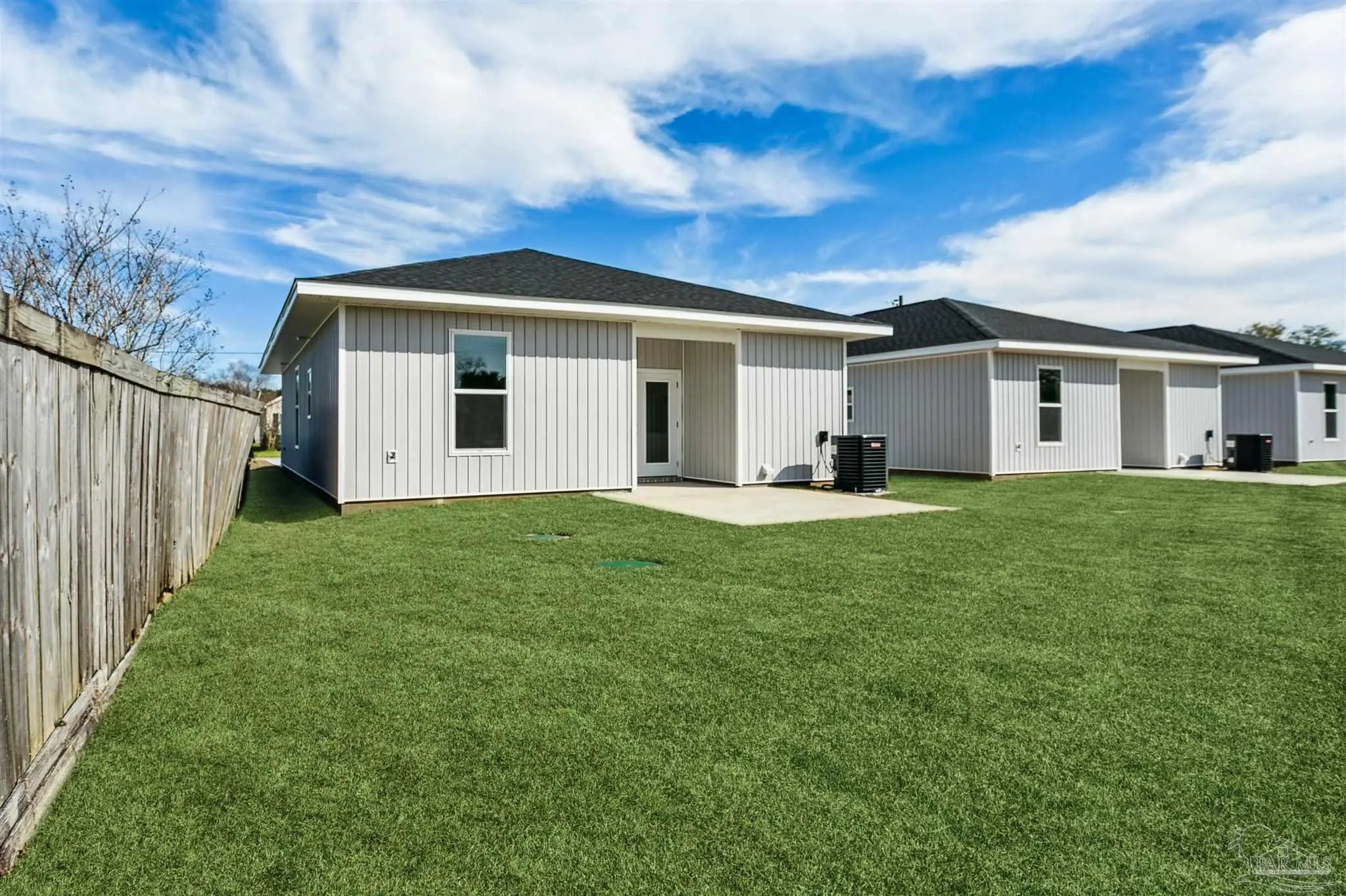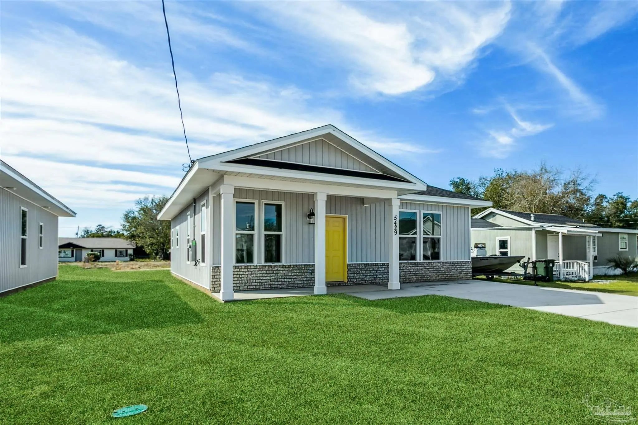 Charming beach cottage style 3 bedroom 2 bath home with bonus bedroom/office or flex space. Exterior features board and batten low maintenance vinyl siding with beautiful accent brick knee wall. The large windows throughout central living space provide tons of natural light coupled with high ceiling and the open floor plan give a large airy feeling to the interior of this home. Perfect size to accommodate various buyers' needs from Airbnb investors, to first time home buyers, or vacation home. Located near the beautiful sandy white beaches at Johnson's Beach or Perdido Key, its a short drive to putting your toes in the sand. In addition to the amenities surrounding the area the home itself has a number of upgrades to increase the comfort. A beautiful electric fireplace enhances the living/dining room area. Granite counter tops along with under-counter wine cooler, refrigerator, farm sink and tile back splash add a sophistication to the simple kitchen. The master bath has walk-in tile shower and both baths have granite throughout. French doors lead out to a patio on the back of home that can be covered and screen as a stage ten option! Make your appointment today to see this beautiful new construction home!