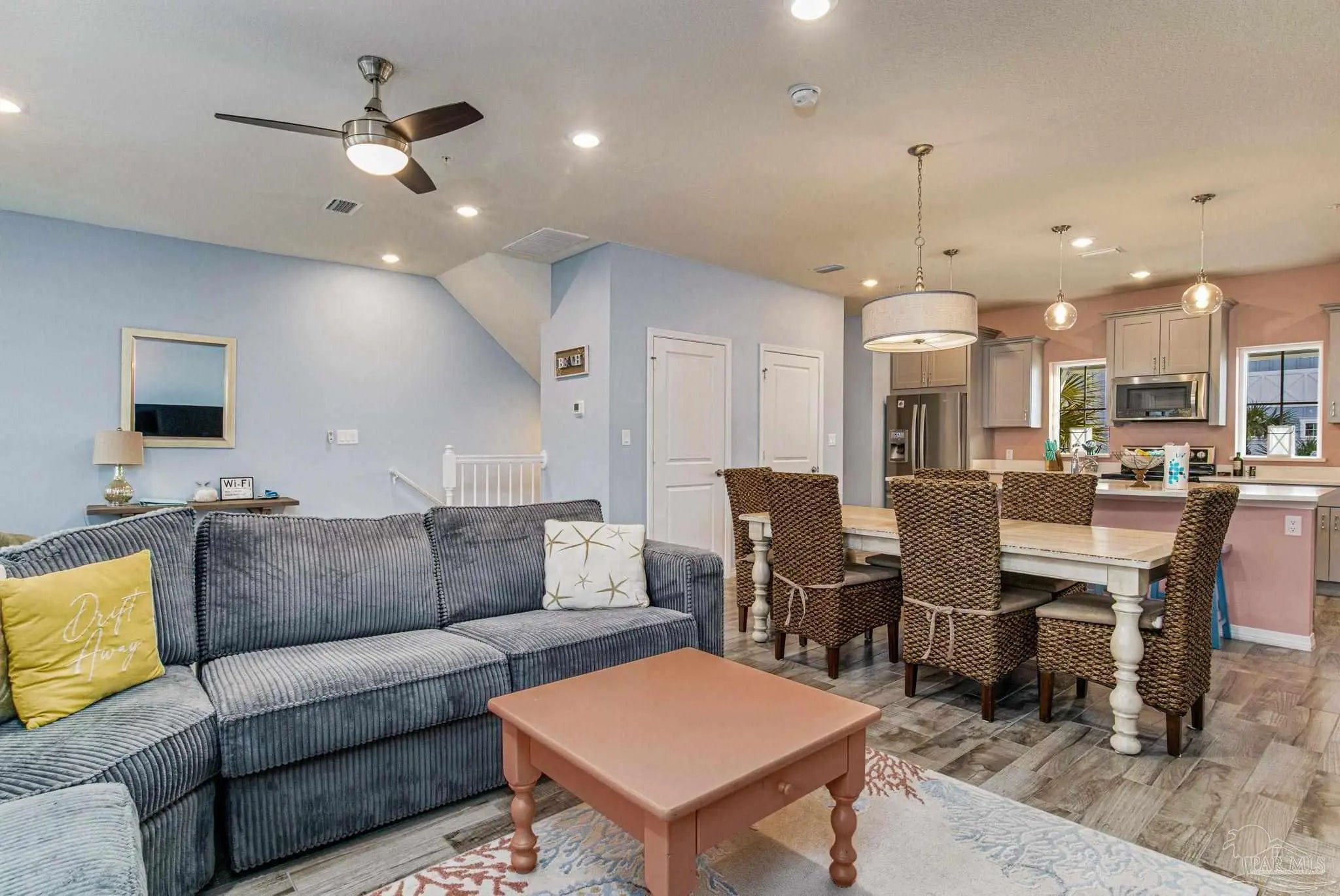 Beach living without the million dollar price tag! This Lost Key Golf & Beach Club two bedroom townhome has it all: modern kitchen with quartz countertops and stainless steel appliances, both bedrooms have their own ensuite bathrooms, open-concept living space, outdoor patio and second floor balcony, oversized 1.5 car garage with extra storage, and so much more! The house is walking distance to the beautiful beaches of Perdido Key and minutes from several state parks, the Johnson Beach National Seashore, and the Perdido Key snorkeling reef. Lost Key offers a quiet, golf cart-friendly, gated community perfect for families, retirees, and those looking for a vacation home/investment property. Lost Key includes access to a Gulf-front Beach Club (with pool, lounging area, restaurant, bar, and private beach access), a Clubhouse (with a gym, zero entry pool, and hot tub), an Arnold Palmer golf course, tennis courts, free beach chair/umbrella service, and a free neighborhood/beach shuttle. Home comes fully furnished and grossed $73k in rental income in 2023 with already $52k in the books in 2024. Come make this turn-key home yours and celebrate by lounging at the private beach access while you watch the dolphins and rays swim in Perdido’s beautiful emerald green waters! Agent/owner.