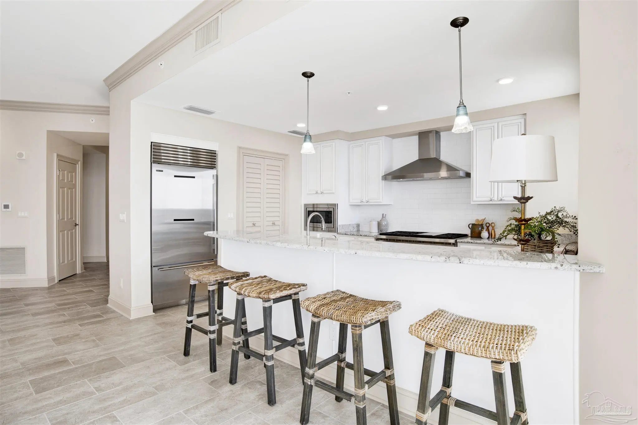 DON’T MISS THIS RARE OPPORTUNITY TO OWN A ONE-OF-A-KIND, CUSTOM GULF-FRONT RESIDENCE AT VISTA DEL MAR WITH STUNNING SUNSET VIEWS! VISTA DEL MAR IS A LOW-DENSITY, GATED COMMUNITY UNIQUELY SITUATED BORDERING MILES OF PROTECTED GULF ISLANDS NATIONAL SEASHORE AND OFFERS UNCROWDED BEACHES WITH A 30 DAY MINIUMUM RENTAL REQUIREMENT AND ONLY 64 OWNERS. COME HOME TO THIS FABULOUS 8th FLOOR WEST-CORNER RESIDENCE with huge 810sq.ft. wrap-around balcony, built-in outdoor gas grill, balcony storage closet and multiple areas to relax or entertain. This one-of-a-kind CUSTOM 4-Bedroom, 4- Full & 2 Half bath residence at Vista Del Mar is truly a “home” at the beach; with designated garage covered parking, spacious living areas and expansive outdoor space. The living area is a perfect space for entertaining with 10’ ceilings, floor-to-ceiling glass, separate dining area and wet bar. Enjoy the fabulous Chef’s kitchen with eat-in-bar, white cabinetry, granite countertops, spacious pantry and top-of-the-line appliances including Wolf gas range and Sub Zero refrigerator. The spacious Primary Suite has been reconfigured to adjoin with what was originally the first guest bedroom - making it a unique private sitting area or office complete with half bathroom, allowing the Primary Suite to encompass the entire left side of the residence from the front entry to the gulf-front balcony. The bathroom has been redesigned to allow for an open, seamless flow with oversized tile shower. Vista Del Mar amenities feature a grand lobby, outdoor pool with expansive beachfront deck, hot tub and multiple covered, outdoor seating areas. Heated, Gulf-front indoor pool with gorgeous water views and owner’s health club featuring a fully equipped fitness room, yoga studio, and massage treatment rooms. The Club Room boasts full bar, pool tables, and TVs. Vista Del Mar offers one of the few handicap accessible beach walkovers with ramp. WELCOME HOME TO LUXURY BEACHFRONT LIVING!