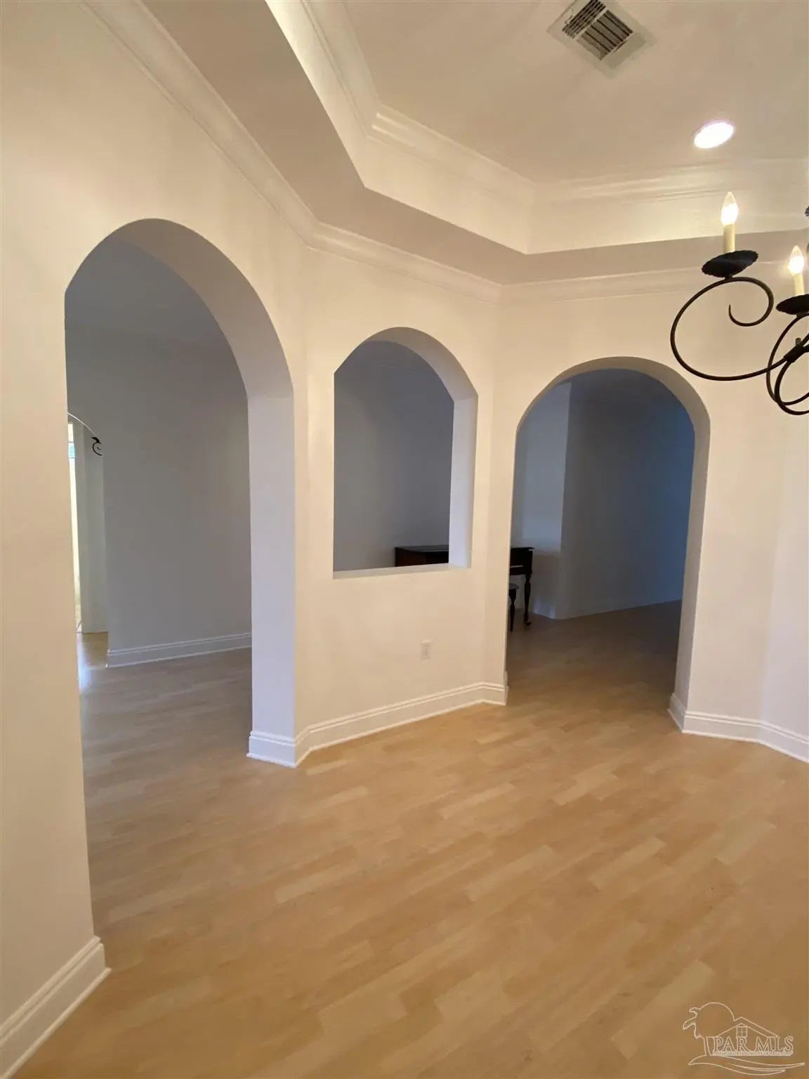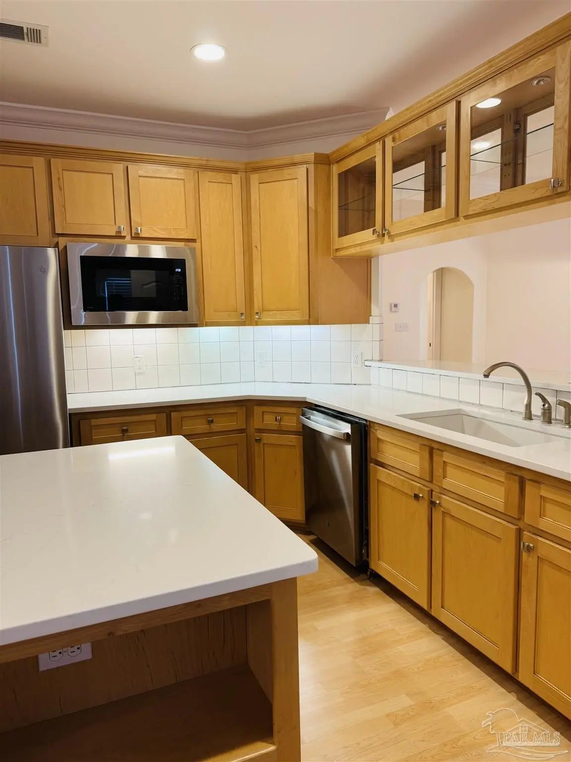 This one owner custom home has 3 bedrooms and 2 full Bathrooms along with 2 car garage, sun room, porch and covered patio. Located in a prestigious neighborhood of the WHISPERS AT CORDOVA featuring underground utilities, sidewalks, lamp post, lovely landscaped entrance and a very well managed HOA. Fees only $400 per year. Recent Home Upgrades: NEW ROOF installed April 2024 as well as entire interior painted in white/neutral colors, new stainless appliances, new carpet, quartz countertops and tile flooring in bathrooms and large laundry room. 3 Ton Bosch HVAC system install 2018. The small back patio features new sidewalk, covered patio with metal roof and fan. The spacious master suite features trey ceiling, French doors to sun room situated in rear of home facing courtyard, 2 walk-in closets, garden tub w/ glass block & separate shower, double vanities, linen closet. The main living area has wood looking floors, separate dining room & eat in kitchen and side screened coffee porch. The living area has high trey ceilings, 6" crown molding with recessed lighting and gas hearth fireplace. Small low maintenance fenced yard. The neighborhood has an excellent reputation and fantastic location close to hospitals, shopping, downtown, airport. This is a custom patio home with no room for a swimming pool, quaint low maintenance yard. Dogs allowed in HOA but there is a leash law.
