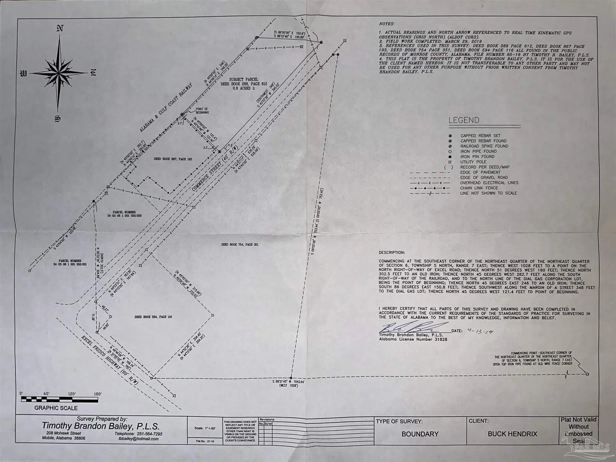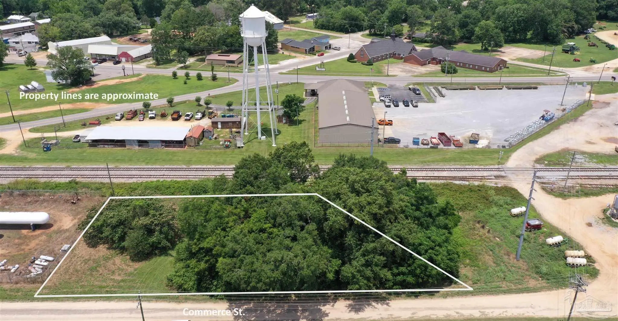 Frisco City, AL - 0.8-acre parcel of optimal real estate. Situated centrally within city limits, this property has 348 feet of paved road frontage, ensuring easy access and high visibility for your business venture. The back of the property backs up to Alabama & Gulf Coast Railway offering logistical advantages for commercial operations. Whether you’re considering retail, industrial, or service-based endeavors, this location provides unparalleled connectivity for your business needs. City utilities are available with required connection fees. Mineral rights do not convey. However, with its strategic location and versatile zoning, there's potential for growth. Don’t miss out on the chance to secure your foothold in Frisco City’s business landscape.