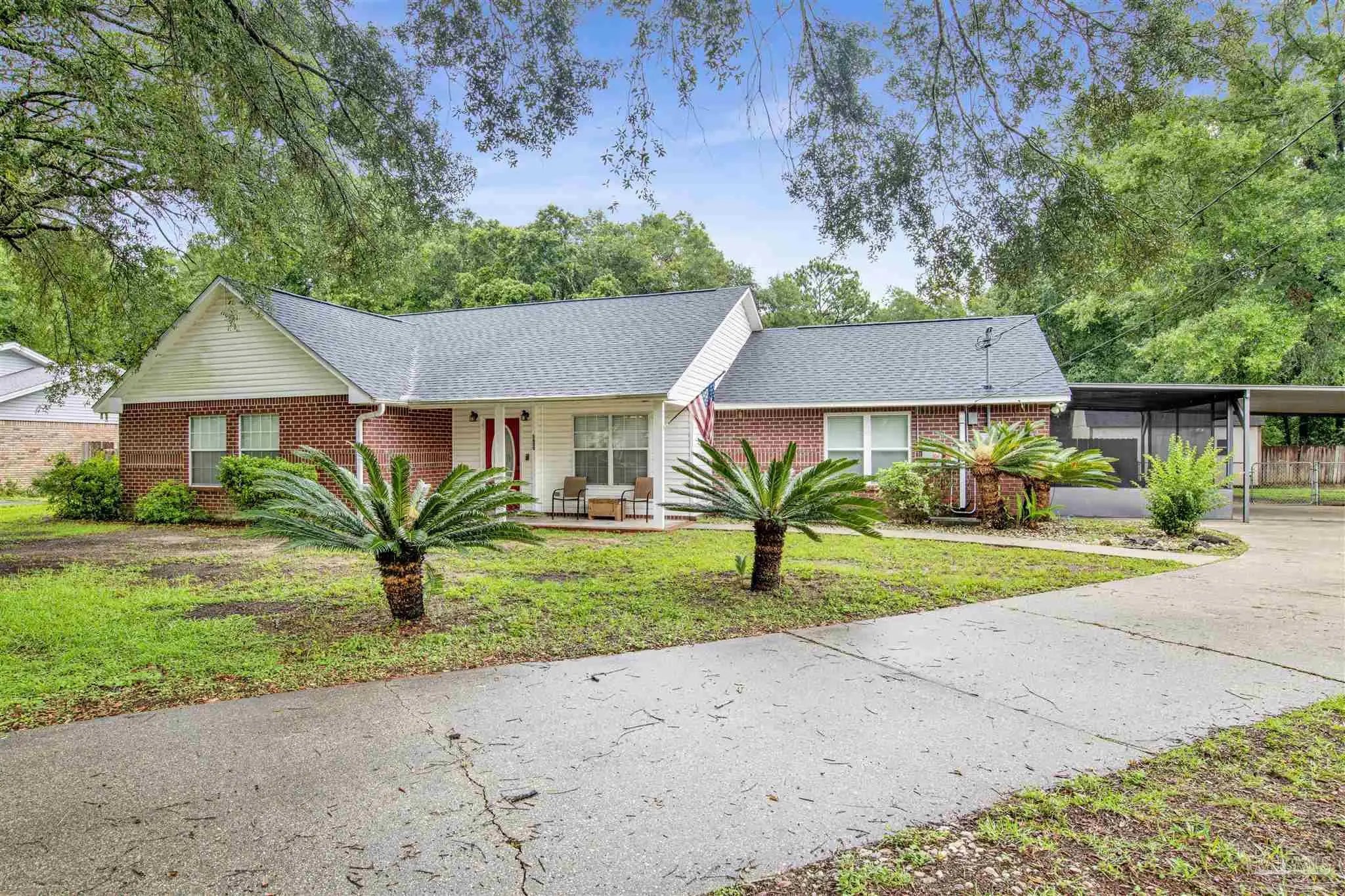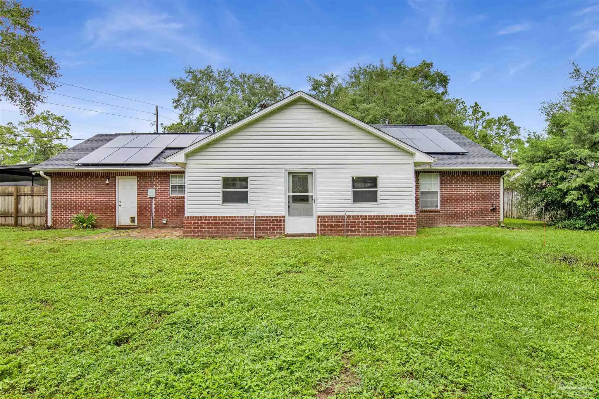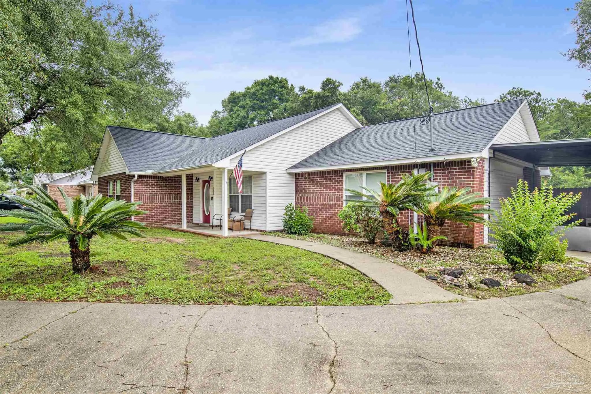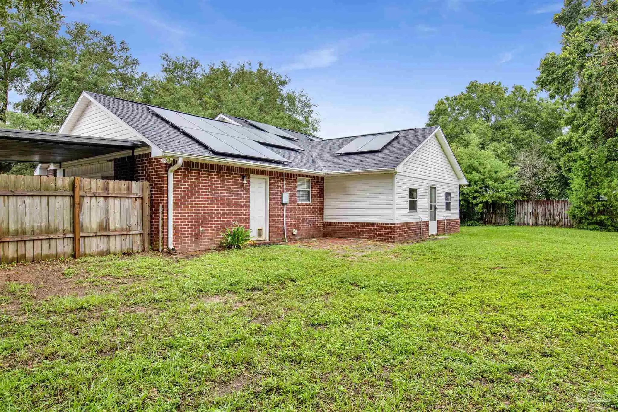 Welcome to your ideal home! This 4-bedroom, 2-bath residence sits on a spacious corner lot and is move-in ready, boasting modern amenities and thoughtful design. Enter into the inviting living room with its vaulted ceiling and cozy gas fireplace, seamlessly connected to the dining area for effortless entertaining. The kitchen is a chef's delight with granite countertops and newer stainless steel appliances. French doors lead to the delightful Florida room, featuring tile flooring and an exposed brick wall with expansive windows overlooking the backyard. The primary bedroom offers a tranquil retreat with carpeted floors, a trey ceiling, and a spacious walk-in closet. Pamper yourself in the primary bath, complete with double vanities and a large walk-in shower featuring benches. The home includes two well-sized bedrooms with ceiling fans and ample closet space, along with an oversized third bedroom that could serve as a bonus room, playroom or office. A full bath with a single vanity and tub/shower combo ensures convenience for everyone. Outside, enjoy the large fenced backyard, enhanced by solar panels that provide sustainable energy solutions. The solar panels will be paid off by the seller. Relax on the screened porch or utilize the spacious shed for storage and projects. This home combines functionality with elegance, offering a comfortable and eco-friendly lifestyle. Don't miss the chance to call this beautiful property your own!