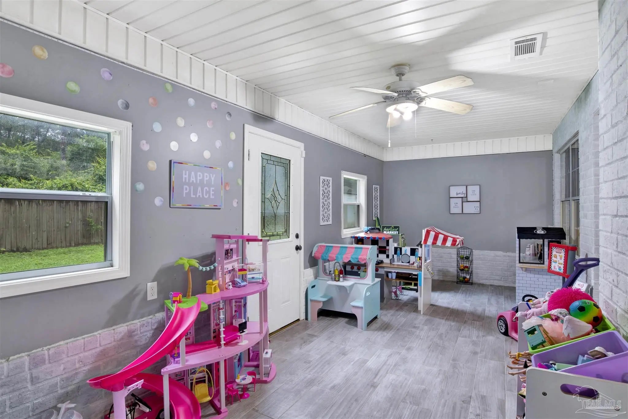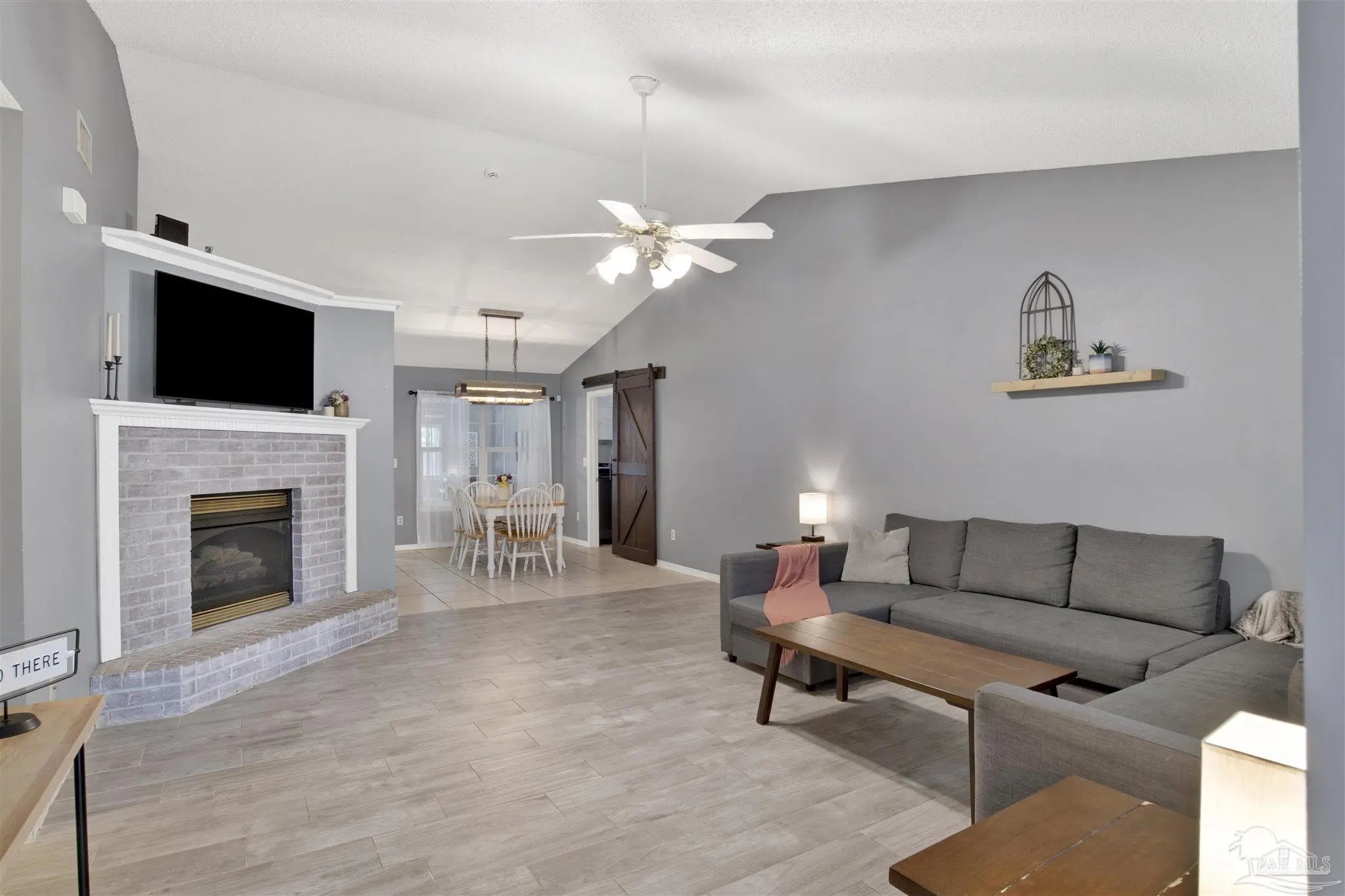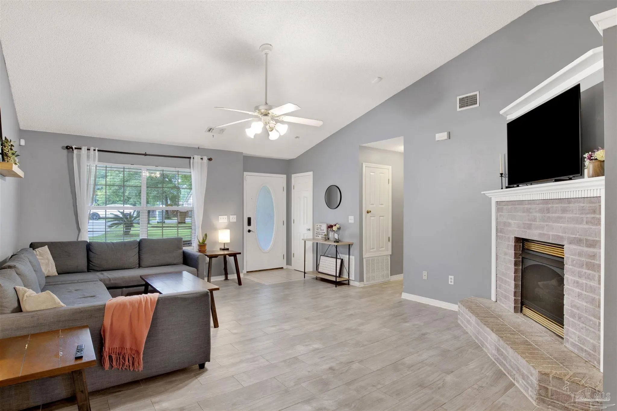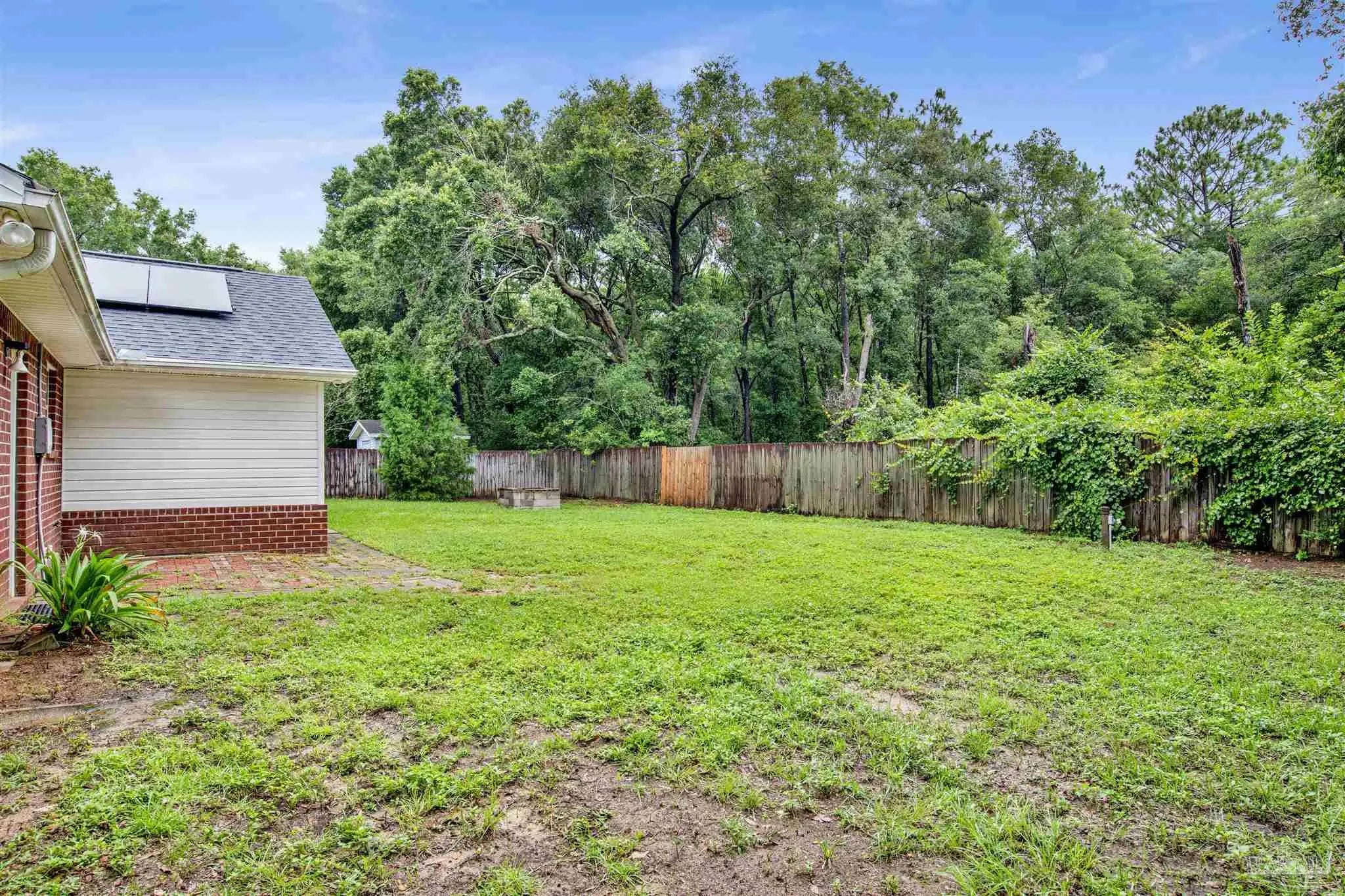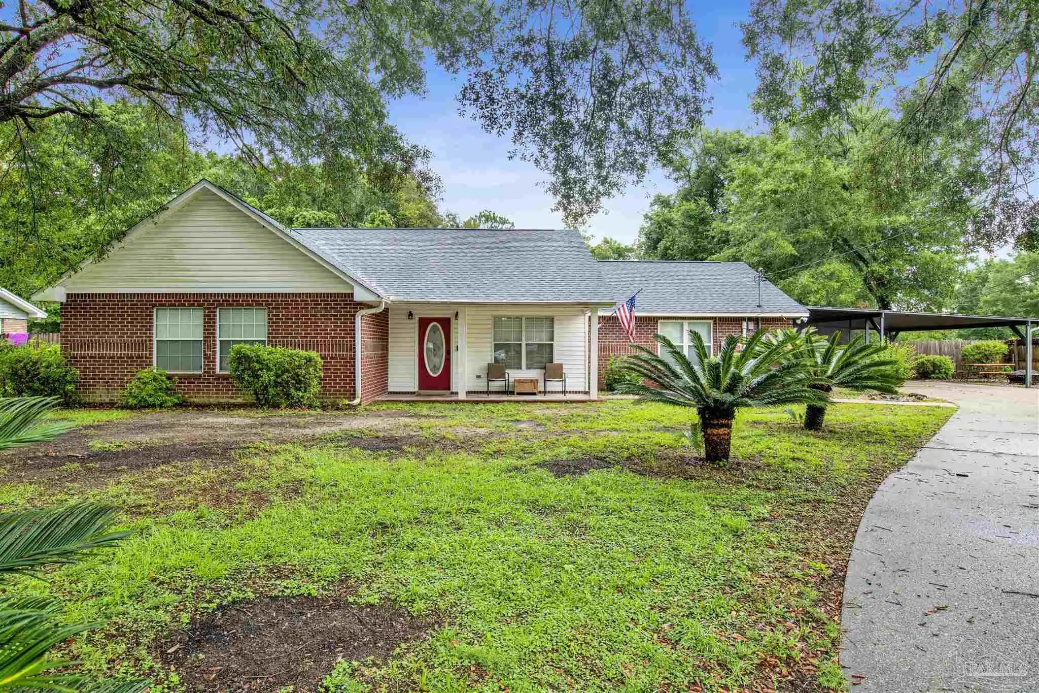 Welcome to your ideal home! This 4-bedroom, 2-bath residence sits on a spacious corner lot and is move-in ready, boasting modern amenities and thoughtful design. Enter into the inviting living room with its vaulted ceiling and cozy gas fireplace, seamlessly connected to the dining area for effortless entertaining. The kitchen is a chef's delight with granite countertops and newer stainless steel appliances. French doors lead to the delightful Florida room, featuring tile flooring and an exposed brick wall with expansive windows overlooking the backyard. The primary bedroom offers a tranquil retreat with carpeted floors, a trey ceiling, and a spacious walk-in closet. Pamper yourself in the primary bath, complete with double vanities and a large walk-in shower featuring benches. The home includes two well-sized bedrooms with ceiling fans and ample closet space, along with an oversized third bedroom that could serve as a bonus room, playroom or office. A full bath with a single vanity and tub/shower combo ensures convenience for everyone. Outside, enjoy the large fenced backyard, enhanced by solar panels that provide sustainable energy solutions. The solar panels will be paid off by the seller. Relax on the screened porch or utilize the spacious shed for storage and projects. This home combines functionality with elegance, offering a comfortable and eco-friendly lifestyle. Don't miss the chance to call this beautiful property your own!