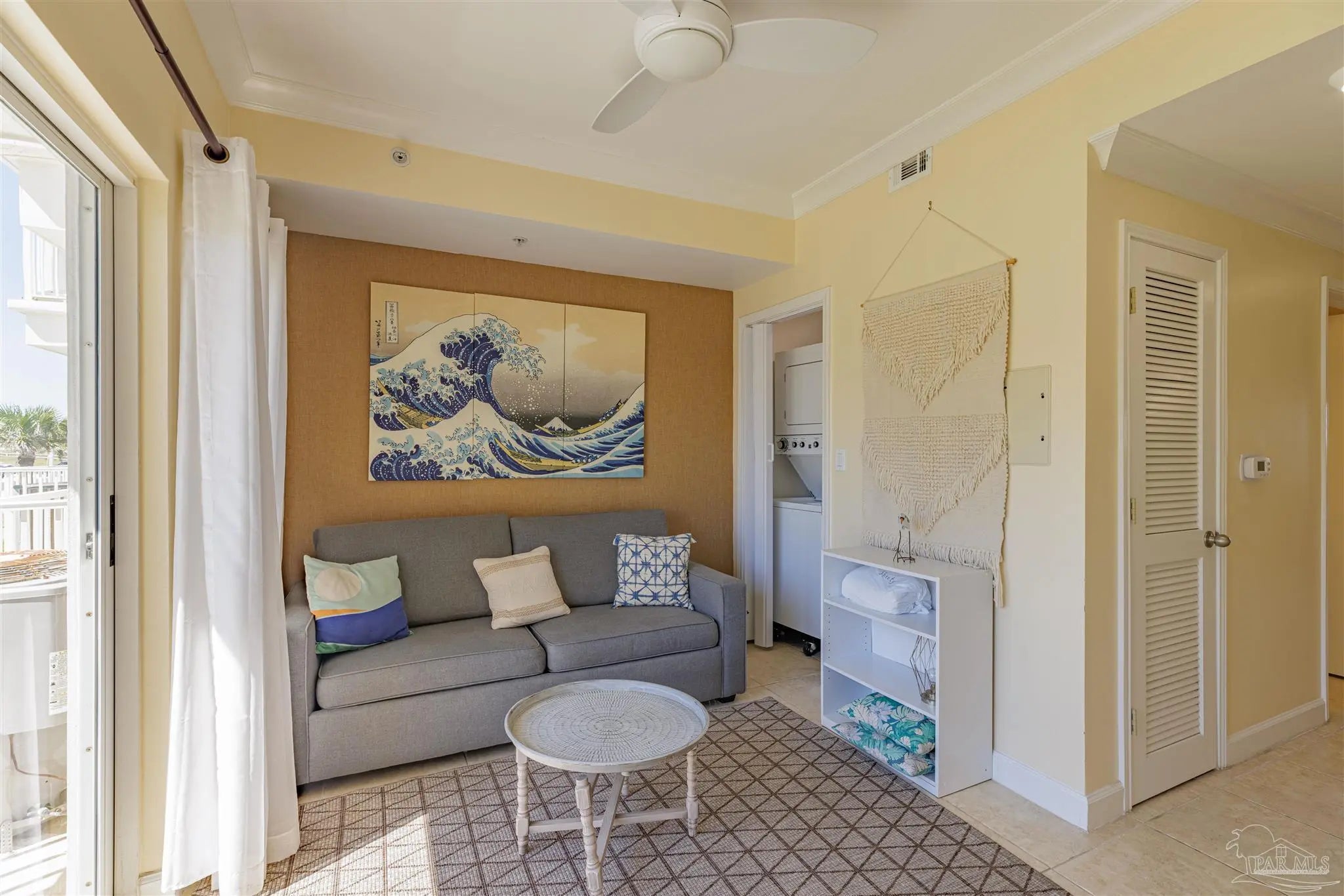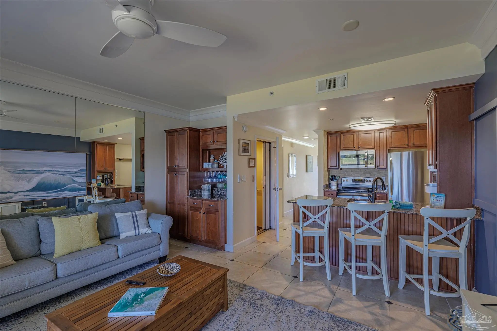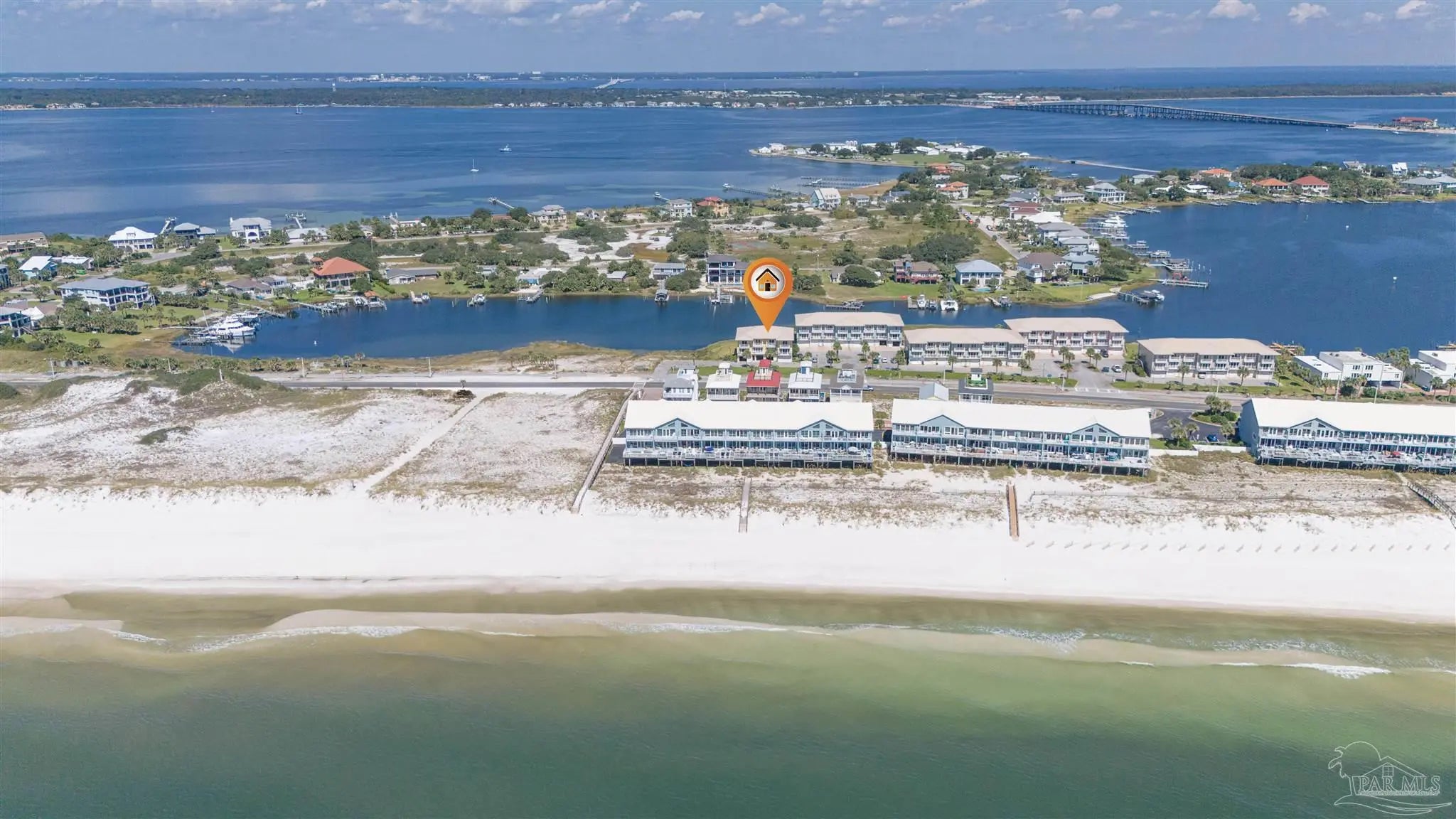 Stunning Waterfront Property with Gulf & Sound Views + Elevator | Turnkey Investment Opportunity Welcome to this beautifully appointed, move-in-ready home on picturesque Pensacola Beach — offering the rare combination of elevator access, breathtaking views of both the Gulf of Mexico and Little Sabine Bay. This location can be used for full-time living, a vacation rental, or a second home. This 2-bedroom, 2.5-bath residence features a spacious open-concept living area with an eat-up breakfast bar and panoramic water views. The primary suite offers a private balcony, handicap-accessible en suite bathroom, and large walk-in closet. The second bedroom also includes its own private balcony with Gulf views and an en suite bath, creating a perfect guest or rental setup. Enjoy the convenience of a drive-through two-car garage with doors on both ends — ideal for beach gear storage or converting into a breezy sitting area or outdoor entertainment space. Centrally located on Pensacola Beach with access to dining, shopping, and entertainment. This property offers a rare opportunity to enjoy the coastal lifestyle with income potential. Schedule your showing today — this one won't last!