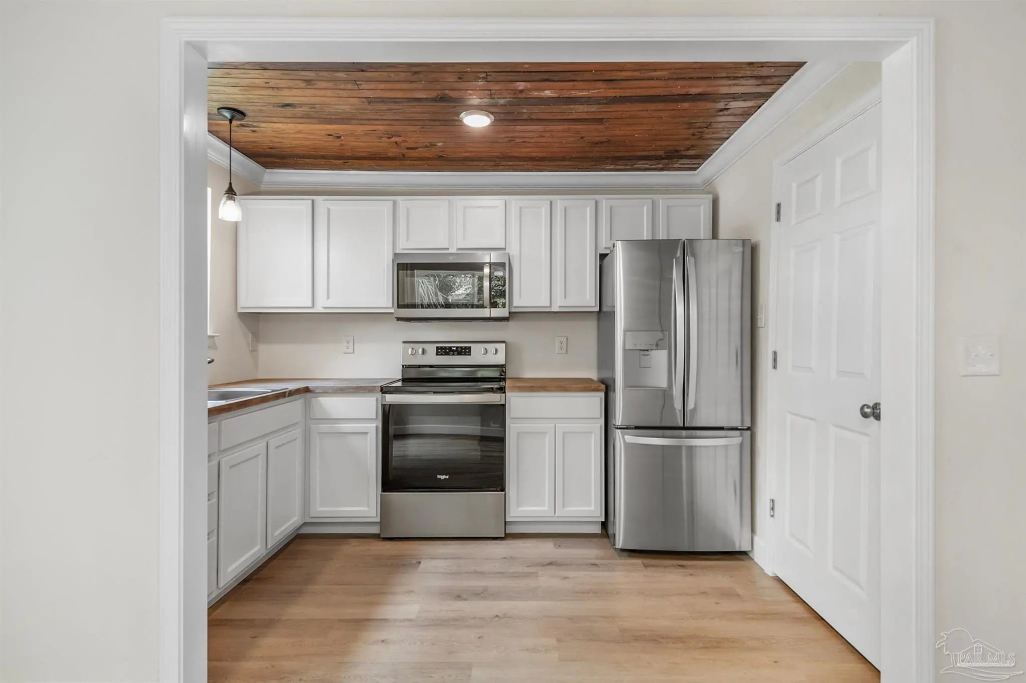 Welcome to your charming Pensacola retreat! This adorable 2 bedroom, 1 bathroom home is filled with character from top to bottom. Step inside and fall in love with the wood block countertops, stainless steel appliances, hardwood flooring, and eye-catching shiplap ceilings that bring all the cozy vibes. Enjoy plenty of outdoor space with a large backyard—perfect for relaxing, entertaining, or weekend projects—and a shed for extra storage! All of this, just minutes from Downtown Pensacola, NAS Pensacola, plus tons of shopping, dining, parks, and more. It’s the ideal spot for convenience and comfort wrapped into one sweet home! Additional Info: Pets on approval w/ $350 refundable deposit + $50/mo pet rent Military clause Renters insurance required Washer/dryer hookups located inside the home
