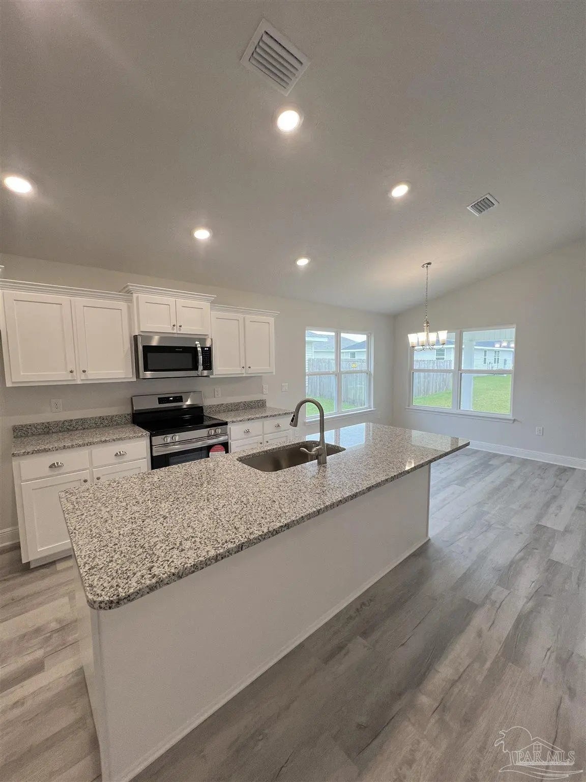 MOVE IN READY!!! Welcome to Pine Top!! This well laid out home design features 3 bedrooms and 2 bathrooms including a large master suite with crown mold and a walk-in closet. This popular open concept plan also includes a granite counter kitchen showcasing an island and direct access to the expansive covered porch. Other features sure to please are durable, Coretec vinyl plank flooring throughout the home, 2 car garage, stainless steel appliances and much more. Call today for further information. In this new neighborhood you will find our newest floor plans of brick fron 3 sides vinyl patio homes with architectural shingles, hurricane storm panels, double pane low E windows, and sodded yards to 120" from front property line. Other standards are: quality bump and stagger upper cabinets with hidden hinges and crown molding, stainless Frigidaire appliances (stove, microwave, dishwasher), Moen faucets, knockdown ceilings and orange peel textured walls, 5 14" baseboards, LED lighting in kitchen and over tubs & showers, 50 gallon water heater, and much, much more! PICTURES ARE NOT A TRUE REPRESENTATION.