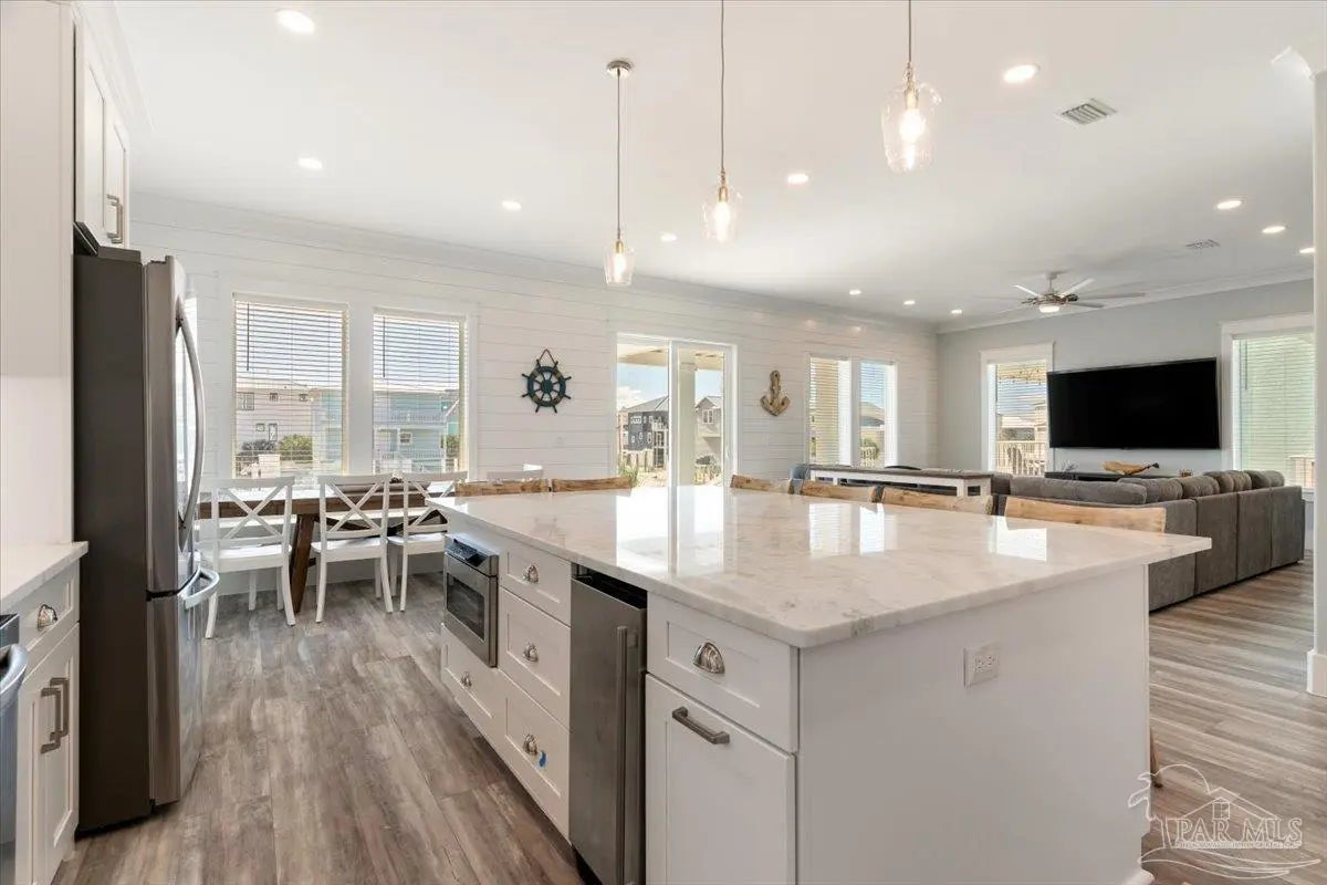 FULLY FURNISHED Bring your boat -New Custom, Luxury, Waterfront property is ready for viewings. Bring your boat -New Custom, Luxury, Waterfront property is ready for viewings. Short Term Rentals are already pouring in as people want to be the first to stay in this amazing property. This Luxurious Waterfront Retreat has water views from most windows and the best sunsets from the crows nest. Situated directly on the pristine shores of Navarre Beach, this property is a rare gem offering Breathtaking views and the emerald waters of the Gulf Coast and direct access to the sound waters of the intercoastal Waterway .Built with impeccable attention to detail , 180 MPH BUILD ,With Expansive open living areas flooded with natural light-Modern gourmet kitchen featuring top-of-the-line appliances and custom cabinetry-Five spacious bedrooms, each bedroom has its own private bathroom. For maximum comfort and privacy. Luxurious master suite with a private balcony overlooking the Gulf of AMERICA & The treasured National Seashores -Impressive outdoor living spaces including multiple balconies and a sprawling patio perfect for entertaining or relaxing while enjoying the sea breeze along with an amazing observation deck towering well above the other homes in the area-Attached garage and ample parking for guests-Located in the highly sought-after Navarre Beach community, known for its pristine beaches, tranquil atmosphere, and proximity to dining, shopping, and outdoor recreation options. Don't miss out on this rare opportunity to make your dreams of coastal living a reality. Unlike saturated markets, Navarre offers a unique blend of natural beauty, affordability, and growing demand. Strong rental market: With consistent tourism and growing popularity, Navarre boasts high occupancy rates and lucrative rental income potential. Appreciation potential: As the area continues to develop, property values are expected to steadily increase, promising significant returns on investment.