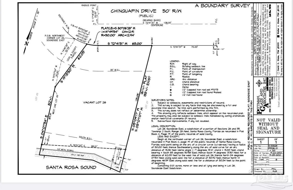 Beautiful, cleared and level soundfront lot located in Gulf Breeze and ready to build your coastal dream home on. 98 Ft of water-frontage located right off Soundside Dr. in a very quiet and private neighborhood. You are surrounded by beautiful waterfront homes .Breathtaking views and an abundance of sea life at your doorstep. Just a quick boat ride over to the beach & Gulf of Mexico. Enjoy fishing, sun, sand, relaxation and why not grab you some lunch or dinner while you are out. Santa Rosa Sound is very boat friendly. Plenty of restaurants, groceries, shopping, schools & medical facilities close by. With this prime location, this property is the perfect spot to create your waterfront paradise.