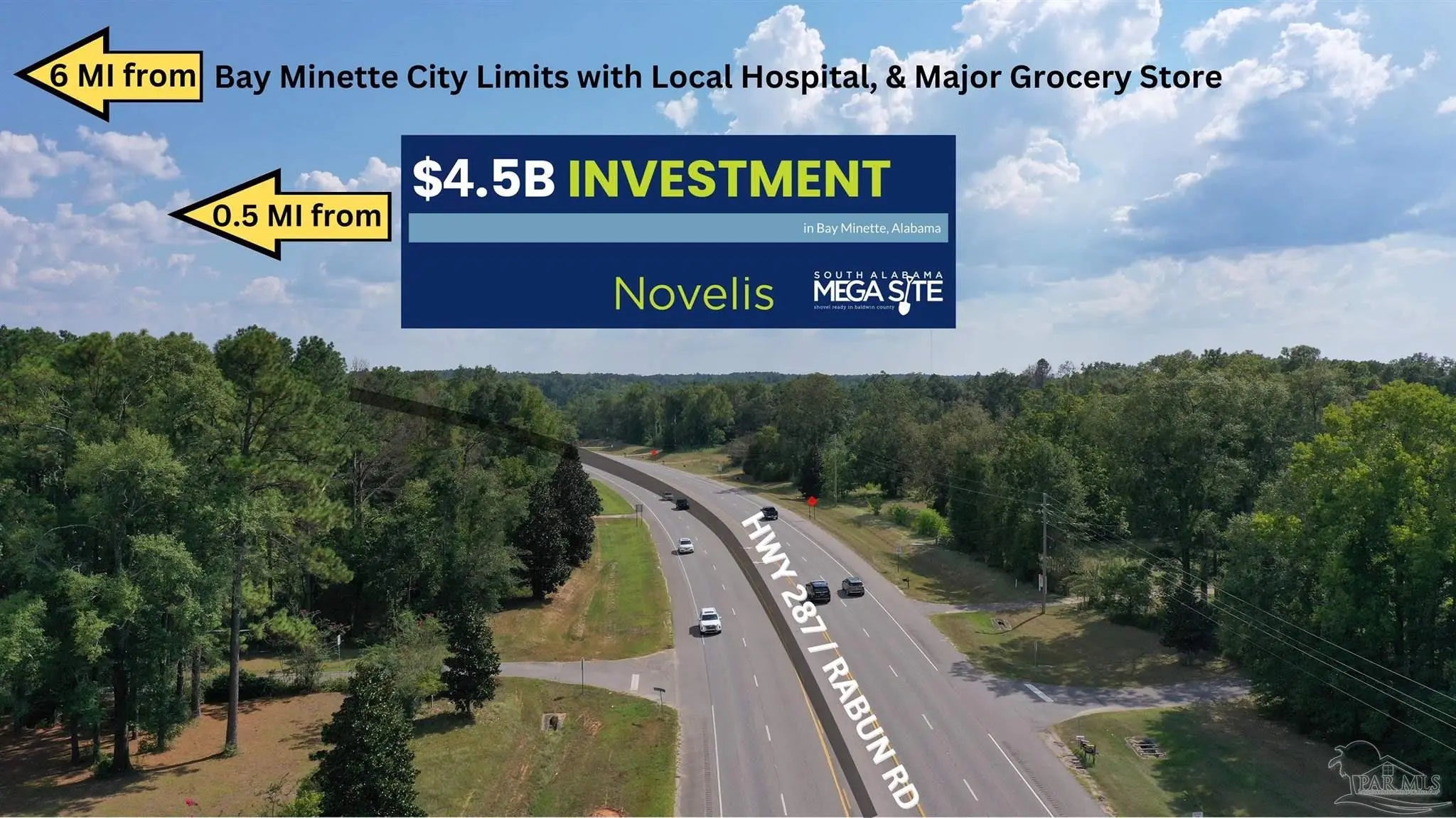 Bay Minette, AL-1 Acre Less than a Mile from I-65, Novelis & Mega Site, Fast Growth Area, High Traffic- This commercial lot offers excellent visibility & access for developers, investors & national brands seeking high-traffic commercial property near I-65. With 10,637 AADT on Rabun Rd/Hwy 287 (up 6.8% in one year) & 21,595 daily vehicles on I-65 (up 3.4%), this location provides strong visibility & consistent exposure for retail, hotel, restaurant, etc. Surrounding Developments: *25 mins from Baldwin Prep Academy. *New 116-Site RV Park near the Mega Site to serve industrial workers, travelers & visitors. *Old Towne Commons PUD (413 ± Acres): Approved mixed-use project with Phase 1 (77 single-family lots) & Phase 2 (115 lots) already platted; full plan includes 764 single-family lots, 392 multi-family units & 47 ± acres of commercial space. *Hilton-Branded Hotel & 2 Restaurants: expanding lodging & dining options. *“31 Commons” Retail & Office Center: Planned along U.S. 31 South to add new retail & commercial opportunities. *Big Mike’s Steakhouse & Cobblestone Hotel: planned for downtown, driving Bay Minette’s revitalization. *Novelis $4.5 Billion Aluminum Plant: Fueling regional industrial & infrastructure growth. Zoning Flexibility & Investment Advantages: Unzoned property allows for restaurant development sites, gas stations, quick-service restaurants (QSRs), convenience stores, multi-family projects, RV parks, or warehouse space. Located in an Opportunity Zone, this property offers significant tax incentives for developers and investors. Additional Features include a single-family home, shop & detached garage. Proximity to Key Areas: 6 miles to Downtown Bay Minette. 34 miles to Mobile, AL. 58 miles to the Gulf of Mexico. Financing Assistance Available: Eligible for SBA commercial real estate financing for qualified buyers and developers. This strategic location is poised for commercial success & ready for development.