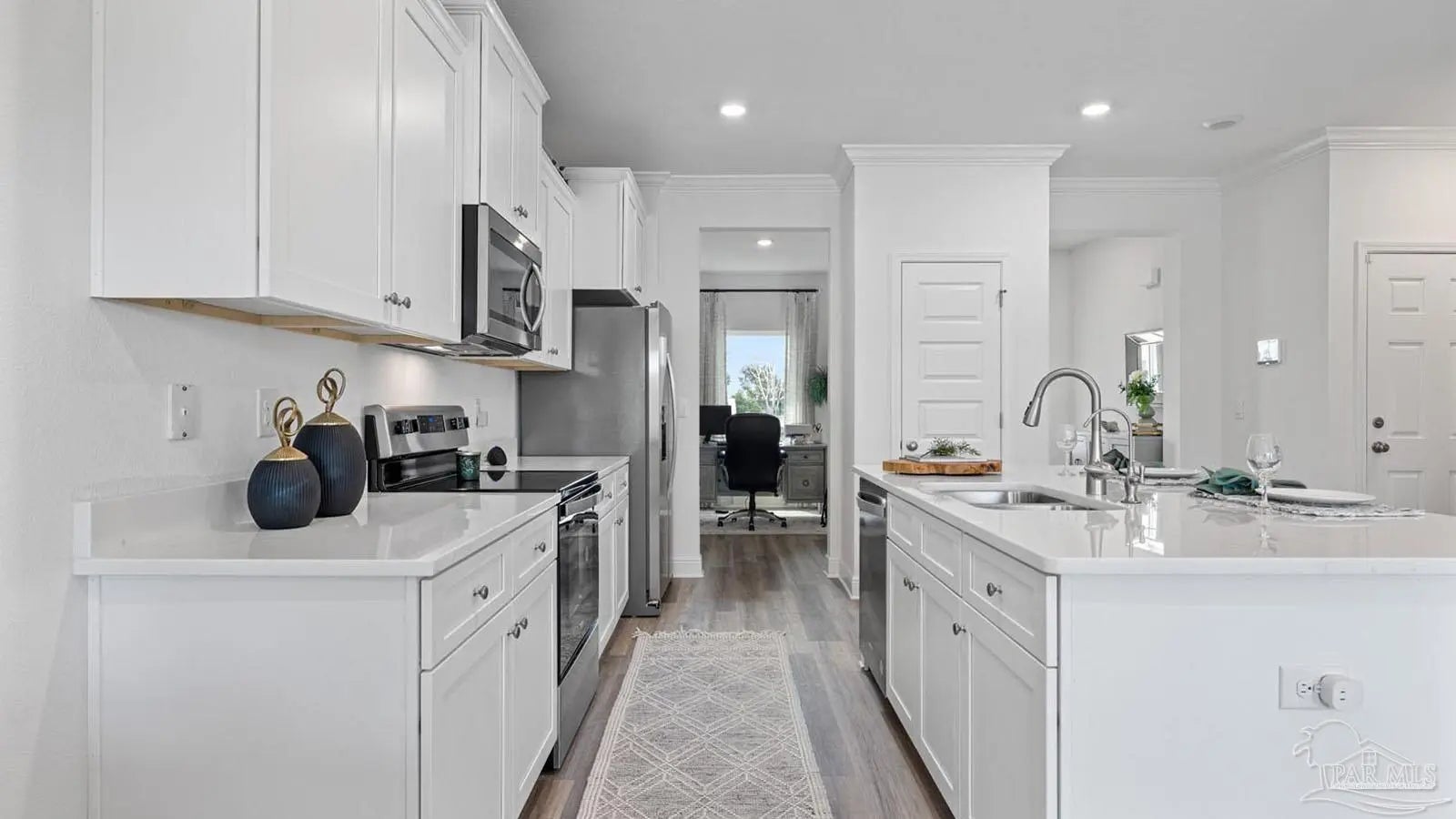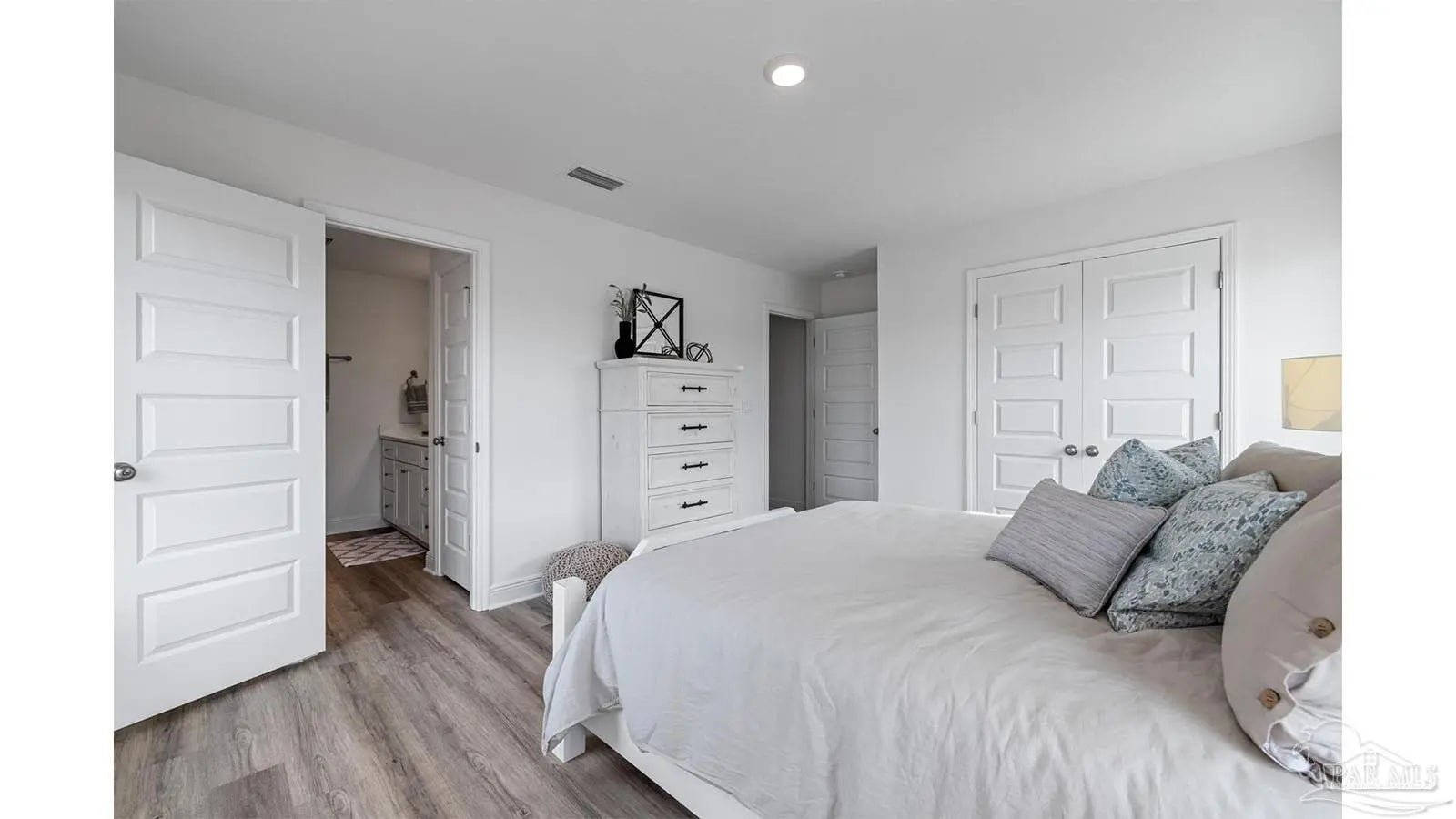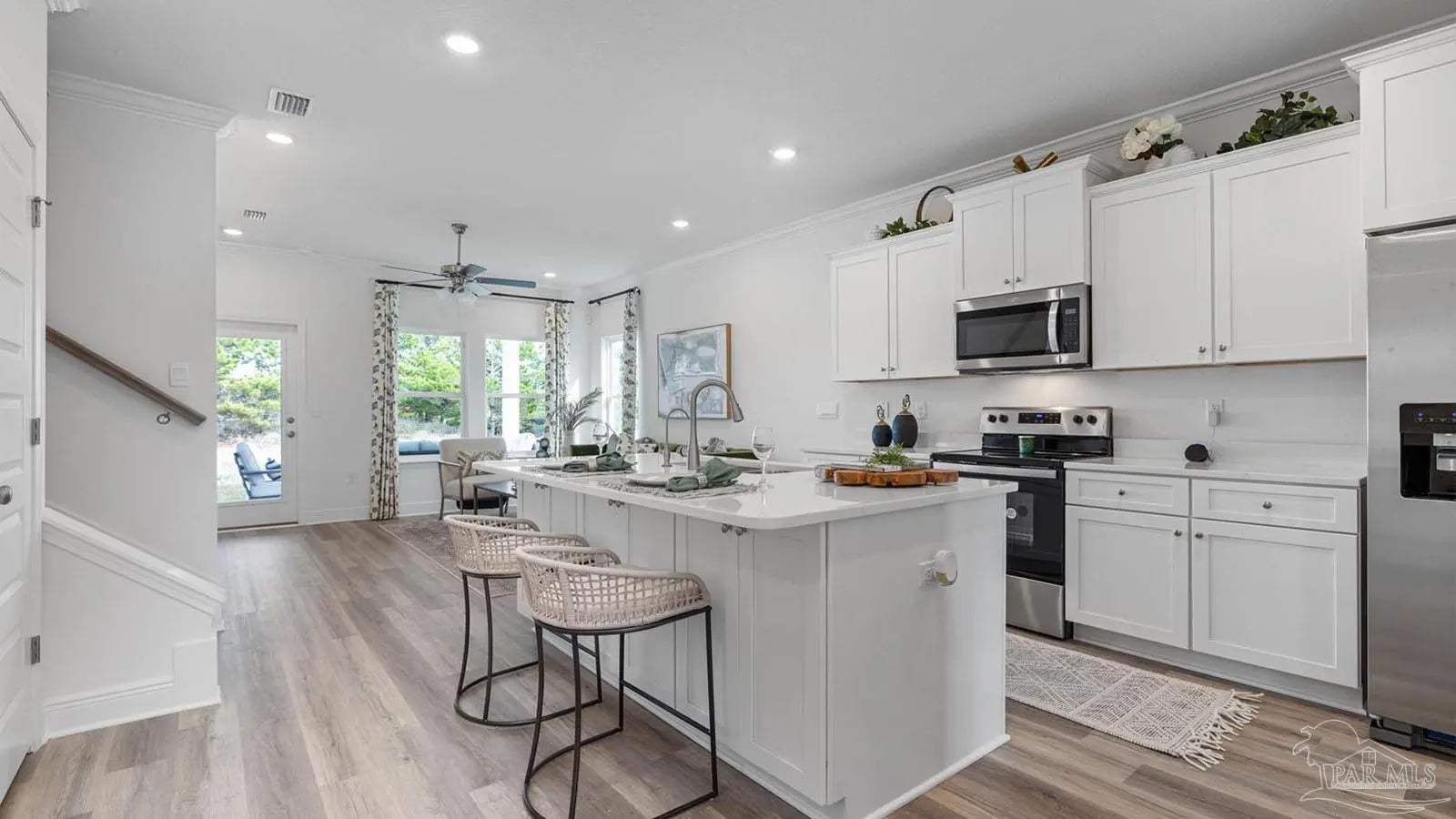 Explore the Alabaster Plan at Martin Preserve in Pensacola! The Alabaster plan is a stunning 2 story home featuring 4 bedrooms, 3.5 bathrooms and EVP flooring throughout the common areas and bathrooms. As you enter the home, you are greeted by an open living area and a beautiful kitchen complete with quartz countertops, Shaker-style cabinetry, and a large island with a stainless-steel sink. The spacious primary suite is located on the first floor with en-suite bath, and a large walk-in closet. The first floor also features a half-bath and a covered patio to make entertaining a breeze. On the second floor you will find an additional family room, 2 full bathrooms, and 3 guest bedrooms. This home also features the Smart Home Connected package. Conveniently located near Blue Angel Parkway and Highway 98, you're just a short drive from the Pensacola Naval Air Station, shopping, dining, schools, and beautiful beaches.