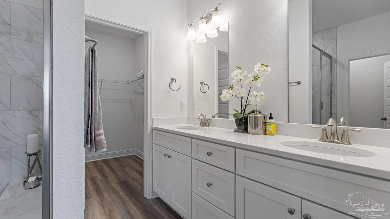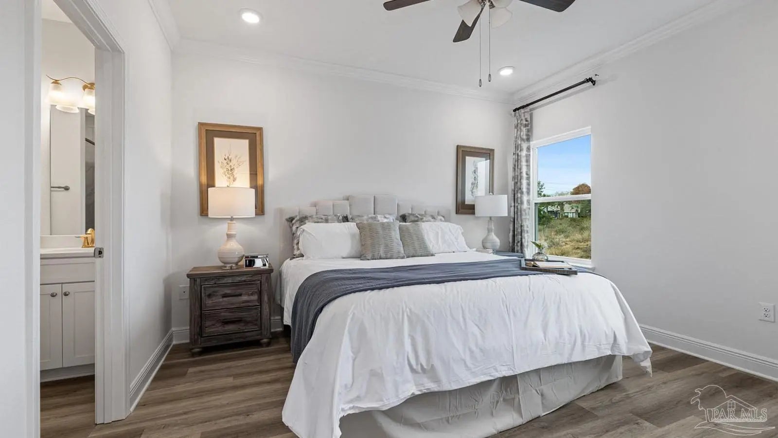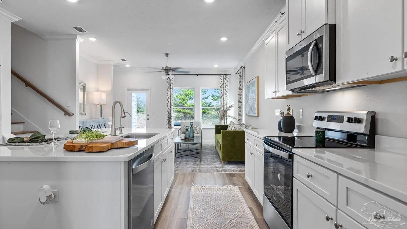 Explore the Alabaster Plan at Martin Preserve in Pensacola! The Alabaster plan is a stunning 2 story home featuring 4 bedrooms, 3.5 bathrooms and EVP flooring throughout the common areas and bathrooms. As you enter the home, you are greeted by an open living area and a beautiful kitchen complete with quartz countertops, Shaker-style cabinetry, and a large island with a stainless-steel sink. The spacious primary suite is located on the first floor with en-suite bath, and a large walk-in closet. The first floor also features a half-bath and a covered patio to make entertaining a breeze. On the second floor you will find an additional family room, 2 full bathrooms, and 3 guest bedrooms. This home also features the Smart Home Connected package. Conveniently located near Blue Angel Parkway and Highway 98, you're just a short drive from the Pensacola Naval Air Station, shopping, dining, schools, and beautiful beaches.