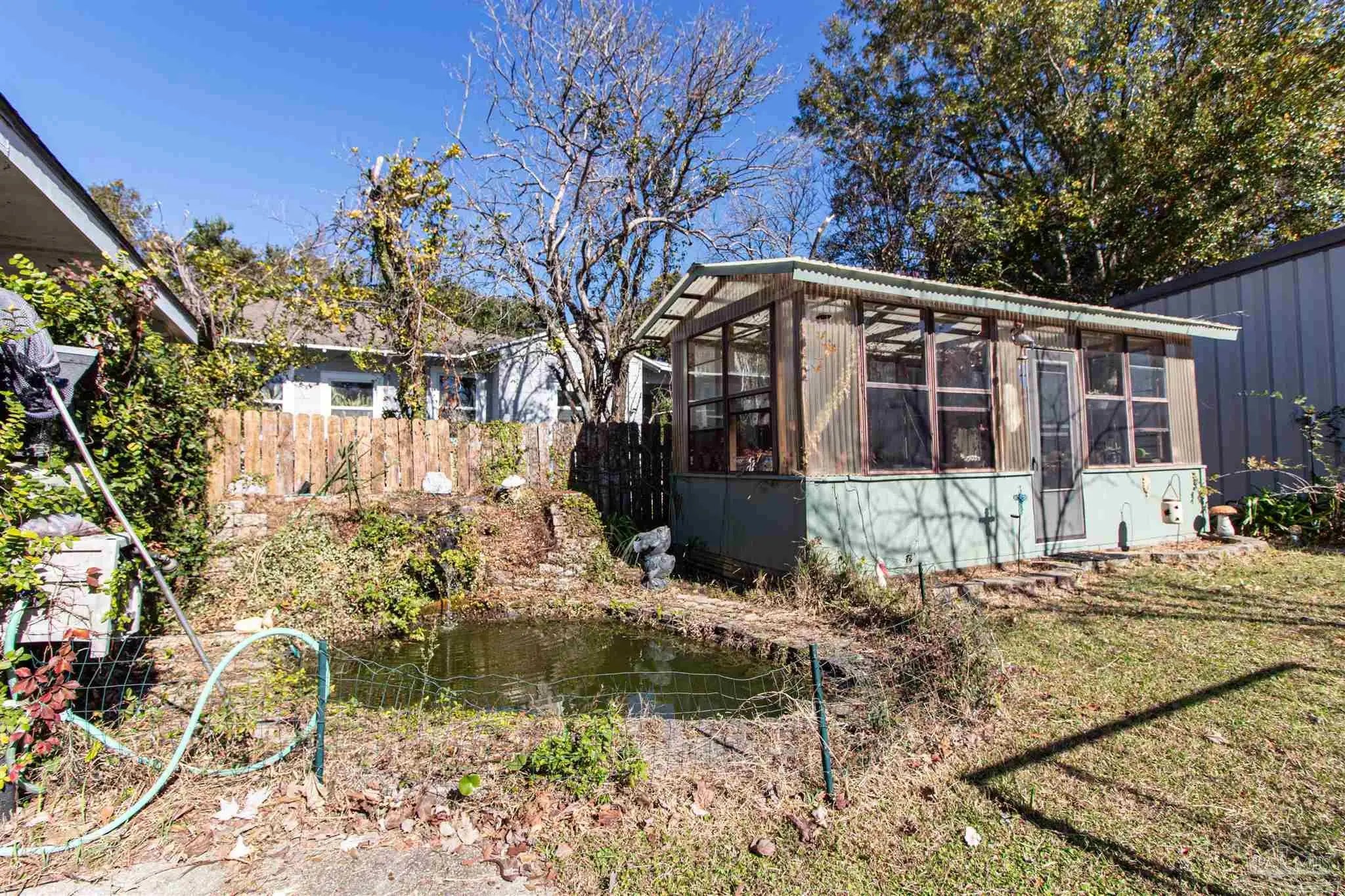 Charming Property with Two Homes and Endless Possibilities. Welcome to this unique property offering two homes on a spacious lot with versatile features and abundant potential. The main home, built in 1975, boasts 2 bedrooms and 2 bathrooms, including an updated primary suite with a full bath and direct access to the carport. Enjoy family gatherings in the cozy den/living room that opens to a formal dining area. The expansive kitchen with a breakfast nook and large laundry room adds convenience and charm. Step outside to discover a fenced yard, greenhouse, and a serene water feature pond. A two-story workshop, previously used for vehicle projects, is equipped with power and water. Upstairs, you'll find an office and a full bathroom with a shower perfect for a creative workspace or guest area. The guest house features 2 bedrooms and 1 bathroom, its own driveway, and a private fenced yard, ideal for rental income, extended family, or visitors. Located close to Joe Patti’s, the Pensacola Yacht Club, and Legendary Marina, this property offers easy access to downtown Pensacola, shopping, and dining. This rare property offers an excellent opportunity for multi-generational living, rental income, or the creation of your dream compound. Schedule your showing today.
