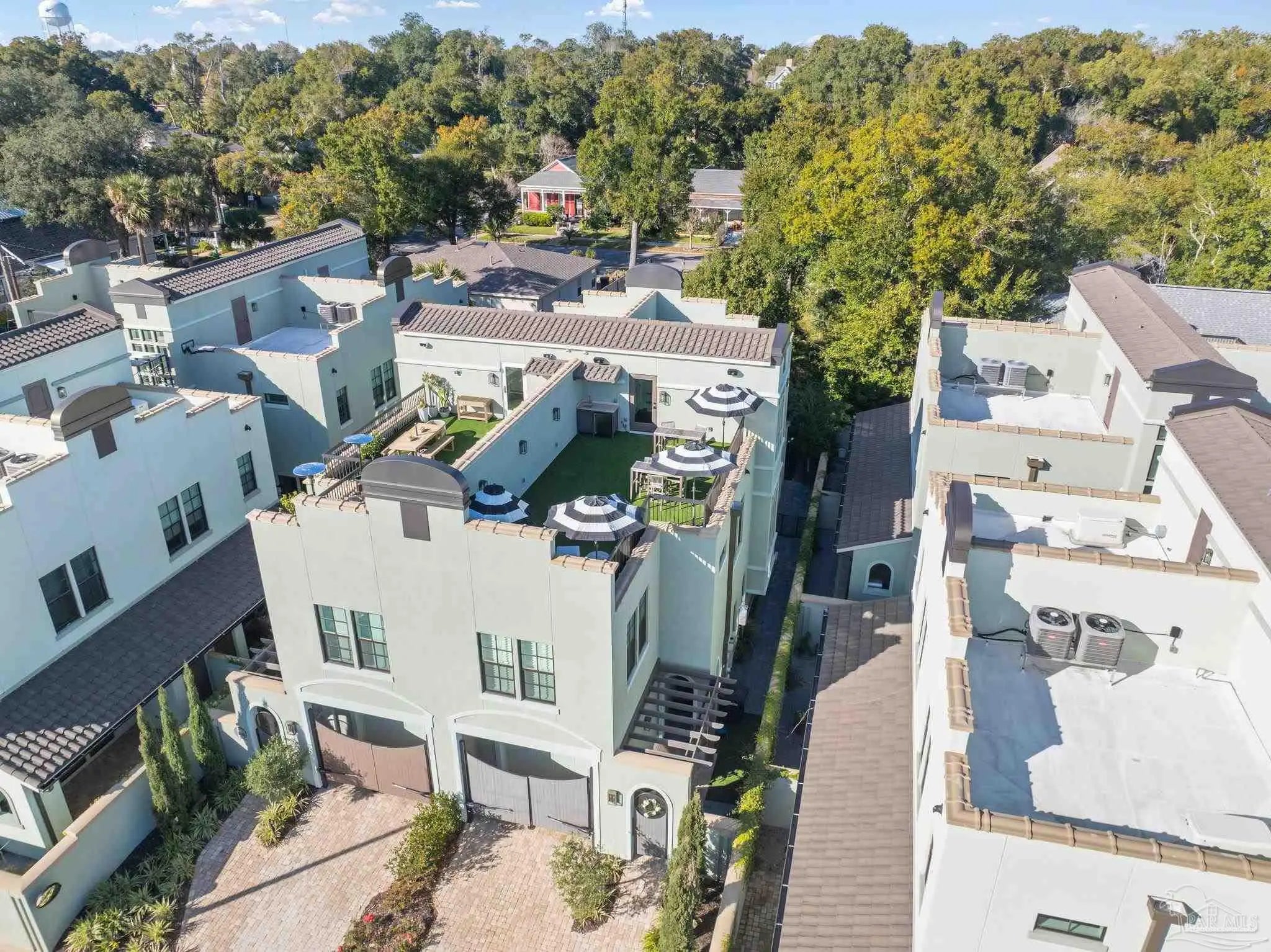 Seller has already bought the rate down for you, to 5.625%-See flyer for details! MOVE IN TODAY AND FORGET STORM WORRIES FOREVER. Welcome to the sophisticated new Villages at Wright Street featuring Insulated Concrete Form 6-inch-thick walls that far exceed wood-wall houses. ICF construction features superior insulation factors (sound and temperature) and is rated to withstand 250mph winds. This stunning modern Smart Home shines with timeless Spanish-Colonial styling. Inside, the stately front living area, with an airy open staircase, all-floor elevator and oversize half-bath, draws you to the main living area: a large dining area opposite the spacious chef’s kitchen with a suite of KitchenAid appliances and walk-in pantry. Waterfall Cambria Natural Quartz countertops flow around scores of deep cabinets. The coffered ceilings add yet another element of elegance. The warm living area features a Breckinridge gas fireplace and custom bookcases. Stepping out back, the work-free yard boasts a BLAZE gas grill, a privacy canopy of holly trees, plus timed irrigation lines. The 2nd floor features 3 bedrooms and 2 full baths plus a large flex area for a TV streaming area, office and more. The large master features a beautiful ensuite full bathroom and 2 walk-in closets. The bayview Rooftop Terrace is the ultimate entertainment area: Wet Bar, refrigerator with ice, soft synthetic turf, plus wired for TVs & a Hot Tub. Irrigation lines feed worry-free plants. The Rooftop’s 2nd partitioned area hosts HVAC units & whole-house generator with room for garden & fitness areas. Garage is EV charger ready. Tying it all together: a whole-house Sonos hi-fi sound system, high-end UniFi security cameras & monitored alarm. Whether this incredible home is your full-time residence or a getaway, you’ll enjoy peace of mind thanks to the solid ICF build and a vibrant Downtown Pensacola lifestyle. See document section for Villages at Wright Street info, 752 E. Wright St. Upgrades & more!