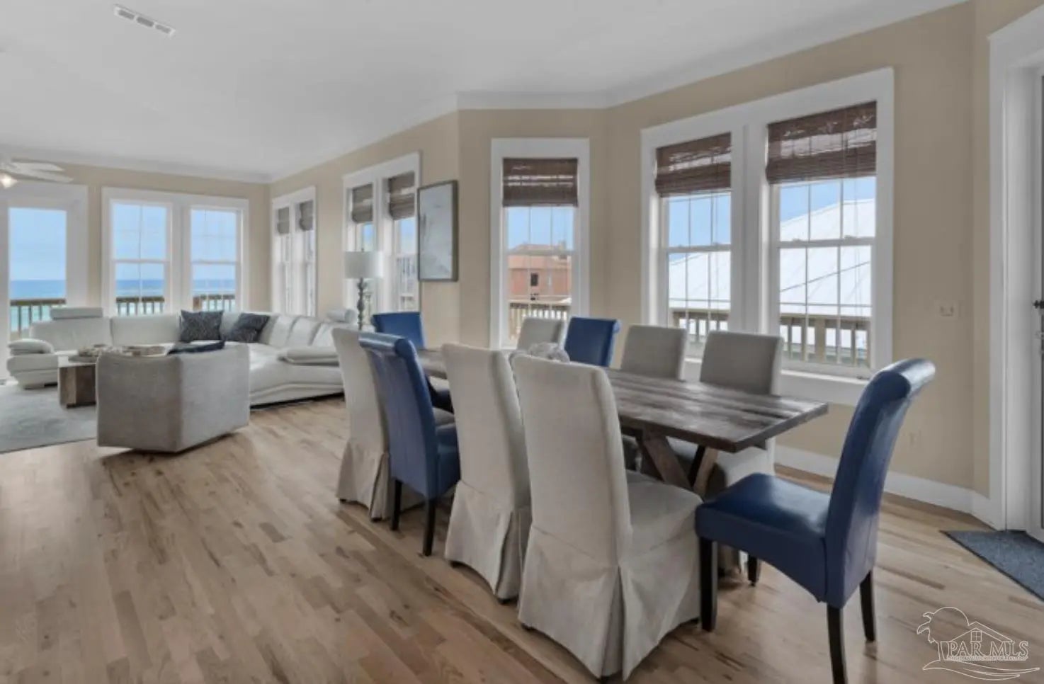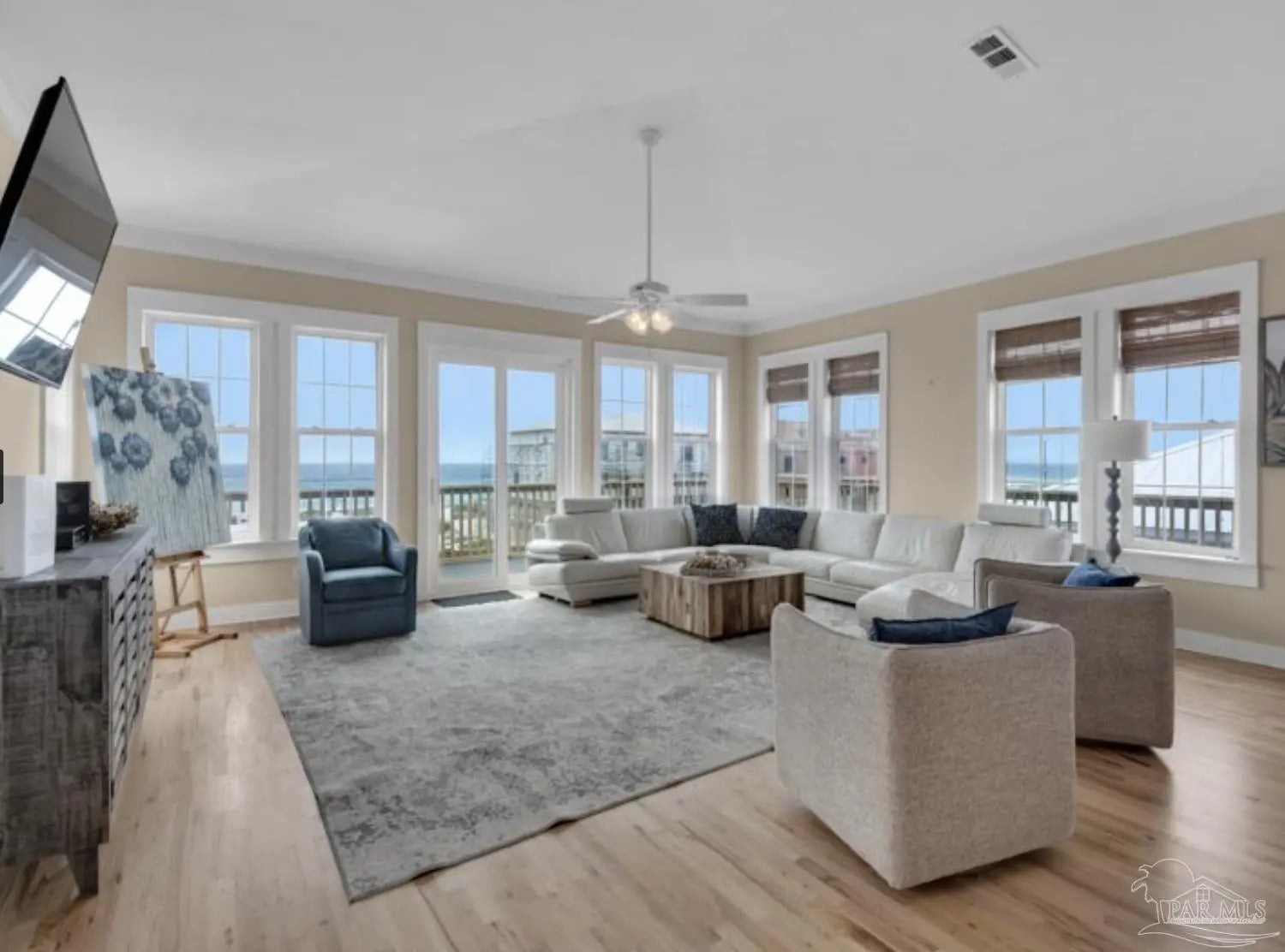 Cloud Nine is a true coastal gem! Positioned perfectly on Navarre Beach, it offers a seamless blend of luxury, comfort, and breathtaking natural beauty. Here’s a quick recap of its standout features: Fully Renovated in 2023: The modern upgrades ensure a fresh, inviting atmosphere. Spectacular Location: Nestled on the west end of Navarre Beach, near the National Seashore, with panoramic views of the Gulf and Santa Rosa Sound. Two Wrap-Around Decks: Expansive outdoor spaces to soak in the "heavenly" views. Spacious Layout: 4 bedrooms, 4 bathrooms—designed to comfortably accommodate large groups. Main sleeping quarters on the second floor include 3 bedrooms, 3 bathrooms, and a laundry room. The top floor "Crown Jewel" features an open-concept kitchen, dining, and living area, perfectly situated for stunning vistas. Thoughtful Amenities: Elevator for convenience. Large two-car garage with additional storage space for beach gear. Outdoor shower for easy cleanup after a day at the beach. Beach and Pool Access: The Gulf’s pristine sands are just steps away. A nearby community pool with a grill and space for relaxing or dining al fresco. Ideal for Entertaining: Kitchen with a center island (seats 3) and a dining table that accommodates 10. Open traffic flow from the indoor living areas to the expansive decks make it perfect for gatherings. Whether for a family getaway or an investment in a dream vacation property, Cloud Nine truly embodies its name. The property is currently part of a rental program, it is mandatory that the buyer honor all scheduled guest reservations for up to nine months after closing. This arrangement ensures a seamless transition for guests and maintains the property's established rental reputation.