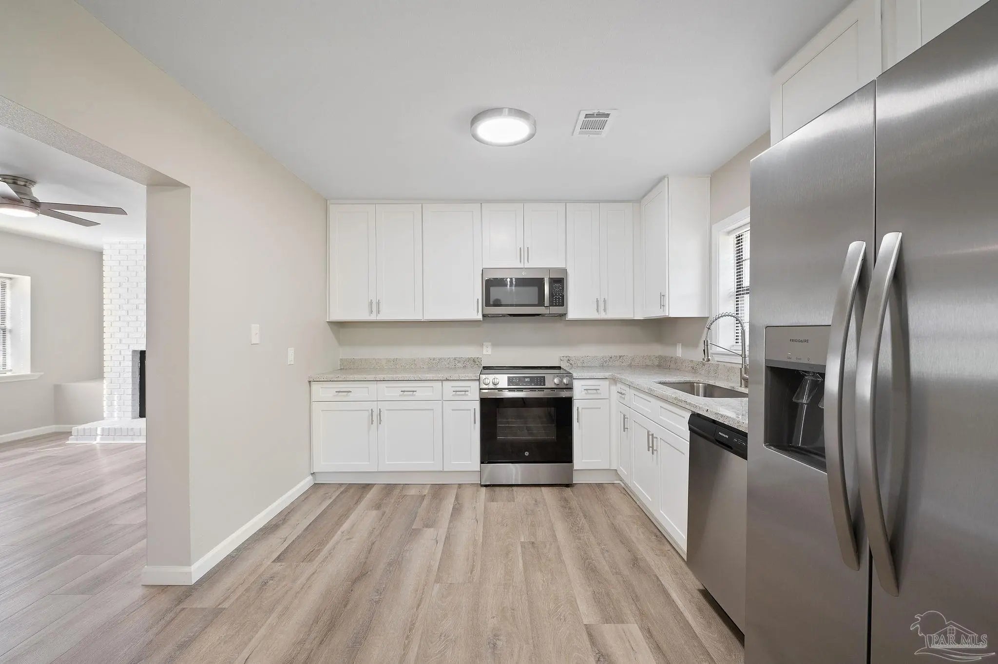 FULLY RENOVATED HOME in a highly desirable location! This home a boater’s dream, as the LAST residential property neighboring the Smiths Fish Camp boat launch. Only half a mile to the east entrance to the University of West Florida campus, Starbucks, Target, and all of the shopping & amenities of east 9 Mile Rd! * The home has been completely updated; the recent renovations include all new trim, paint, flooring and fixtures throughout. The kitchen has been totally re-configured with beautiful granite countertops, all-wood soft-close cabinets, and stainless steel appliances. New HVAC and water heater, full exterior paint, and more! * Situated on almost a FULL acre lot, the property has tons of room to spread out, space for storage, pets, etc! * The home is set back privately from the intersection at Hwy 90, but affords easy access to one of Pensacola’s most stunning drives along Scenic Highway, overlooking gorgeous Escambia Bay. This home boasts many amenities that make it a truly rare find *** Please verify all features, dimensions, etc that may be important to you.