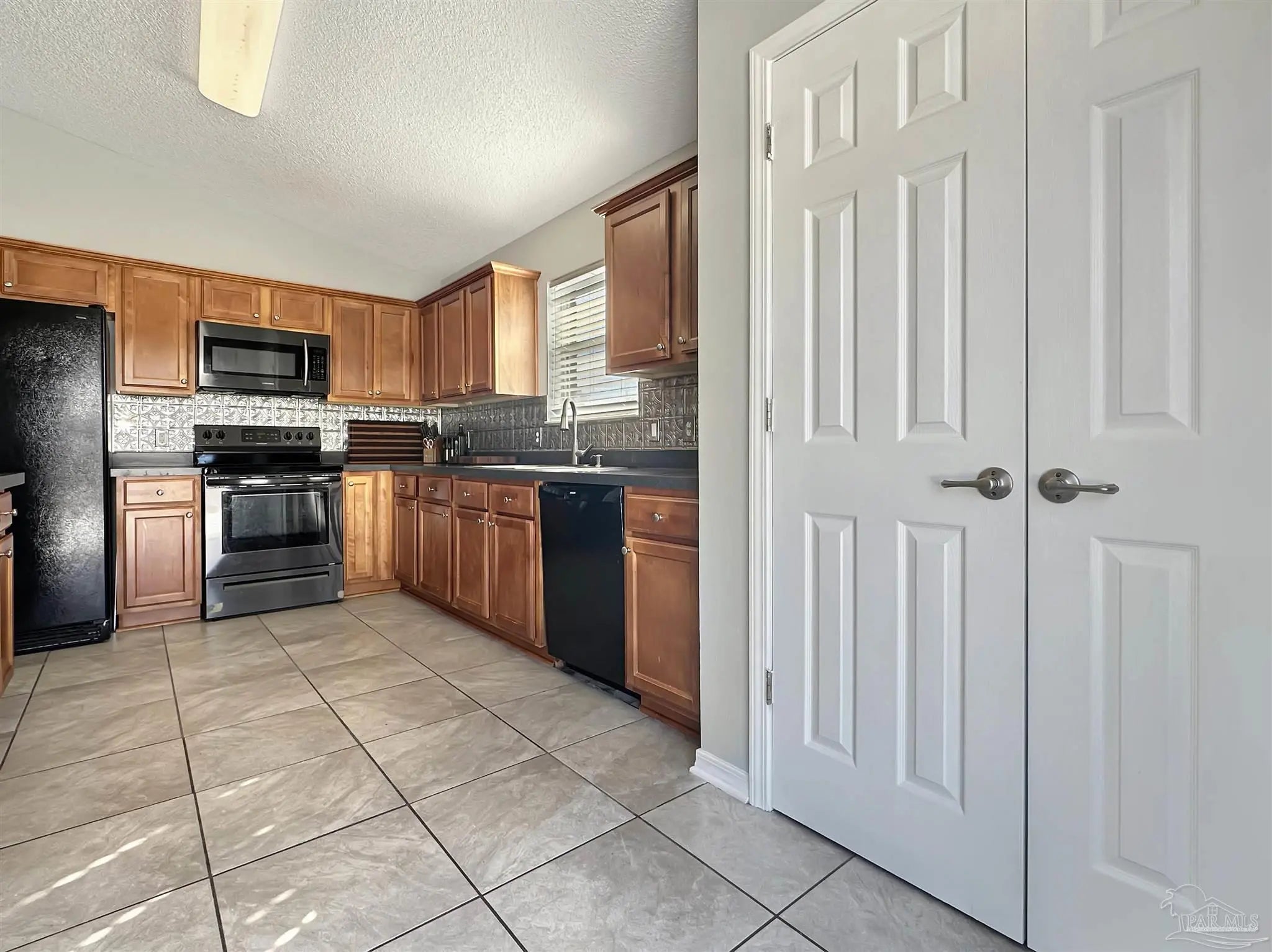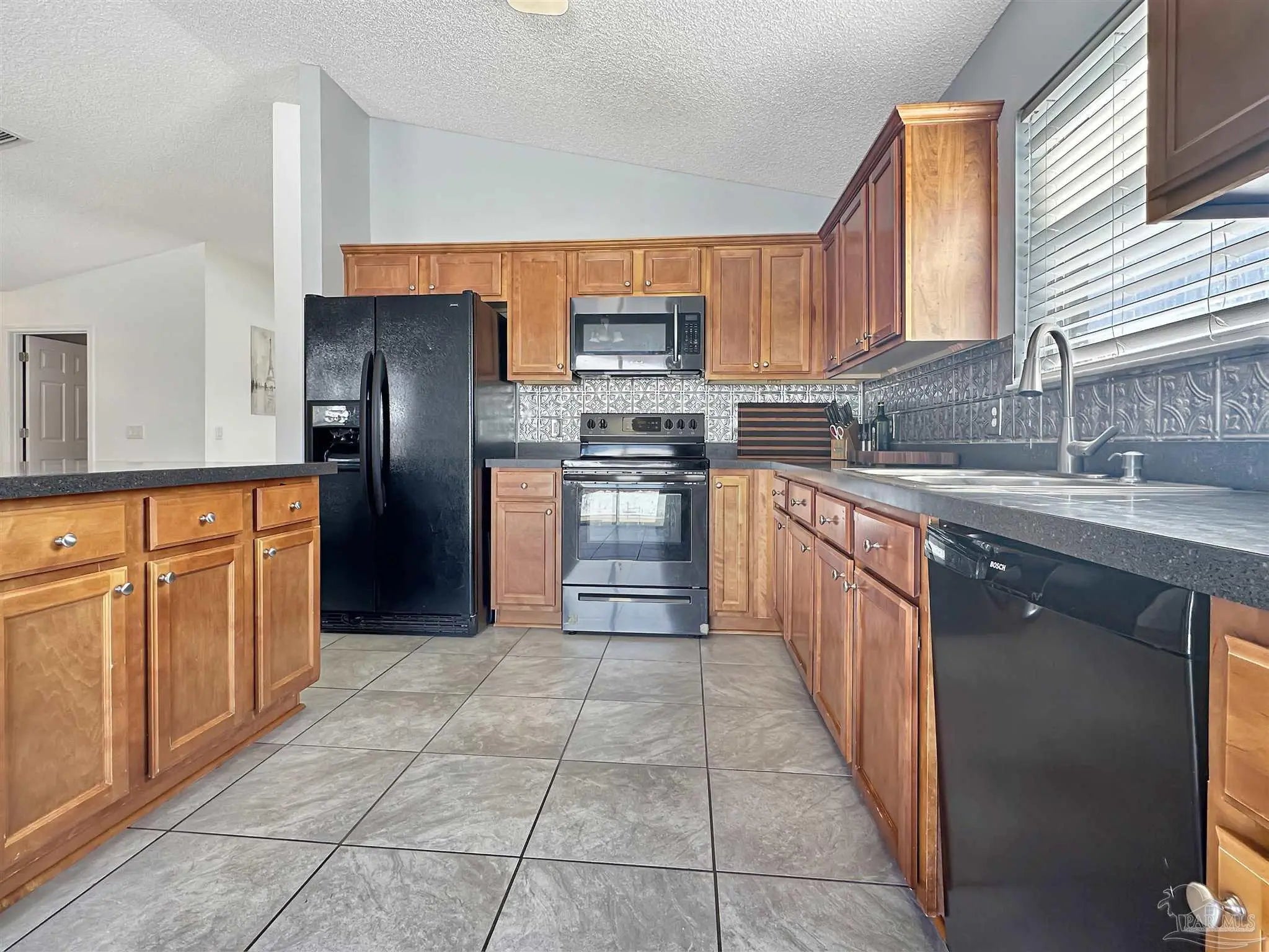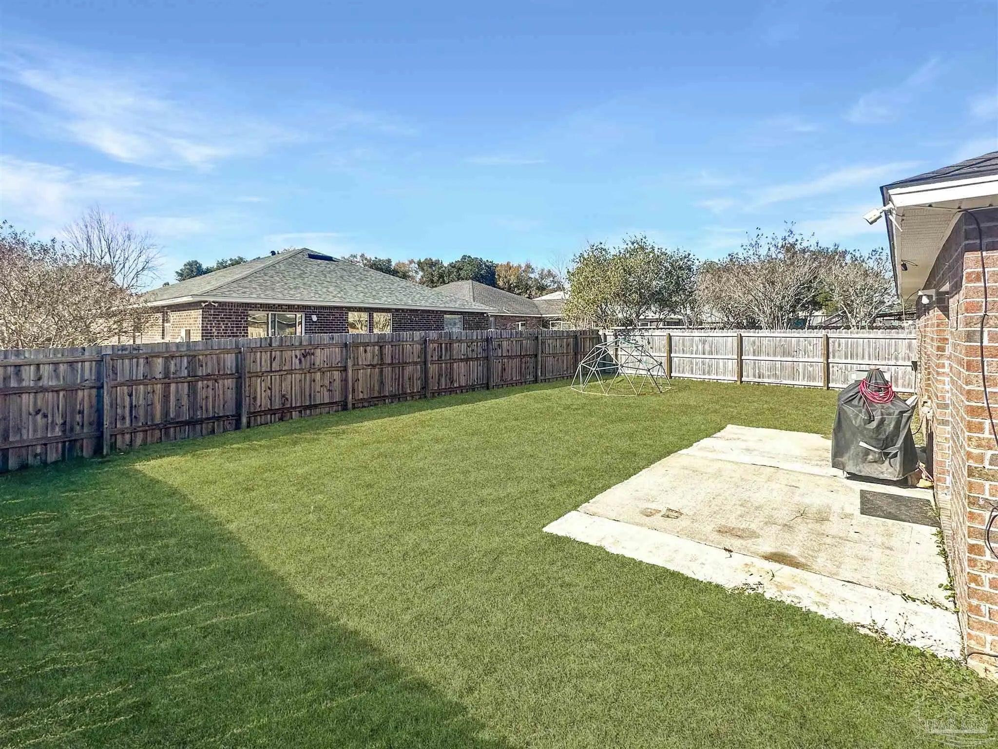 Discover the perfect blend of comfort and convenience in this beautiful 3-bedroom, 2-bathroom home with 1,690 square feet of living space and a 2-car garage. Situated on a corner lot in the highly sought-after Tiburon West subdivision, this gem offers a prime location in the heart of Pace—just minutes from schools, shopping, and more. The home features stunning 16-inch tile and wood laminate flooring throughout, making it both stylish and easy to maintain. The kitchen is a true centerpiece, boasting a large island perfect for family gatherings, along with a premium Bosch dishwasher for effortless clean-up. The split floor plan ensures privacy, with the master suite tucked away from the other bedrooms. A versatile office or formal dining space ties the home together, offering flexibility to suit your lifestyle. Outside, the fenced-in backyard provides the perfect setting for outdoor entertaining or a peaceful retreat. Don’t miss your chance to make this house your home—schedule a showing today before it’s gone!