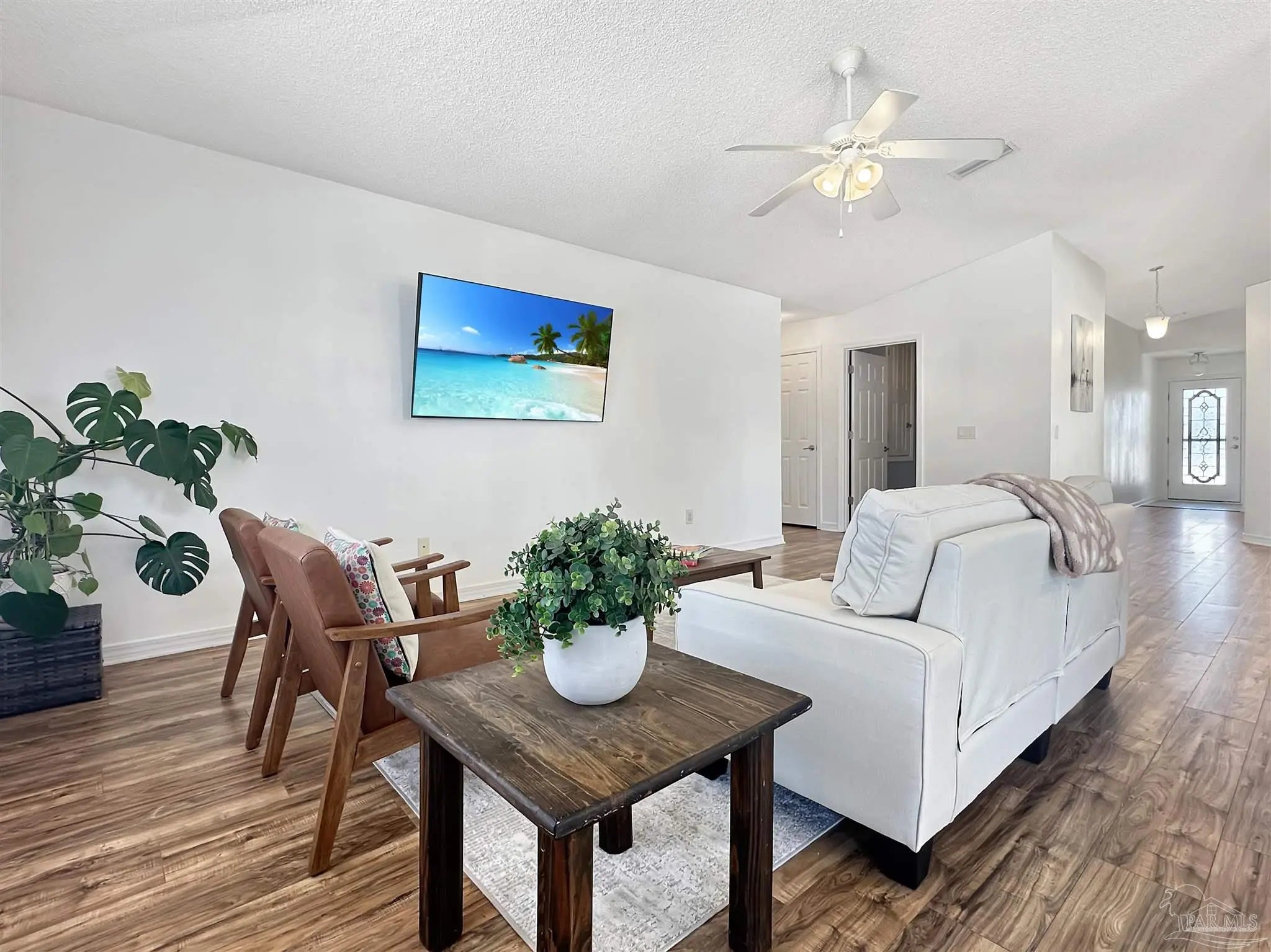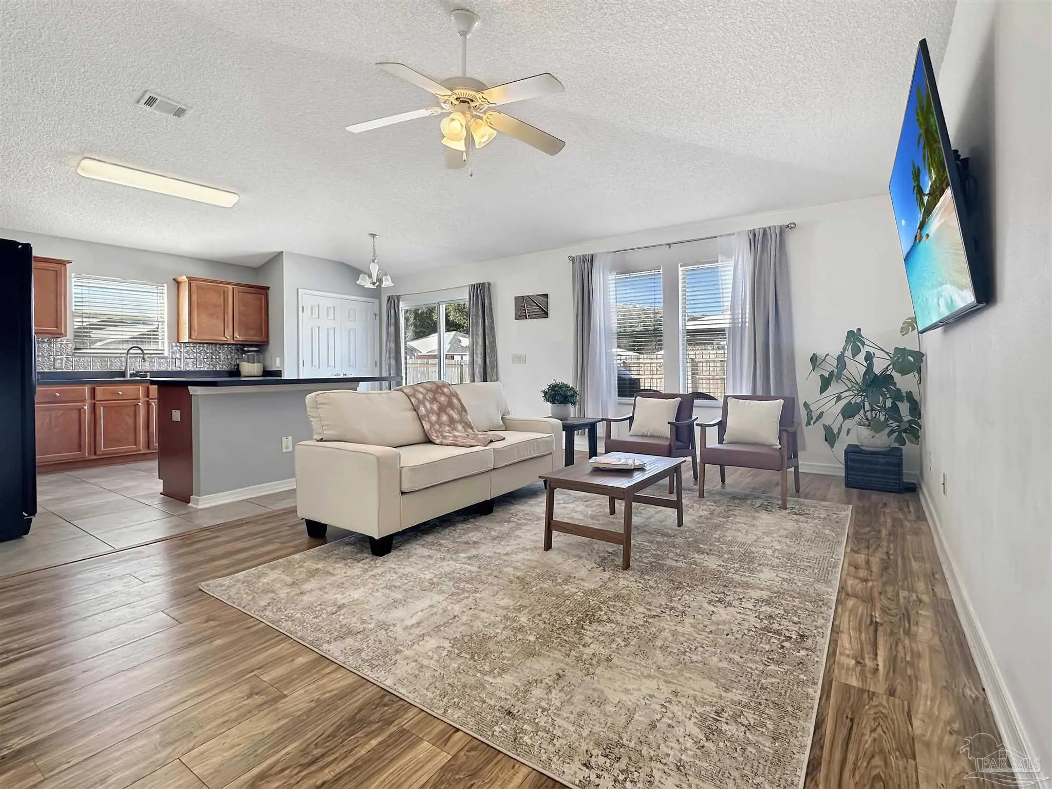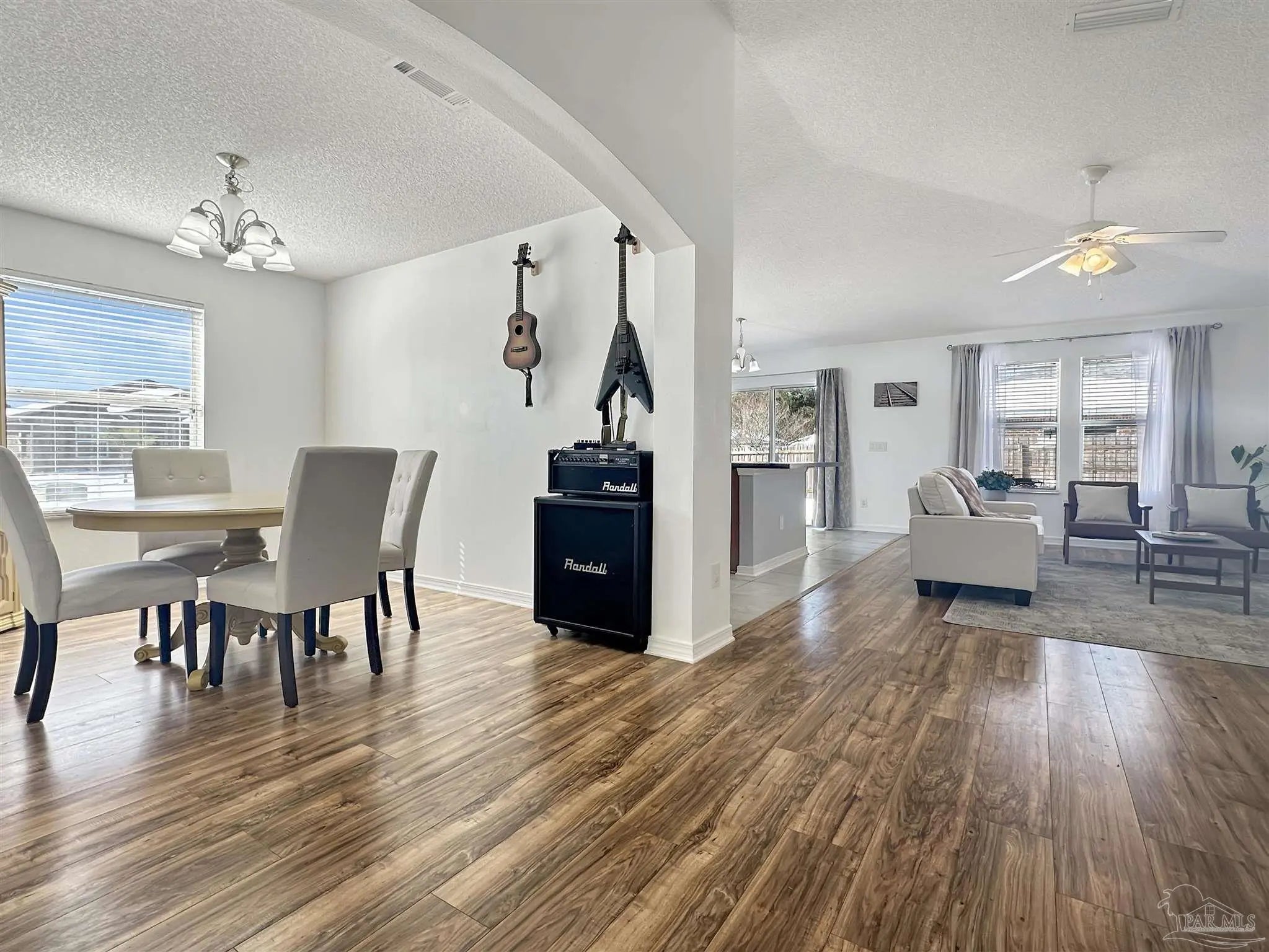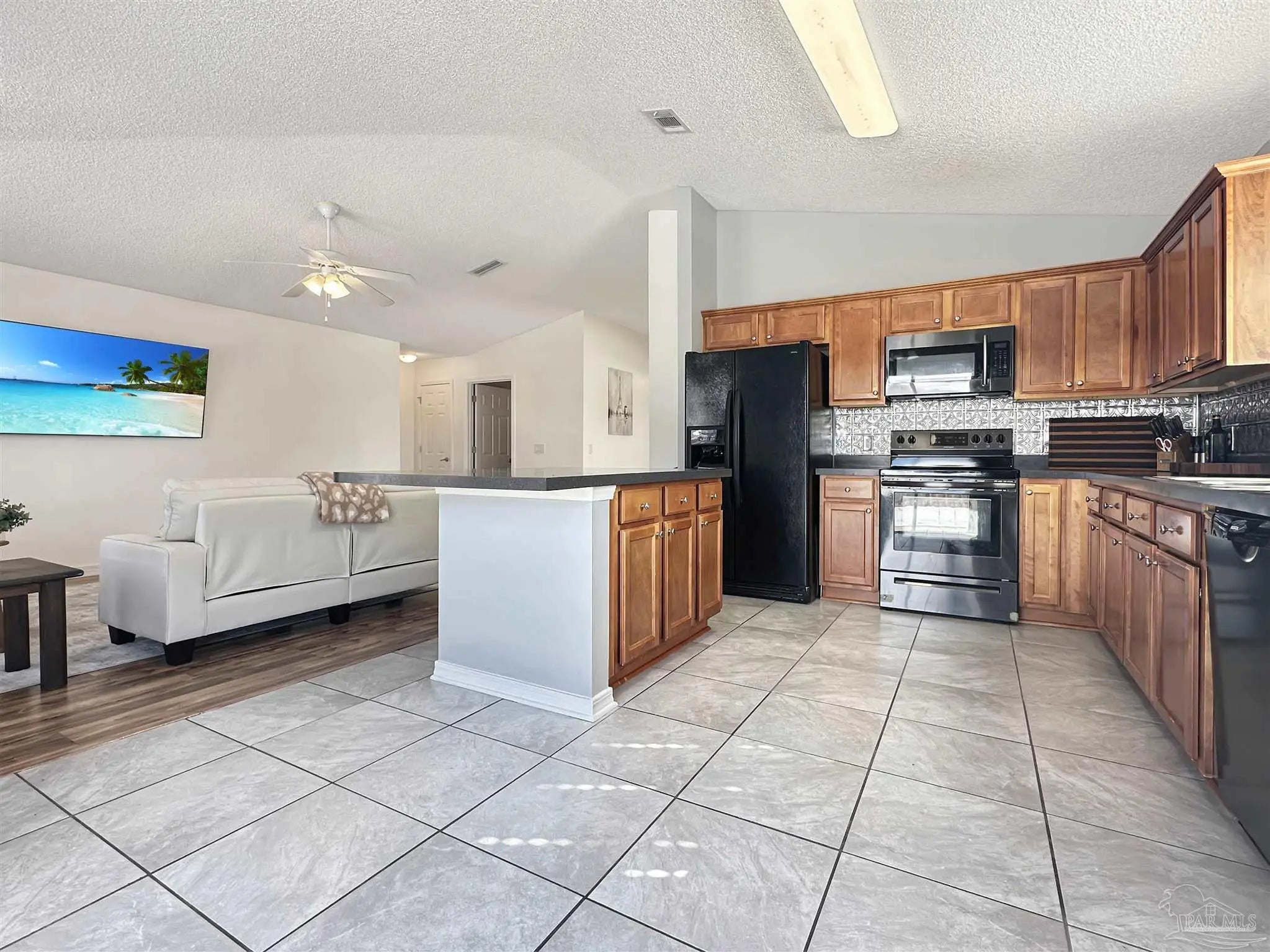 Discover the perfect blend of comfort and convenience in this beautiful 3-bedroom, 2-bathroom home with 1,690 square feet of living space and a 2-car garage. Situated on a corner lot in the highly sought-after Tiburon West subdivision, this gem offers a prime location in the heart of Pace—just minutes from schools, shopping, and more. The home features stunning 16-inch tile and wood laminate flooring throughout, making it both stylish and easy to maintain. The kitchen is a true centerpiece, boasting a large island perfect for family gatherings, along with a premium Bosch dishwasher for effortless clean-up. The split floor plan ensures privacy, with the master suite tucked away from the other bedrooms. A versatile office or formal dining space ties the home together, offering flexibility to suit your lifestyle. Outside, the fenced-in backyard provides the perfect setting for outdoor entertaining or a peaceful retreat. Don’t miss your chance to make this house your home—schedule a showing today before it’s gone!