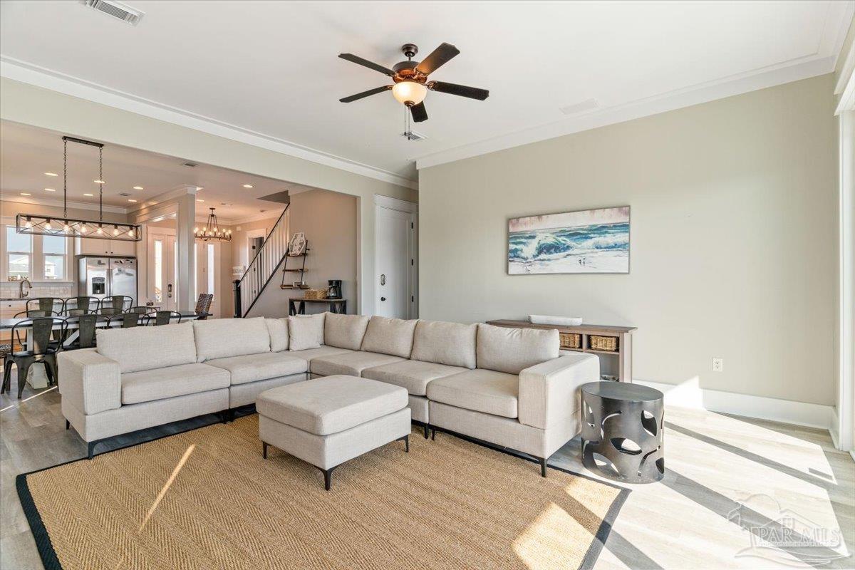 - Baseboards, Ceiling Fan(s), Crown Molding, Recessed Lighting