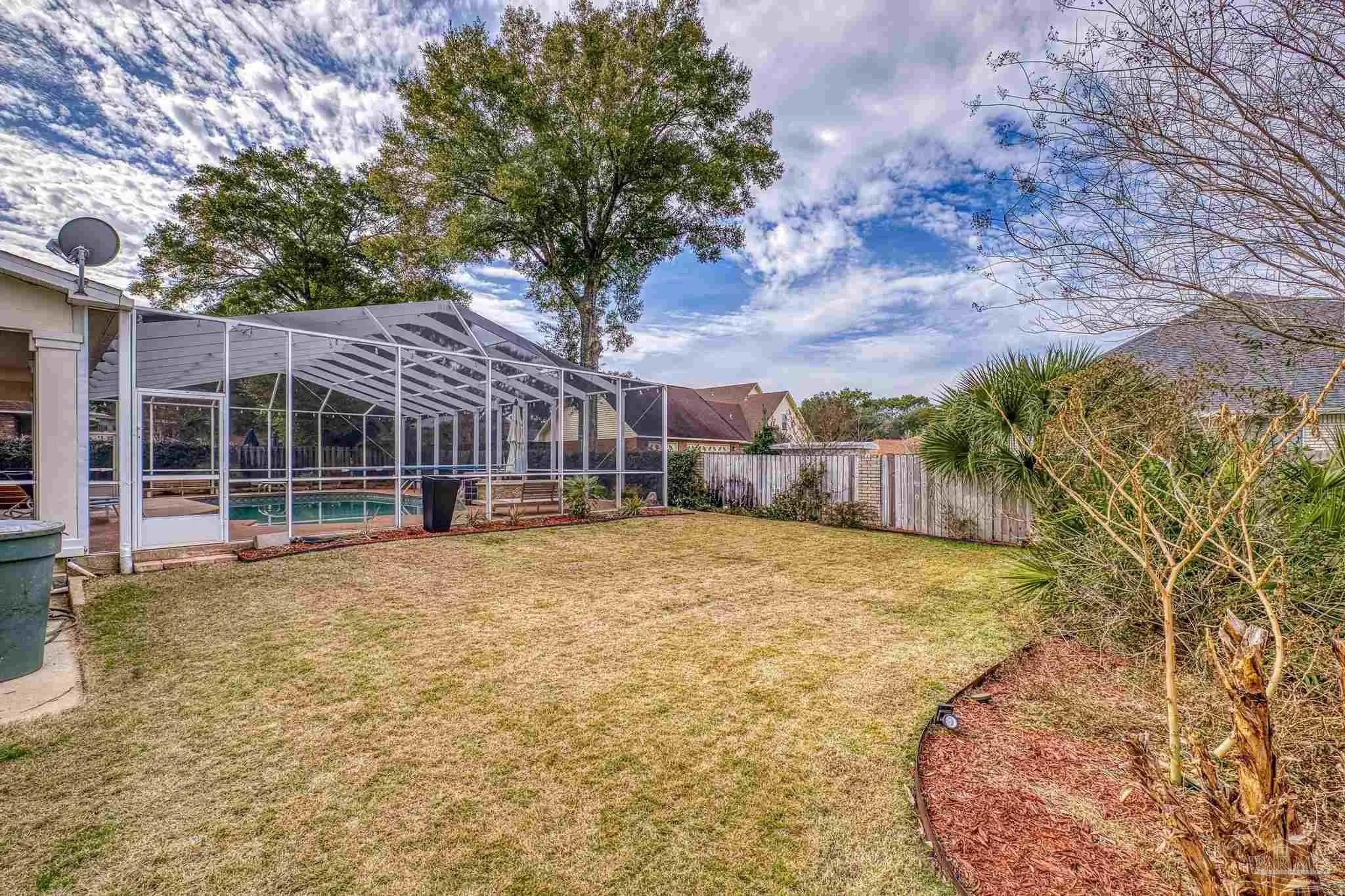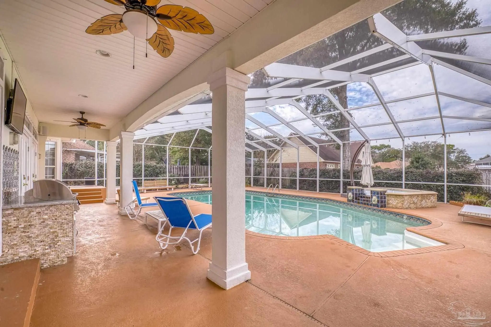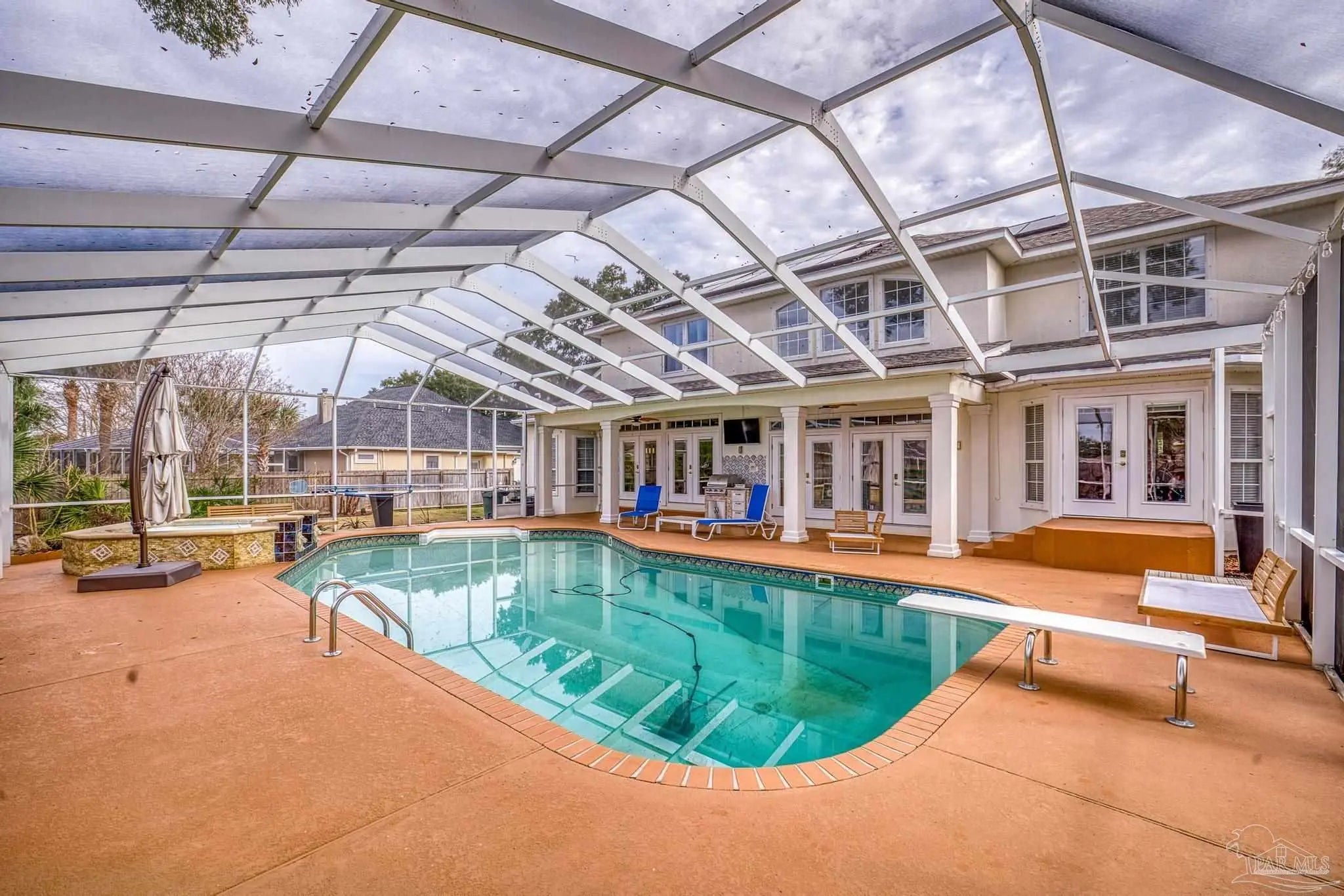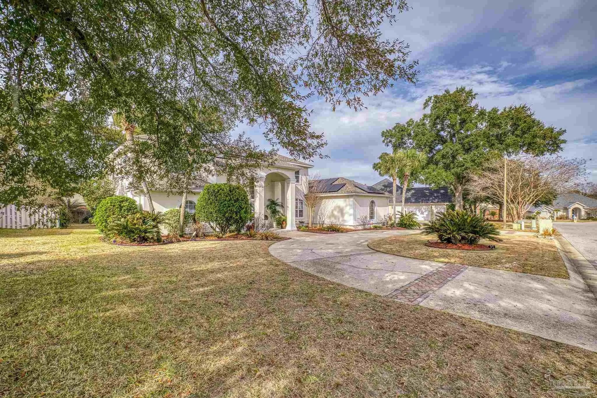 Located in the highly sought-after Marcus Pointe neighborhood, this exceptional 5-bedroom, 3.5-bath home offers luxury, comfort, and convenience just minutes from I-10. The spacious two-story layout features elegant finishes, abundant natural light, and a chef’s kitchen with high-end appliances and a large granite island. The downstairs primary suite includes a sitting area, fireplace, and spa-like bath. Enjoy multiple living areas, smart home technology, and a stunning backyard with a screened, heated saltwater pool and spa, plus a covered patio with a custom gas grill. Energy-efficient features, backup generator, extra-large 2-car garage, washer and dryer, 1-year warranty, and WDO bond are included. A truly one-of-a-kind home at 22 Bartlett Circle.
