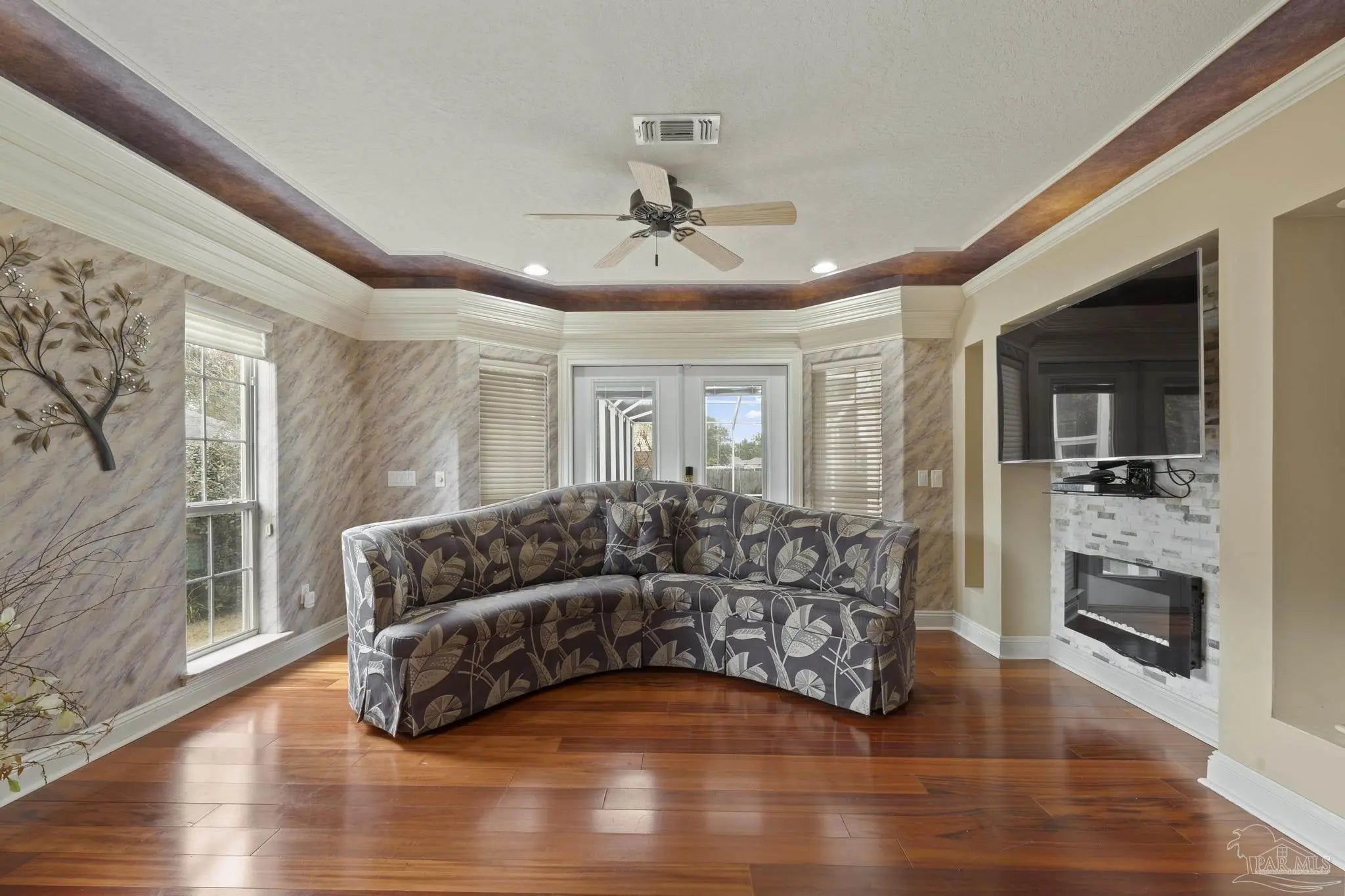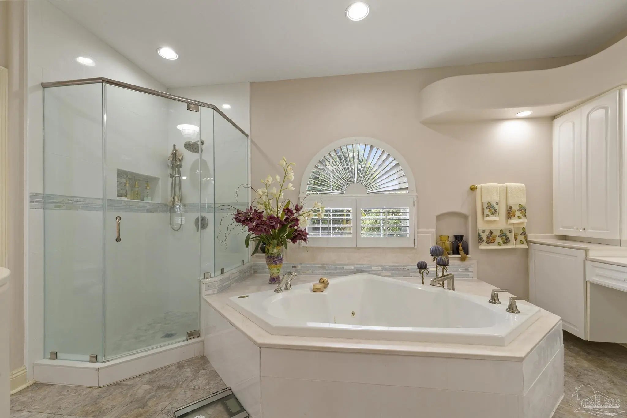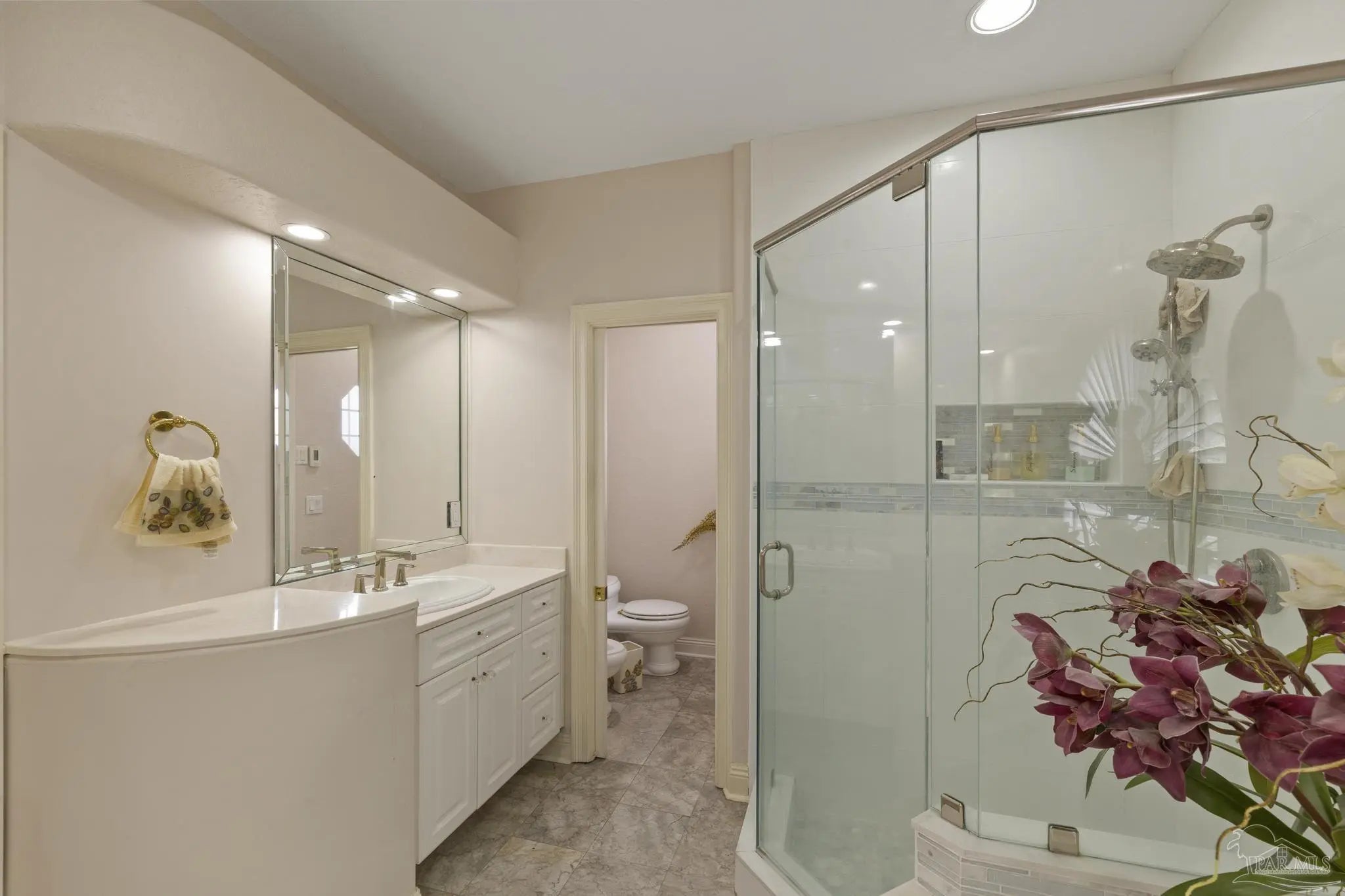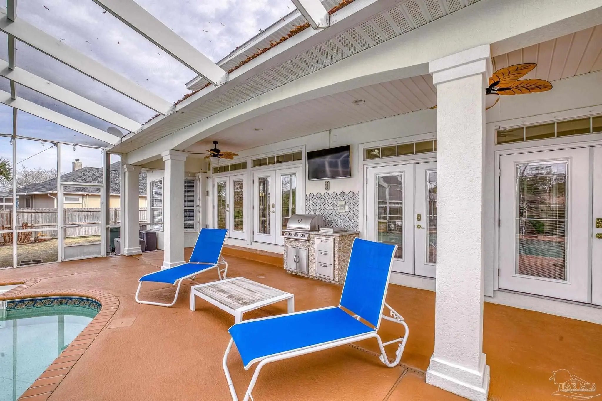 Located in the highly sought-after Marcus Pointe neighborhood, this exceptional 5-bedroom, 3.5-bath home offers luxury, comfort, and convenience just minutes from I-10. The spacious two-story layout features elegant finishes, abundant natural light, and a chef’s kitchen with high-end appliances and a large granite island. The downstairs primary suite includes a sitting area, fireplace, and spa-like bath. Enjoy multiple living areas, smart home technology, and a stunning backyard with a screened, heated saltwater pool and spa, plus a covered patio with a custom gas grill. Energy-efficient features, backup generator, extra-large 2-car garage, washer and dryer, 1-year warranty, and WDO bond are included. A truly one-of-a-kind home at 22 Bartlett Circle.