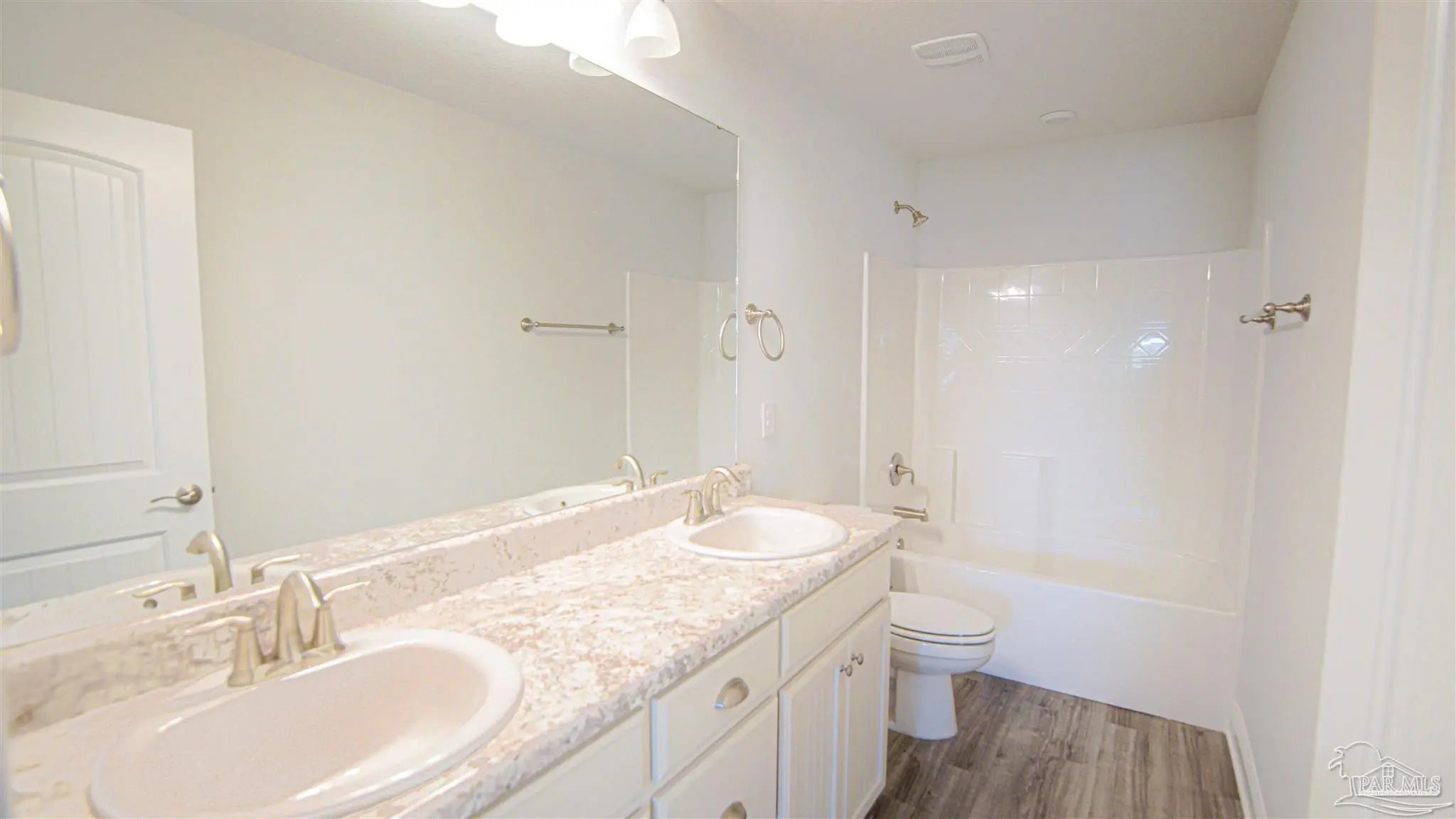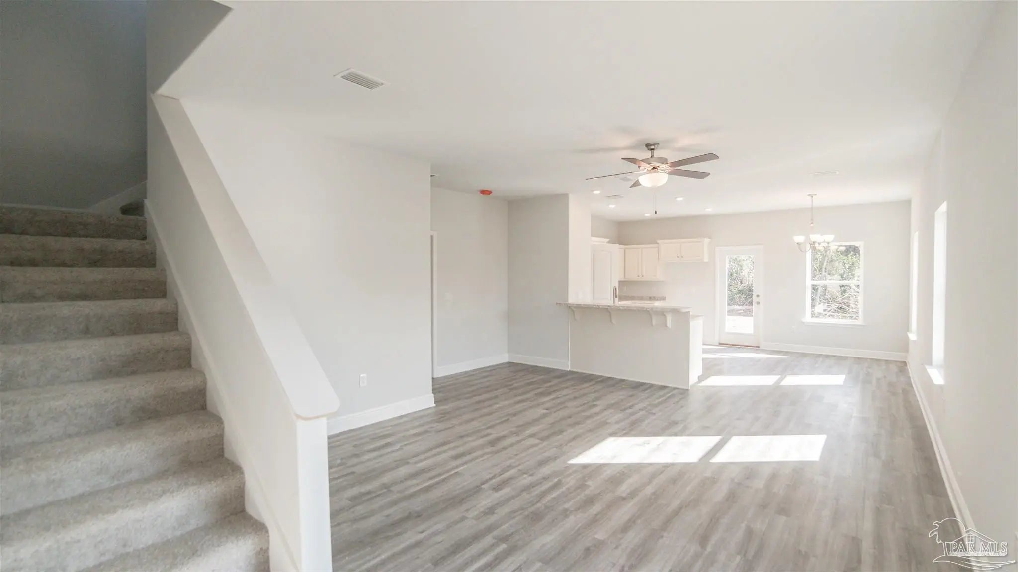 This 2025 sqft 2 story features granite in the kitchen and Cortec vinyl plank in all the wet areas as well as the common areas downstairs. This open plan concept showcases the Master suite downstairs with a separate garden tub and shower and then the secondary beds are upstairs so there is plenty of privacy. The loft upstairs is huge and can be utilized as play space, study area, or a fantastic gathering area for your kids and their friends when they come by. In This neighborhood, you will find Patio homes with architectural shingles, hurricane storm panels, double pane low E windows, we clear the lots and then sod to 120" from front property line. Some other features included are: quality bump and stagger upper cabinets with hidden hinges and crown molding, stainless Frigidaire appliances (stove, microwave, dishwasher), Moen faucets, knockdown ceilings and orange peel textured walls, 5 14" baseboards, Rocker light switches, brushed nickel hardware and lighting package, LED lighting in kitchen and over tubs & showers, 50 gallon water heater, and much, much more! She will be ready for you and your family very soon** PICTURES ARE NOT A TRUE REPRESENTATION OF ACTUAL HOME** Projected completion is October.