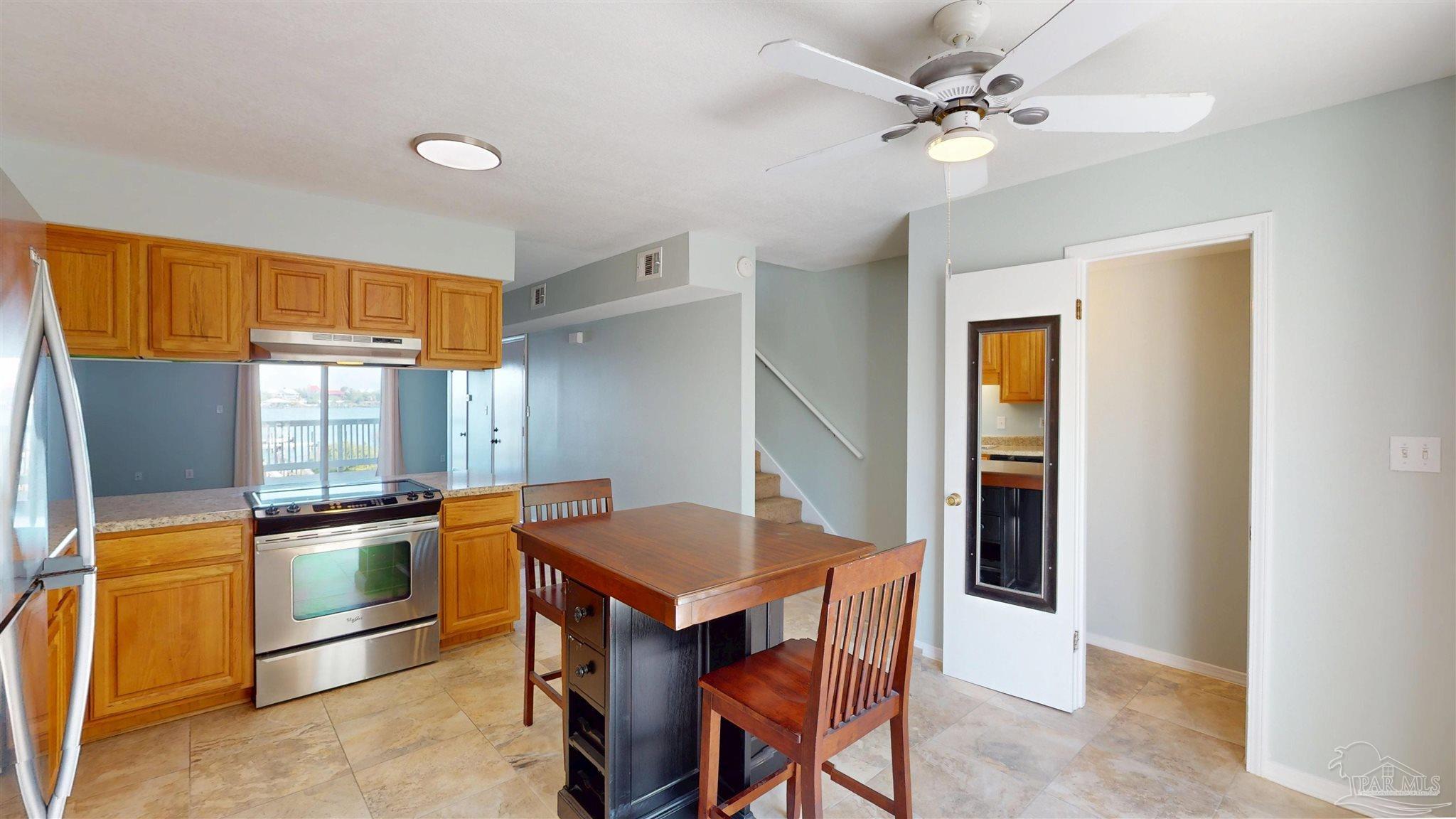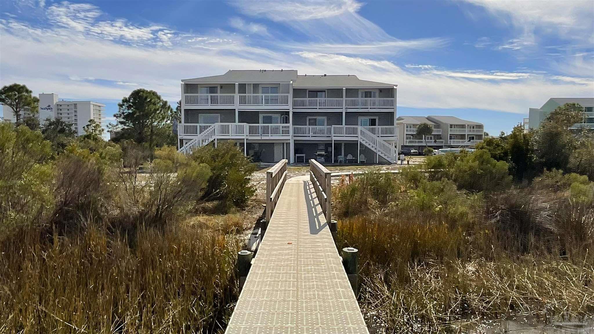 BRAND NEW HVAC SYSTEM with a 10 year transferrable warranty!! Waterfront Townhome with Stunning Old River Views & Boat Access in Perdido Key! Discover a rare opportunity to own a waterfront townhome overlooking Old River in beautiful Perdido Key, Florida. This 2-bedroom, 2.5-bath residence is ready for you to make it your own, offering breathtaking water views, ample outdoor space, and a desirable open-concept layout. The main living area boasts a spacious kitchen and seamless flow into the living and dining spaces, perfect for entertaining. Step onto the large waterfront patio, where you can dine alfresco, watch boats glide by, and catch unforgettable sunsets with dolphins playing in the distance. A second patio off the kitchen offers peekaboo views of the Gulf, adding to the home's coastal charm. Upstairs, the primary suite features its own private balcony, allowing you to wake up to tranquil water views. Both bedrooms are generously sized. Additional highlights include a garage with ample storage, perfect for beach gear and boating essentials. Boating enthusiasts will appreciate the first-come, first-served boat slips, making it easy to enjoy a day on the water. Located in a rent-restricted community allowing rentals of six months or longer, this townhome is ideal for full-time residents or seasonal owners. New roof was installed in 2019. Don't miss out on this spectacular chance to own a piece of paradise on Perdido Key! Schedule your private showing today.