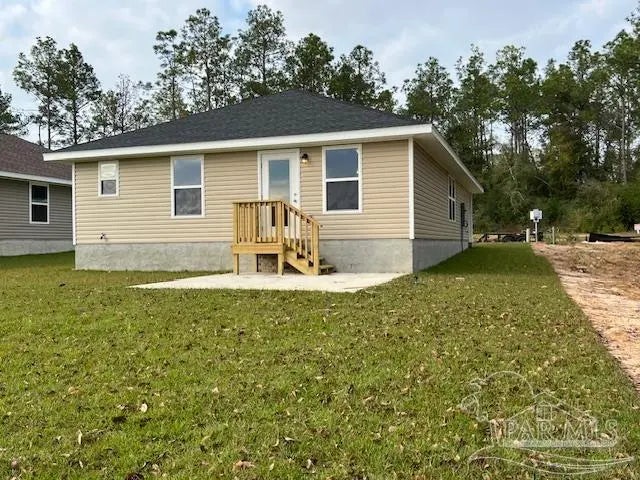 COMPLETION DATE TO BE DERTIMINED!!! New construction in the 32533 Zip Code!! Location is perfect for this 3 bedroom 2 bath 1454 sq ft home in the TURTLE CREEK Subdivision. Centrally located to all the amenities country living to offer in this brand new community. Upon approaching the home, one will fall in love with the covered front porch that is the ideal size for decorating or just sitting out enjoying the warm afternoon breezes. Once inside, you will notice that the kitchen is off to the left and front of the home. Standard features of the kitchen are stainless steel appliances to include the range, dishwasher, microwave and garage disposal. The kitchen contains solid wood style cabinets made locally with granite countertops. It also contains a counter height bar that opens to the dining room and living room area. This open flow from the kitchen to the living room makes for perfect entertaining on the weekends or just having nightly meals in the kitchen with family. This adorable cottage style home contains luxury vinyl plank flooring in the common areas with carpet only in the bedrooms. The master bedroom is located off of the living room and contains a box ceiling and ceiling fan as well as an ample size walk in closet. Within the master bedroom, you have the master bath that contains the same style cabinets and laminate counters with a double vanity and shower/ tub combo. The other two bedrooms are at the front of the home within a hall all by themselves along with a single vanity spare bath and laundry room. This home is the perfect size for the first time home buyer or the couple that is wanting to down size. Do yourself a favor and call to schedule a tour as I am sure that at this price point and location, it is sure to sell very quickly.
