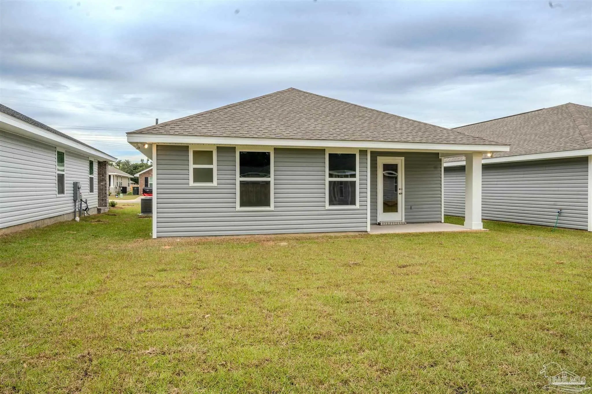COMPLETION YET TO BE DETERMINED Location, Location and Location. Brand new construction in the 32533-zip code and country living at it's best. This 1250 sq ft 3 bedroom 2 bath cottage style home is the perfect starter home for a college graduate or individual just starting out. From the street, one will be struck by the full covered front porch that stretches the entire length of the home. Entering the home, you enter into a very open plan with a living room that contains a ceiling fan and 5 1/ 4 inch baseboards that also run throughout the home. There is vinyl plank flooring in all living areas and carpet in bedrooms only. In the kitchen you will find white shaker style cabinets painted white with brushed nickel hardware and Luna Pearl granite countertops. The living room is open to the kitchen which makes for easy entertaining. Off of the kitchen is the master bedroom that contains a box ceiling and ceiling fan. The master bedroom contains a closet with ample space with ventilated shelving. The master bath is off of the master and contains a double vanity and shower/ tub combo. The two spare bedrooms are off of the living room and contain walk in closets. The bedrooms both are wired and braced for ceiling fans. The two bedrooms share a single vanity bath with a shower / tub combo. Outside the home, you will find a beautifully landscaped yard and a back covered porch that is the perfect size to come home after a long days work and watch the children play or sip on your favorite beverage while listening to some soothing music to unwind. Don't delay because at this price and location, it is sure to not last too long. PICTURES MAY NOT BE OF TRUE REPRESENTATION.