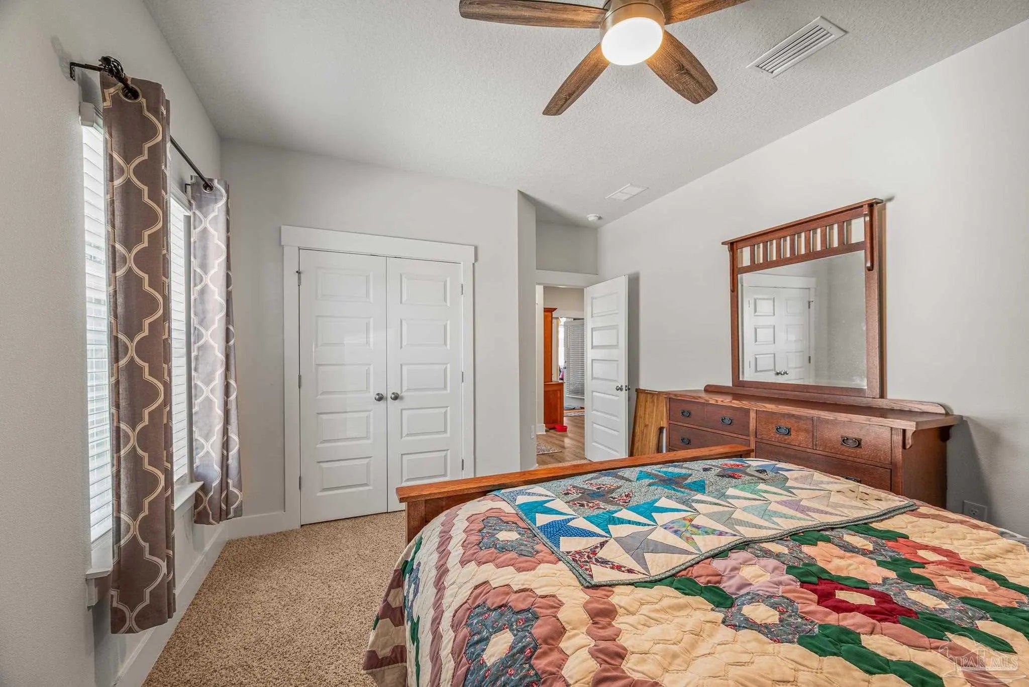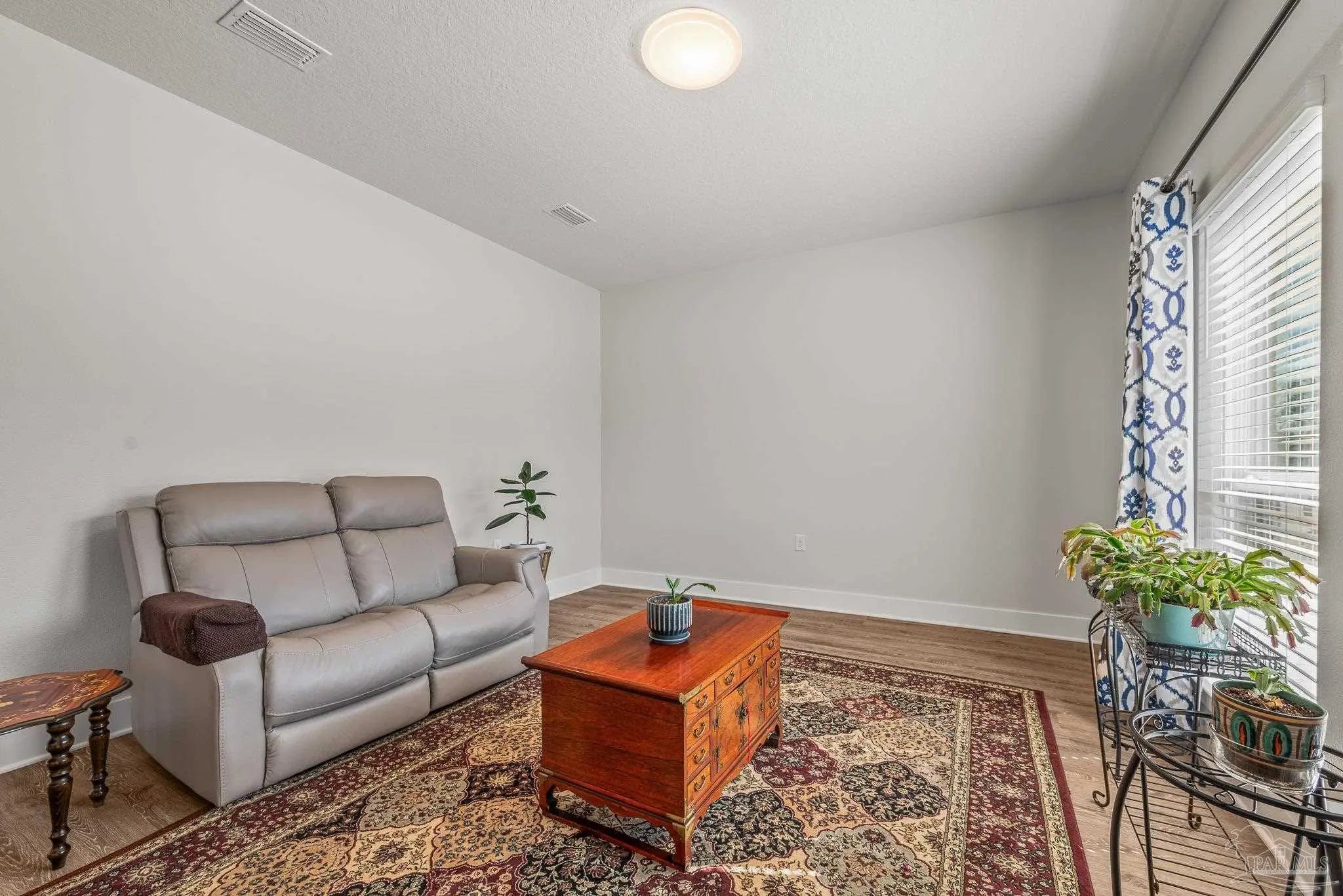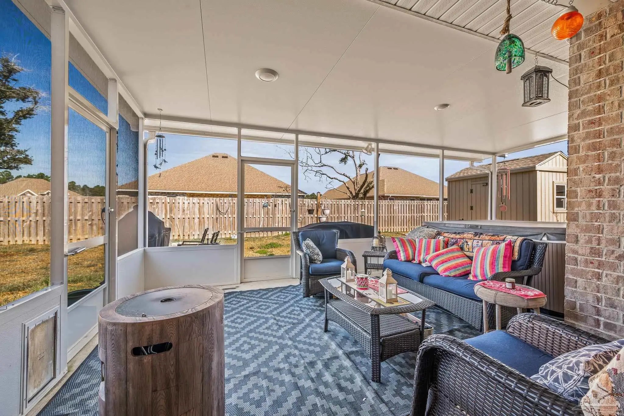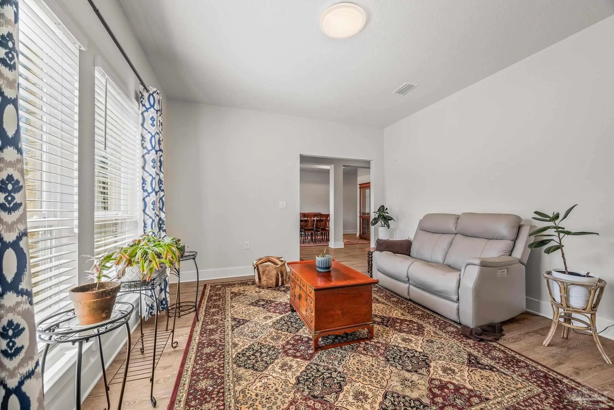 Drastically reduced, come see all your money can get you for this improved price. Popular 5-bedroom 3 bath Mckenzie floor plan featuring huge kitchen island, custom LED lighting package, 9 ft ceilings throughout, carpeted bedrooms and venetian blinds on all windows. The formal living room is away from the primary living area making it an outstanding option for a private home office. Gorgeous granite counter tops in kitchen and all bath vanities. Generous storage includes two full size linen closets. Major upgrades are already incorporated. Patio is expanded to 24x25 and screen enclosed. 12 x 26 detached garage/workshop is fully insulated with storage loft with a mini-split climate control assures year-round comfort. Electric service panel is wired and ready for installation of a whole house generator to assure power is never lost. Security system by Vivint includes indoor and outdoor cameras, video recording and a suite of indoor security monitors, you are alerted via WIFI of any system trigger. Large custom-made garden shed. Additional upgrades include fenced back yard, automatic sprinkler system, rain gutters, attic stairs, front entrance storm door. This house has it all. Pace area school including elementary, intermediate, middle and high school all within 2 miles. Shopping is nearby including a new Walmart fresh market. Generator, hot tub and propane tanks do not convey.