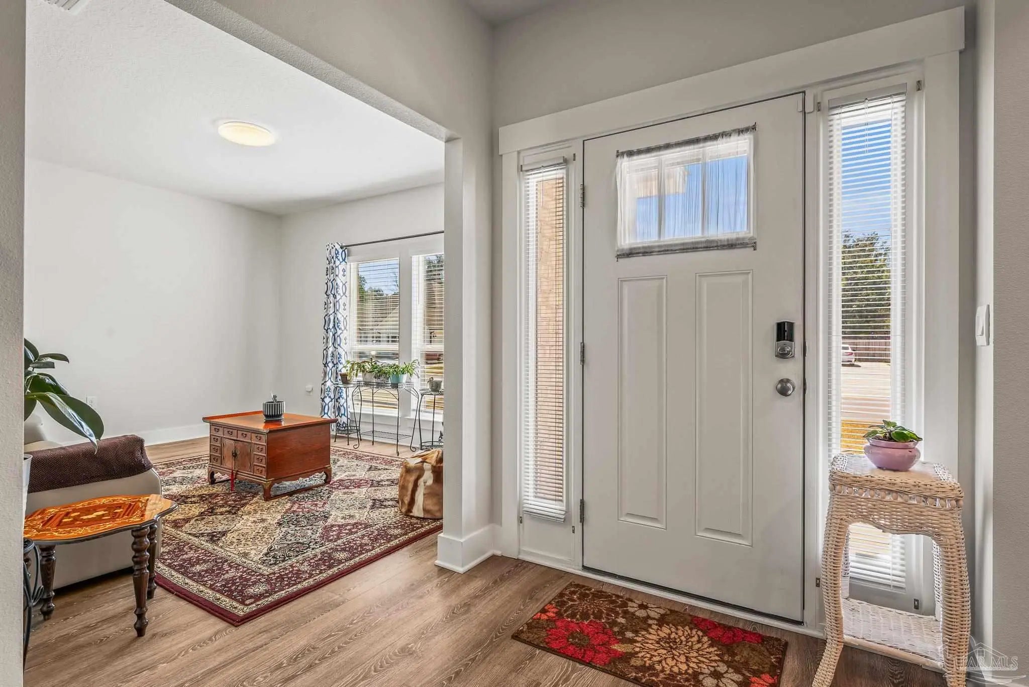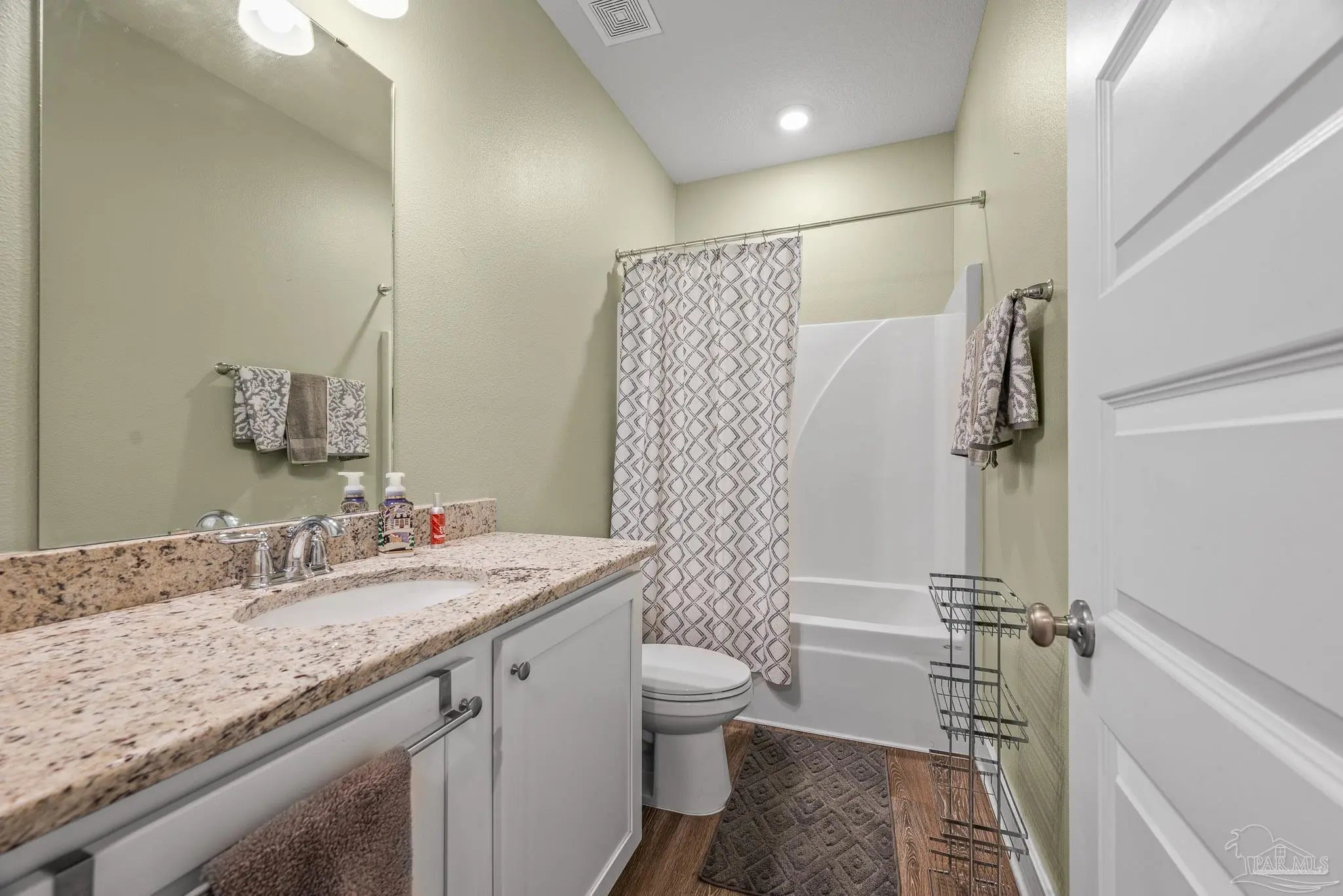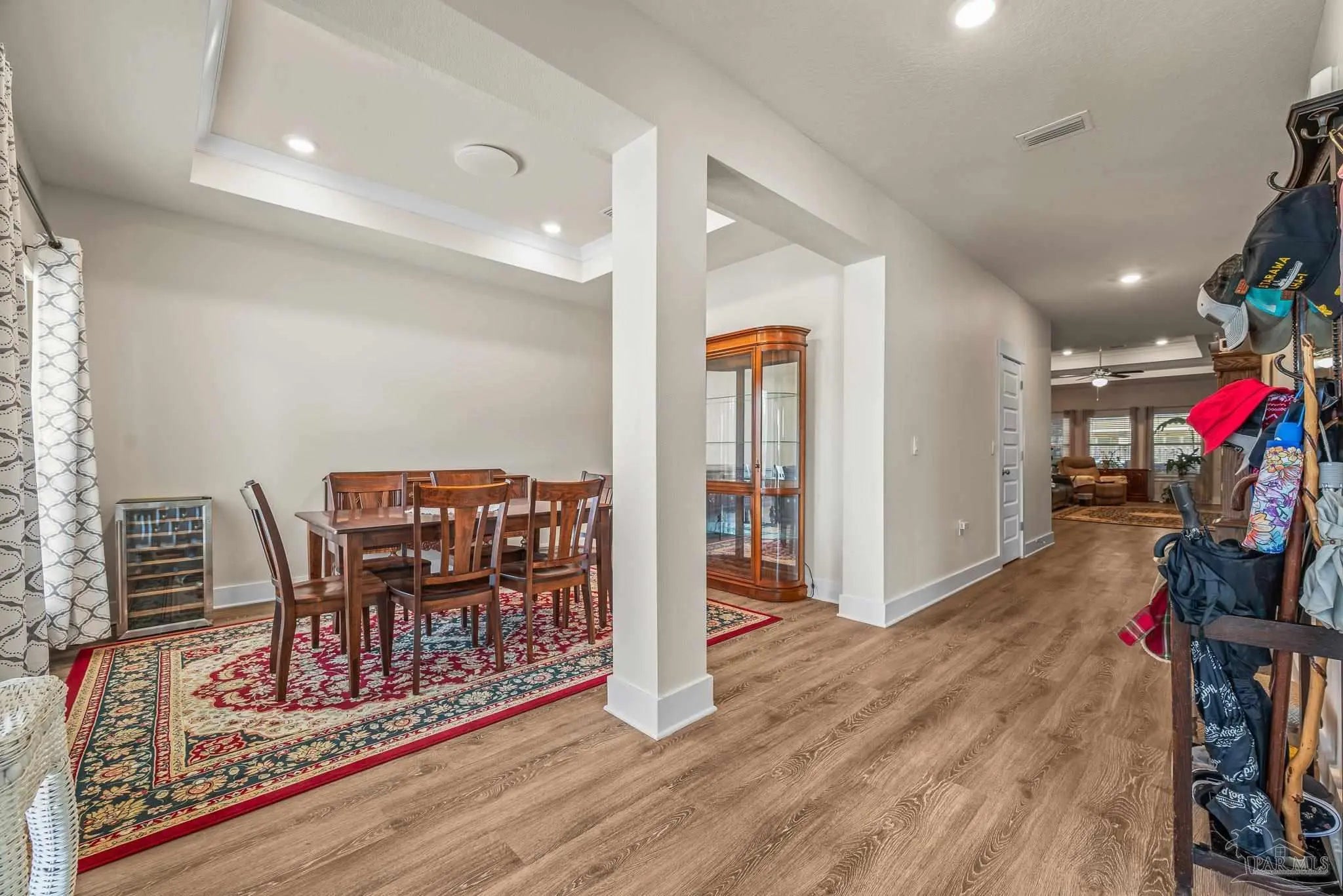 Drastically reduced, come see all your money can get you for this improved price. Popular 5-bedroom 3 bath Mckenzie floor plan featuring huge kitchen island, custom LED lighting package, 9 ft ceilings throughout, carpeted bedrooms and venetian blinds on all windows. The formal living room is away from the primary living area making it an outstanding option for a private home office. Gorgeous granite counter tops in kitchen and all bath vanities. Generous storage includes two full size linen closets. Major upgrades are already incorporated. Patio is expanded to 24x25 and screen enclosed. 12 x 26 detached garage/workshop is fully insulated with storage loft with a mini-split climate control assures year-round comfort. Electric service panel is wired and ready for installation of a whole house generator to assure power is never lost. Security system by Vivint includes indoor and outdoor cameras, video recording and a suite of indoor security monitors, you are alerted via WIFI of any system trigger. Large custom-made garden shed. Additional upgrades include fenced back yard, automatic sprinkler system, rain gutters, attic stairs, front entrance storm door. This house has it all. Pace area school including elementary, intermediate, middle and high school all within 2 miles. Shopping is nearby including a new Walmart fresh market. Generator, hot tub and propane tanks do not convey.