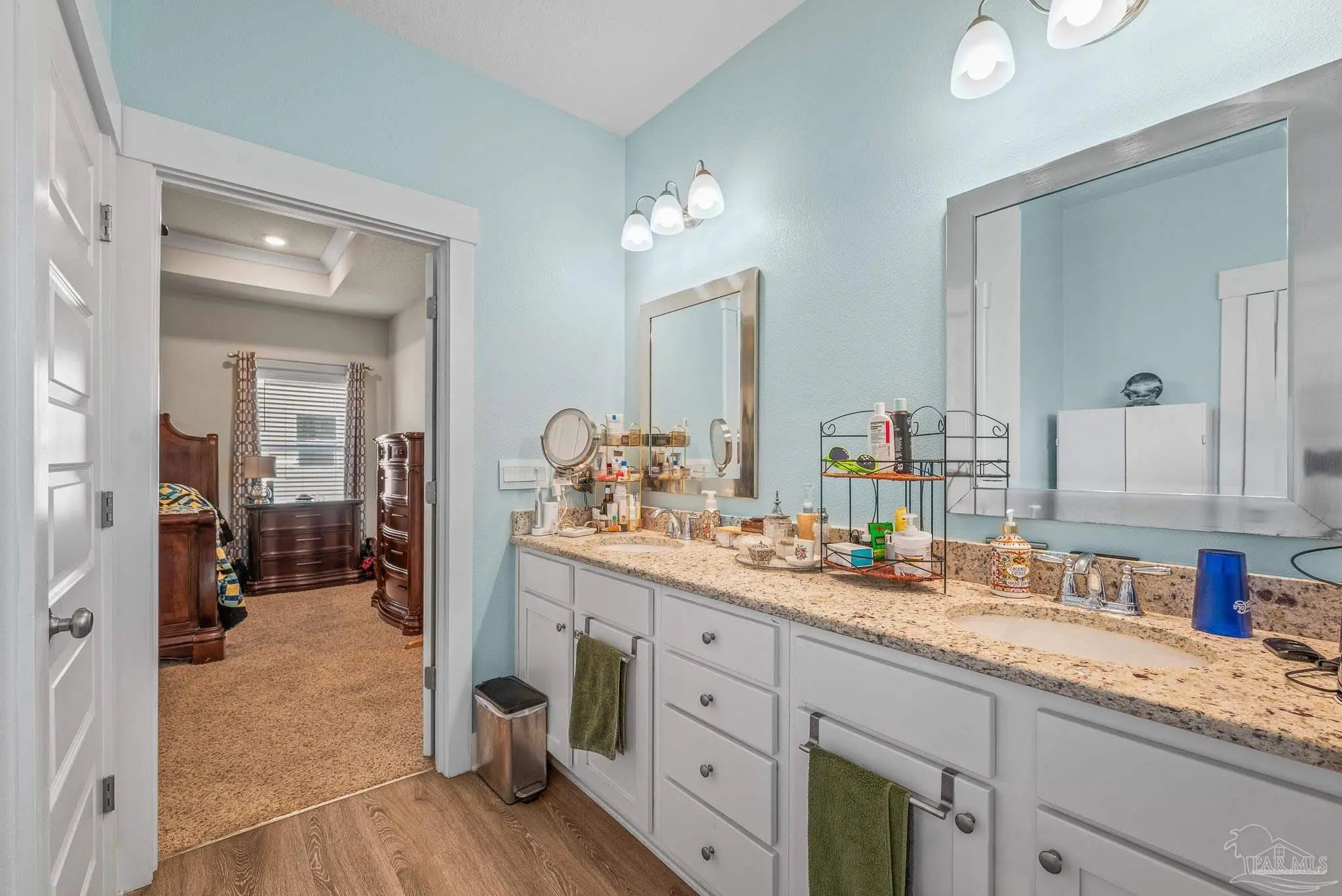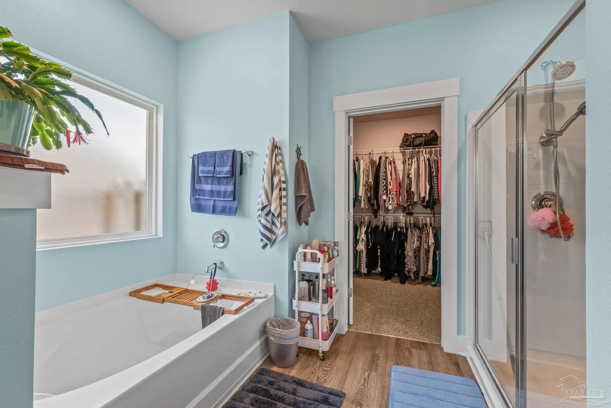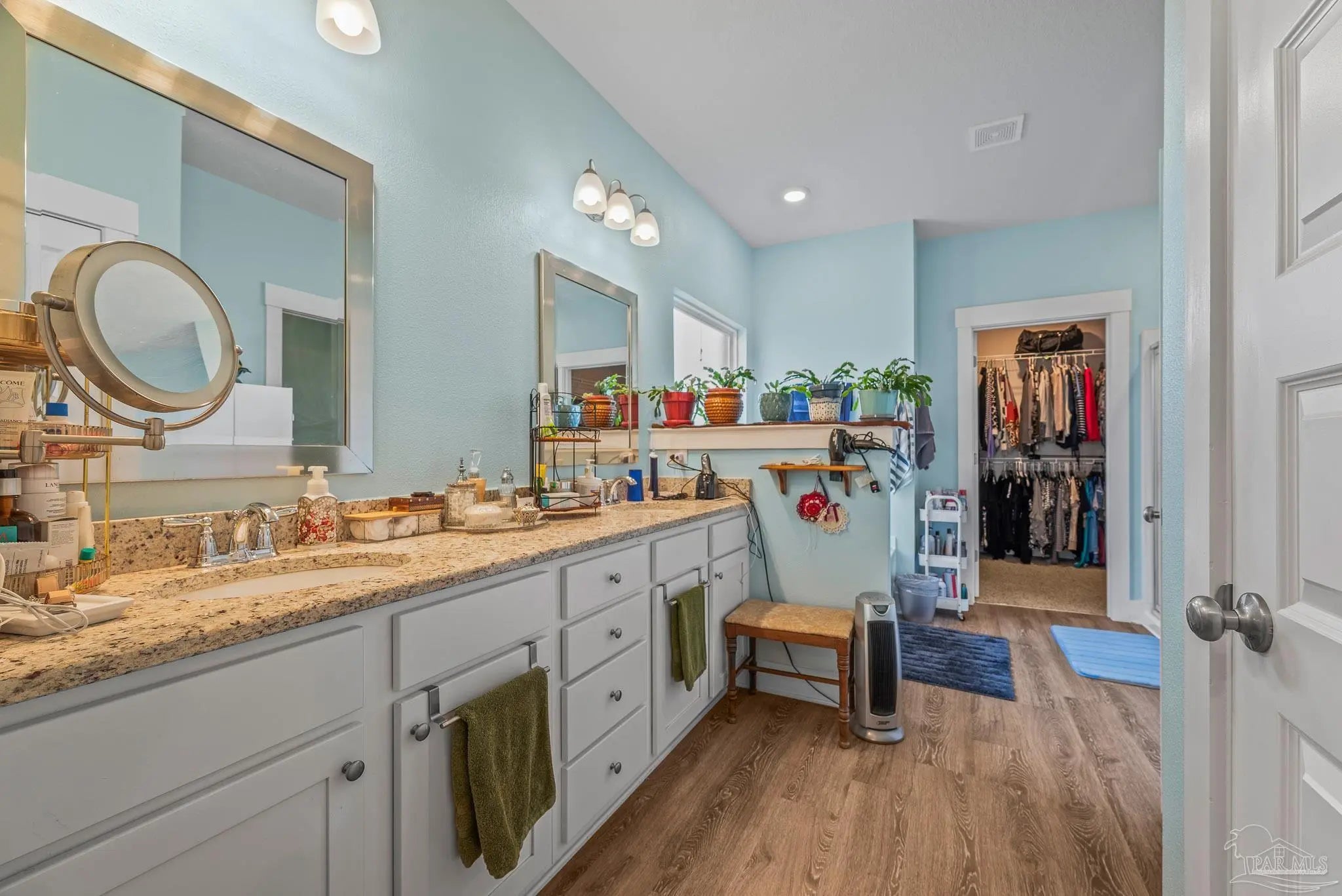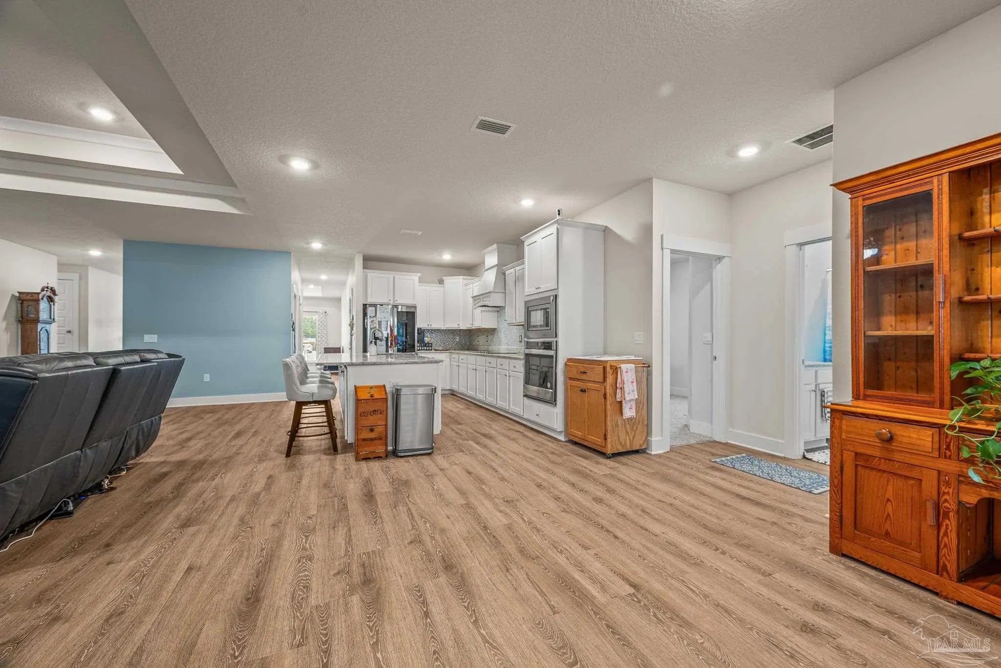 Drastically reduced, come see all your money can get you for this improved price. Popular 5-bedroom 3 bath Mckenzie floor plan featuring huge kitchen island, custom LED lighting package, 9 ft ceilings throughout, carpeted bedrooms and venetian blinds on all windows. The formal living room is away from the primary living area making it an outstanding option for a private home office. Gorgeous granite counter tops in kitchen and all bath vanities. Generous storage includes two full size linen closets. Major upgrades are already incorporated. Patio is expanded to 24x25 and screen enclosed. 12 x 26 detached garage/workshop is fully insulated with storage loft with a mini-split climate control assures year-round comfort. Electric service panel is wired and ready for installation of a whole house generator to assure power is never lost. Security system by Vivint includes indoor and outdoor cameras, video recording and a suite of indoor security monitors, you are alerted via WIFI of any system trigger. Large custom-made garden shed. Additional upgrades include fenced back yard, automatic sprinkler system, rain gutters, attic stairs, front entrance storm door. This house has it all. Pace area school including elementary, intermediate, middle and high school all within 2 miles. Shopping is nearby including a new Walmart fresh market. Generator, hot tub and propane tanks do not convey.