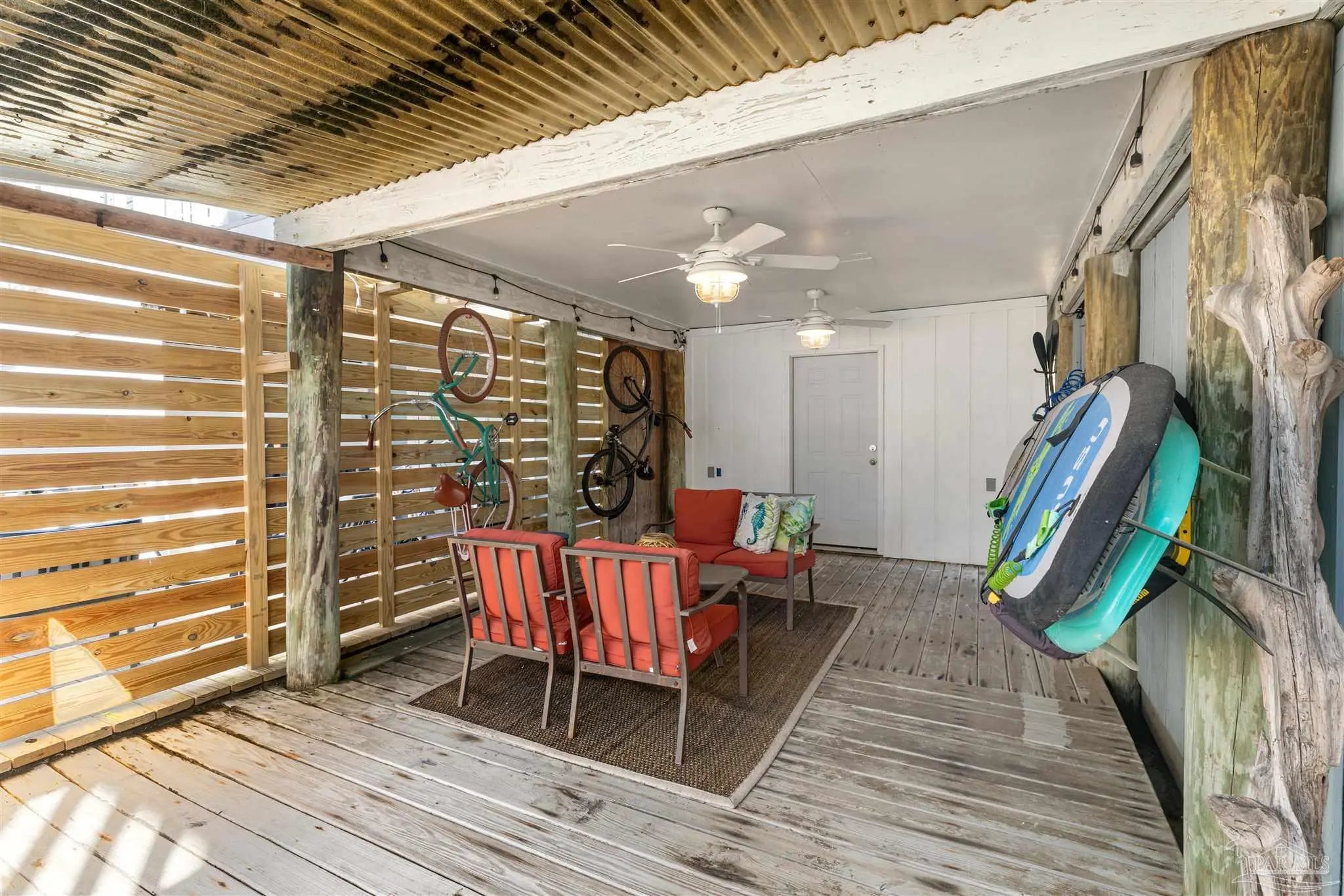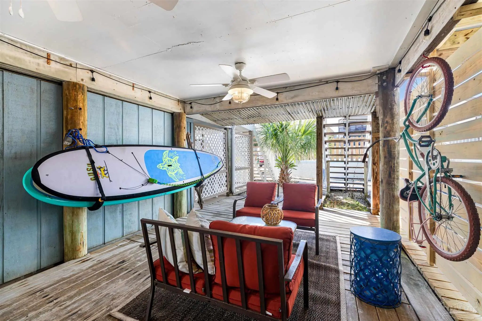 This appealing townhome is your perfect little island retreat tucked away in the serenity of Navarre Beach. Perfectly placed between the Sound and the sparkling Gulf of Mexico you’ll dream away your troubles with all the comforts you can imagine. Completely remodeled and updated with whimsical colors, new flooring and a beautiful stairway, the main-level offers an open living/kitchen area with upgraded appliances, a powder room and an electric fireplace. There’s a large utility room, storage area and covered patio on the ground level. On the top floor is a private bedroom and artsy bath boasting a decorative scheme. Walk out your door for a seaside stroll, a dip in the community pool, or just hang out on your porch and watch the puffy clouds go by. It’s ideal as a personal getaway, or as an income-producing asset.