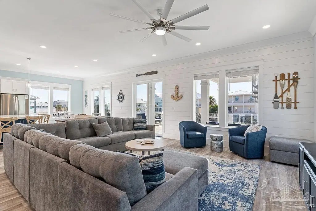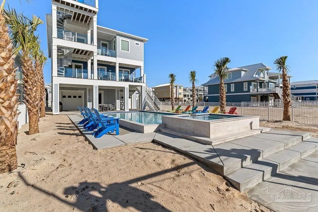 FULLY FURNISHED -.Luxurious Waterfront Retreat . Welcome to paradise at Navarre Beach, Florida! This stunning 5-bedroom, 6-bathroom home offers the ultimate in luxury coastal living. Situated directly on the pristine shores of Navarre Beach, this property is a rare gem offering Breathtaking views and the emerald waters of the Gulf Coast And Water front access to the sound waters of the intercoastal Waterway .Brand-new construction with impeccable attention to detail - Tiki Bar- Expansive open-concept living areas flooded with natural light-Modern gourmet kitchen featuring top-of-the-line appliances and custom cabinetry-Five spacious bedrooms, each with its own EnSite bathroom for maximum comfort and privacy .Luxurious master suite with a private balcony overlooking the Gulf of America & The treasured National Seashores -Impressive outdoor living spaces including multiple balconies and a sprawling patio perfect for entertaining or relaxing while enjoying the sea breeze along with an amazing observation deck towering well above the other homes in the area-Attached garage and ample parking for guests-Located in the highly sought-after Navarre Beach community, known for its pristine beaches, tranquil atmosphere, and proximity to dining, shopping, and outdoor recreation options. Don't miss out on this rare opportunity to make your dreams of coastal living a reality. And please don't forget to bring your boat - Paddleboards & Jet ski .Unlike saturated markets, Navarre offers a unique blend of natural beauty, affordability, and growing demand. Strong rental market: With consistent tourism and growing popularity, Navarre boasts high occupancy rates and lucrative rental income potential. Appreciation potential: As the area continues to develop, property values are expected to steadily increase, promising significant returns on investment.