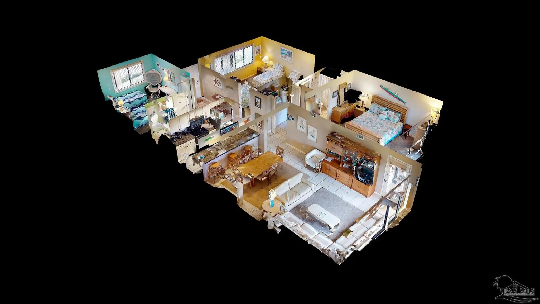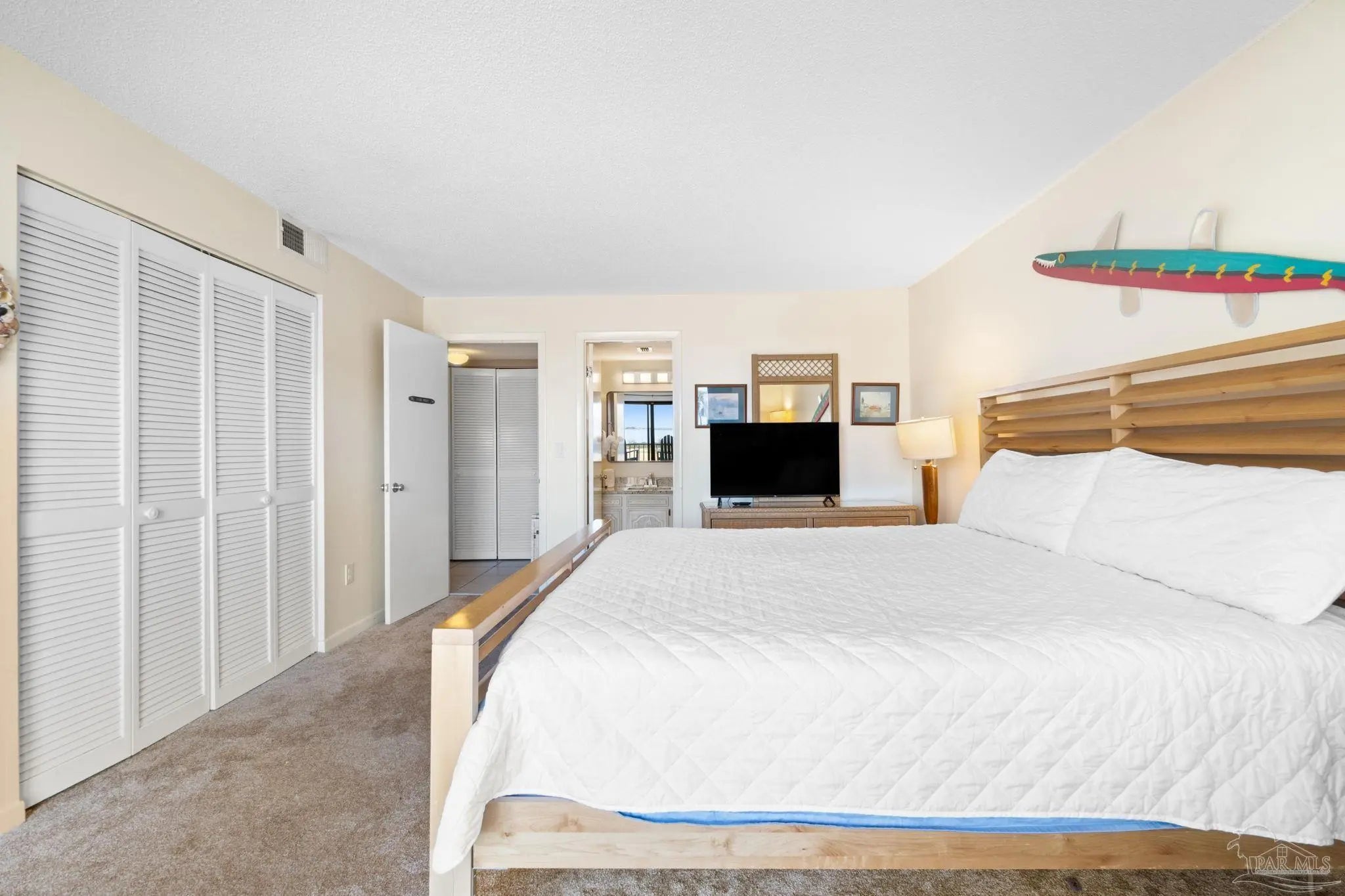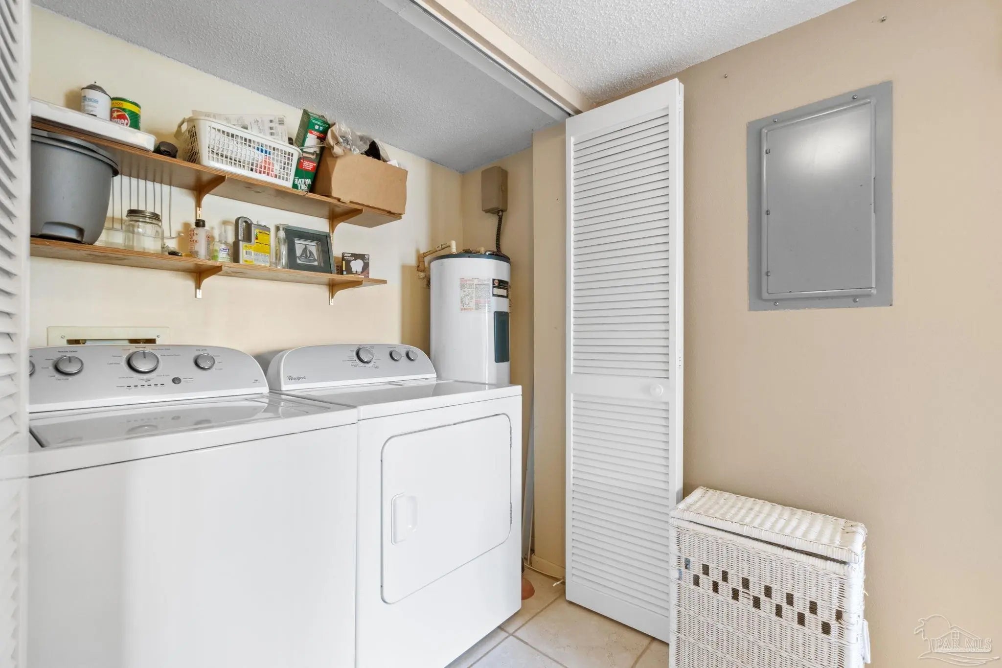 The best 3-bedroom price on Pensacola Beach! Come enjoy a spacious floorplan with an outstanding view! This quiet Sound-side facing condo offers breathtaking sunset views. The spacious three-bedroom, two-bathroom single-level unit provides an open-concept living and kitchen area with bar seating, creating an inviting space for relaxation and entertainment. A covered balcony extends off the living area, offering a charming view of the bay. The master suite features a king bed and an en-suite bathroom with walk-shower. One guest bedroom includes two twin beds, while the second guest bedroom is furnished with two full beds and a twin bed, providing ample sleeping accommodations. A second full bathroom with a tub and shower combination serves the guest rooms. A laundry closet with a full-size washer and dryer adds convenience to the home. Located in the desirable Santa Rosa Dunes Complex, this condo offers resort-style amenities, including an Olympic-sized swimming pool, a shared dock for peaceful waterfront moments, and tennis courts for recreation. The family-friendly environment provides easy access to the calm waters of the Sound, making it ideal for children to explore and play. The complex is well-maintained with beautiful grounds, enhancing the overall experience of coastal living. Just a short walk away, the renowned Peg Leg Pete’s restaurant offers delicious dining, while a nearby corner store ensures convenience. The pristine white sands of the Gulf are within easy reach, allowing for endless beach days. Pensacola Beach is known for its sugar-white sand, turquoise waters, and vibrant beach culture. With bars and restaurants less than five minutes away, this location blends tranquility with entertainment. Keep an eye on the sky, as you might catch a thrilling Blue Angels flyover. Don’t miss the chance to own a slice of paradise at a great price!