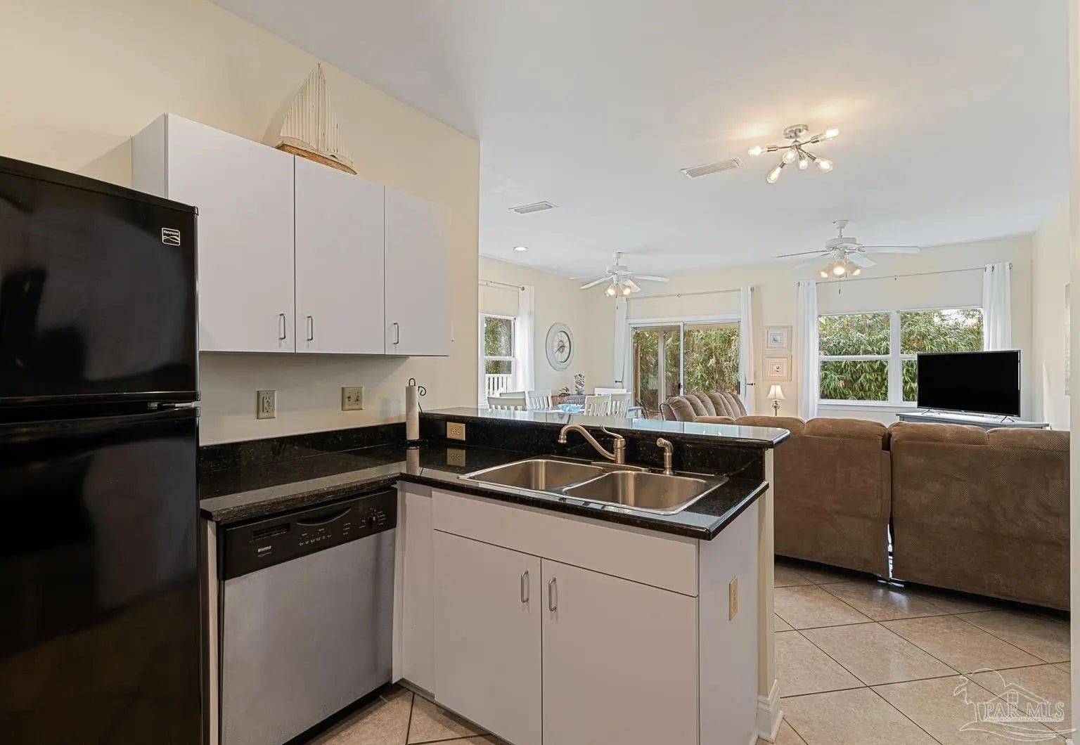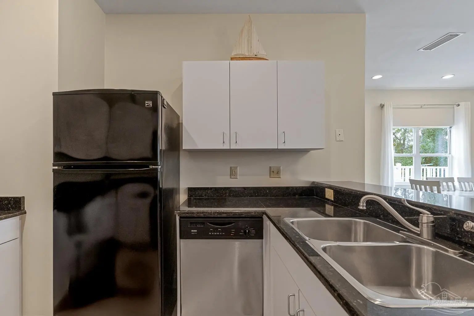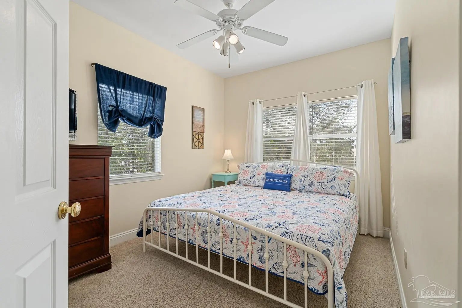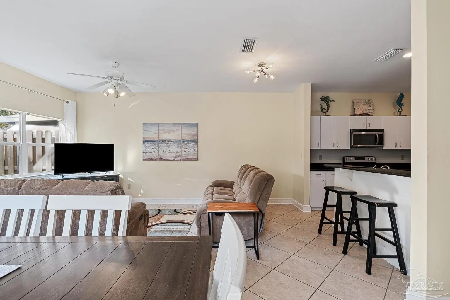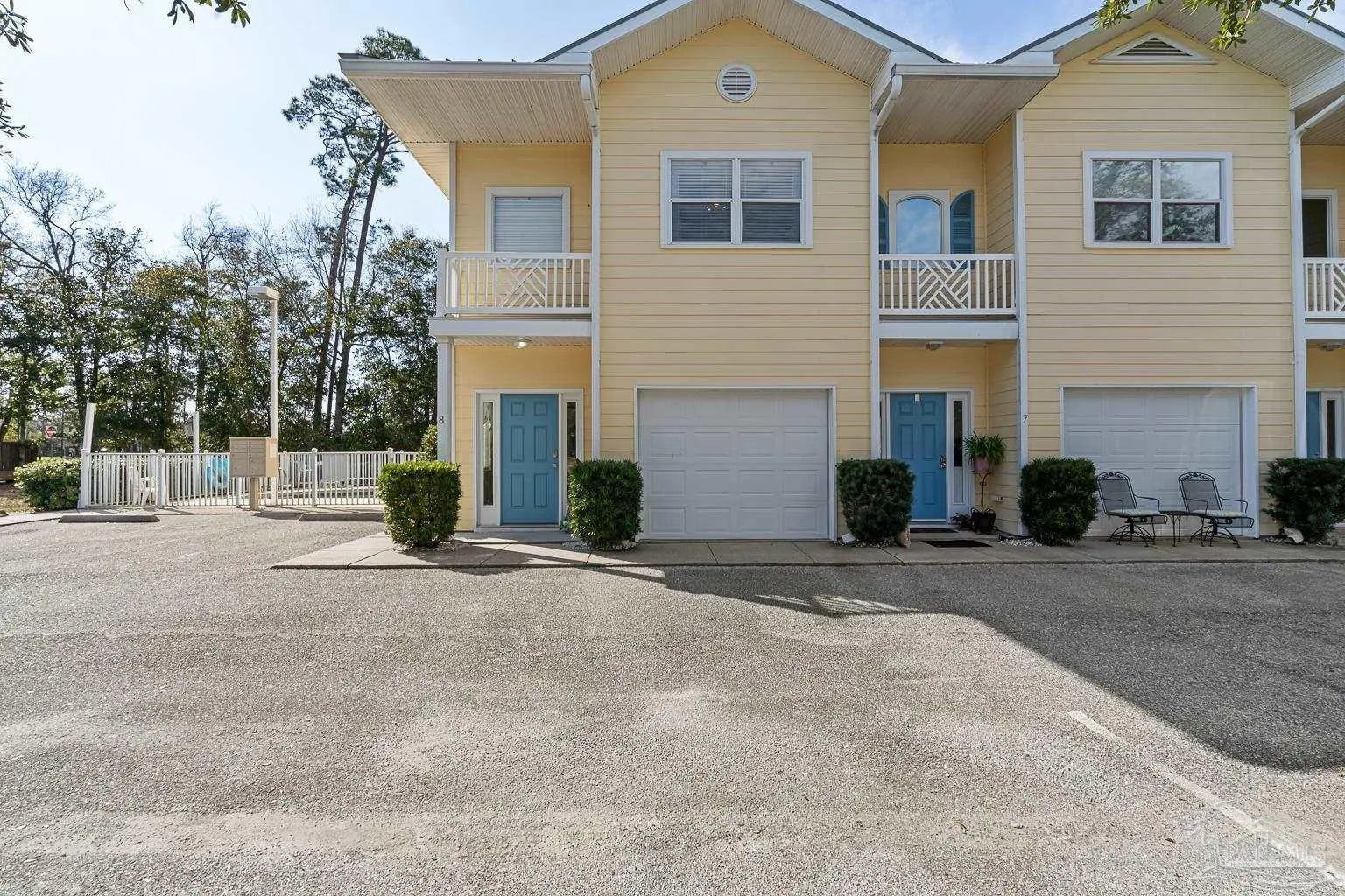Tucked away in the community center of Orange Beach, Nancy Lane #8 offers the perfect blend of coastal charm, local recreation, and everyday convenience. This 3-bedroom, 2.5-bathroom corner townhome is 1,618 square feet of thoughtfully designed, easy living space with park views and lots of light, thanks to the unit's corner location. Step inside to find a bright and functional residence where natural light pours through the extra windows, accentuating the clean finishes and roomy floor plan. The stocked kitchen is appointed with ample cabinets, granite countertops, and black/stainless appliances, perfect for preparing a meal after a day on the water. A newly updated half-bath on the main level adds convenience. Upstairs, the primary suite offers a peaceful retreat with large windows and a bath with a walk-in closet, jetted tub, and separate shower. Two additional bedrooms provide flexibility, ideal for use as a home office, studio, or guest accommodations. The home is being sold nearly fully furnished with almost all of the coastal decor, household and kitchen supplies, and linens included! Recent updates include new 2-inch blinds in the bedrooms, fresh paint, new shower heads, light fixtures, and paint in the bathrooms, and a new vanity w/ sink and lighting in the half bath. Step outside to your covered patio, where you'll be greeted by views of Wolf Bay to the north. Parking is never a hassle with a 1-car garage and assigned parking right in front of the home. Beyond the residence itself, the amenities and golf-cart-friendly location are unbeatable. Nancy Lane residents can dip in the community pool or head next door to the Orange Beach Waterfront Park and Pier, Kids Park, the Coastal Arts Center (site of the annual OB Art Festival), and the Wind and Water Learning Center. The Library, Senior Center, GT’s Restaurant, and the OB Recreation Center are moments away. On Nancy Lane, you’re never far from the best that Orange Beach has to offer. Come see for yourself!