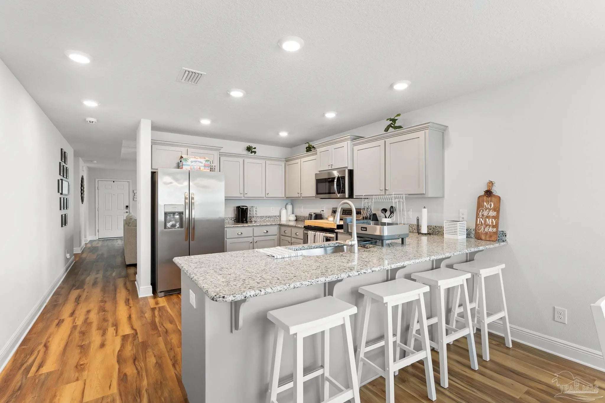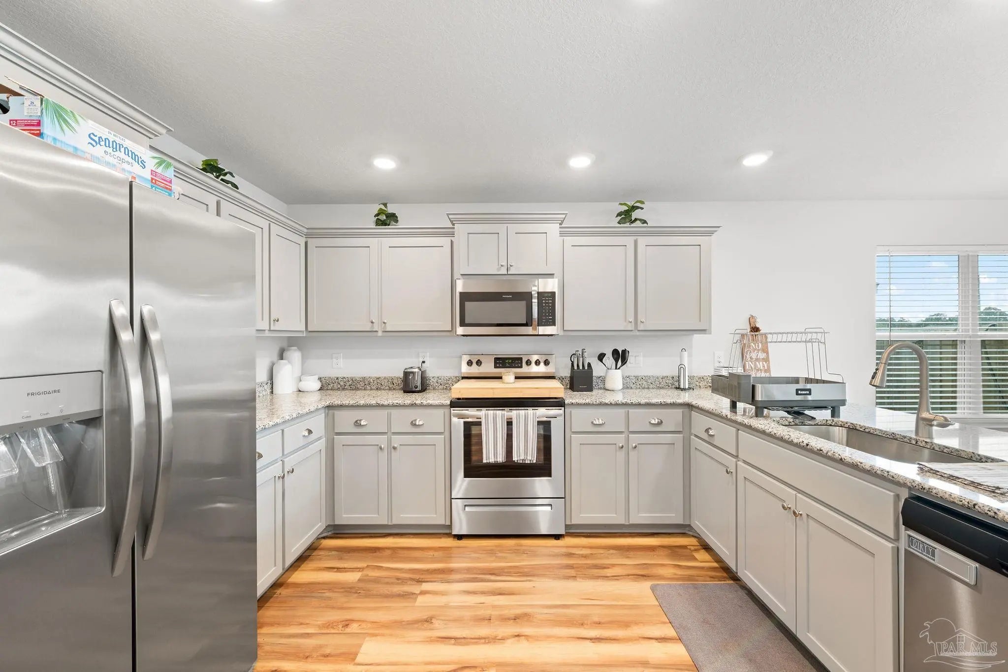 Welcome to 7157 Sonny Dr, Pensacola, FL 32504, a charming single-story home in the desirable Commanders Cove subdivision! Built in 2023, this 3-bedroom, 2-bathroom residence spans 1,515 square feet, offering a perfect blend of modern comfort and prime location. Ideal for UWF students, nurses, first-time home buyers, downsizers, or investors, this home is a fantastic opportunity in the heart of Pensacola’s 32504 zip code. Step inside to a bright and inviting living area, perfect for relaxing or hosting friends. The well-equipped kitchen features modern appliances, including a built-in microwave, dishwasher, refrigerator, and self-cleaning oven, designed for convenience and style. An indoor laundry room with a washer and dryer adds practicality to your daily routine. The primary bedroom offers a peaceful retreat with ample closet space and a modern en-suite bathroom. Two additional bedrooms provide flexibility for guests, a home office, or roommates. Enjoy Florida’s sunshine on the private backyard patio, perfect for morning coffee or evening gatherings, with blinds throughout for added privacy. Situated on a quiet cul-de-sac lot, this move-in-ready home is just minutes from the University of West Florida, West Florida Hospital, I-10, I-110, and Davis Highway, making it a prime choice for students, medical professionals, or anyone seeking easy access to Pensacola’s amenities.