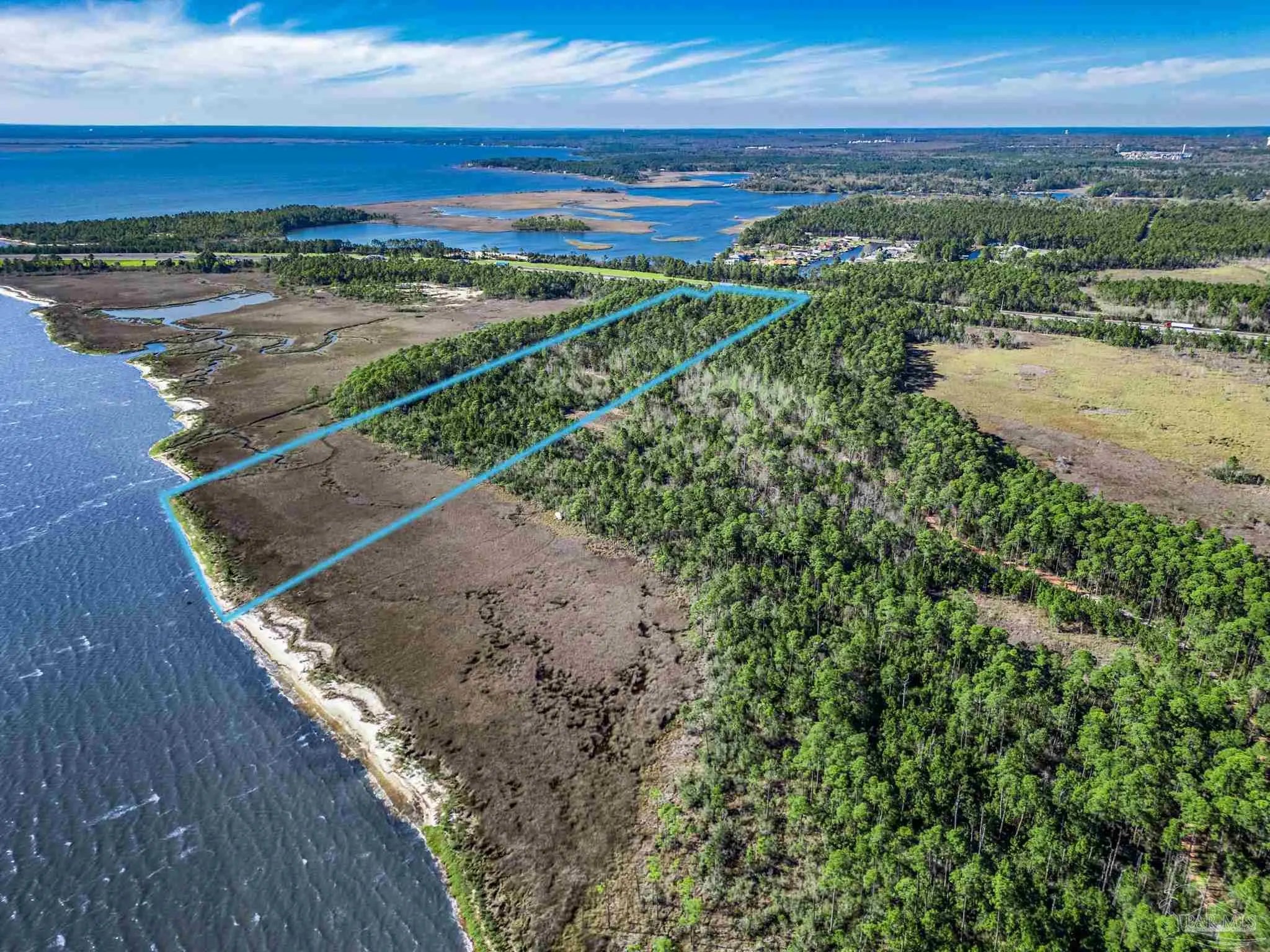 Incredible opportunity!!! One of the most affordable lots that boasts close to 500 feet of water front. This property contains 19.85 acres and over 3 acres of uplands all waiting for you. Build your dream home and have water access and acreage that will provide the peace and serenity of the country while being minutes from downtown Pensacola and our world famous beaches! You will find that this property cannot be rezoned per deed restrictions.
