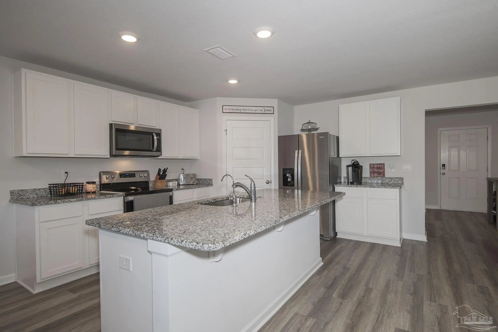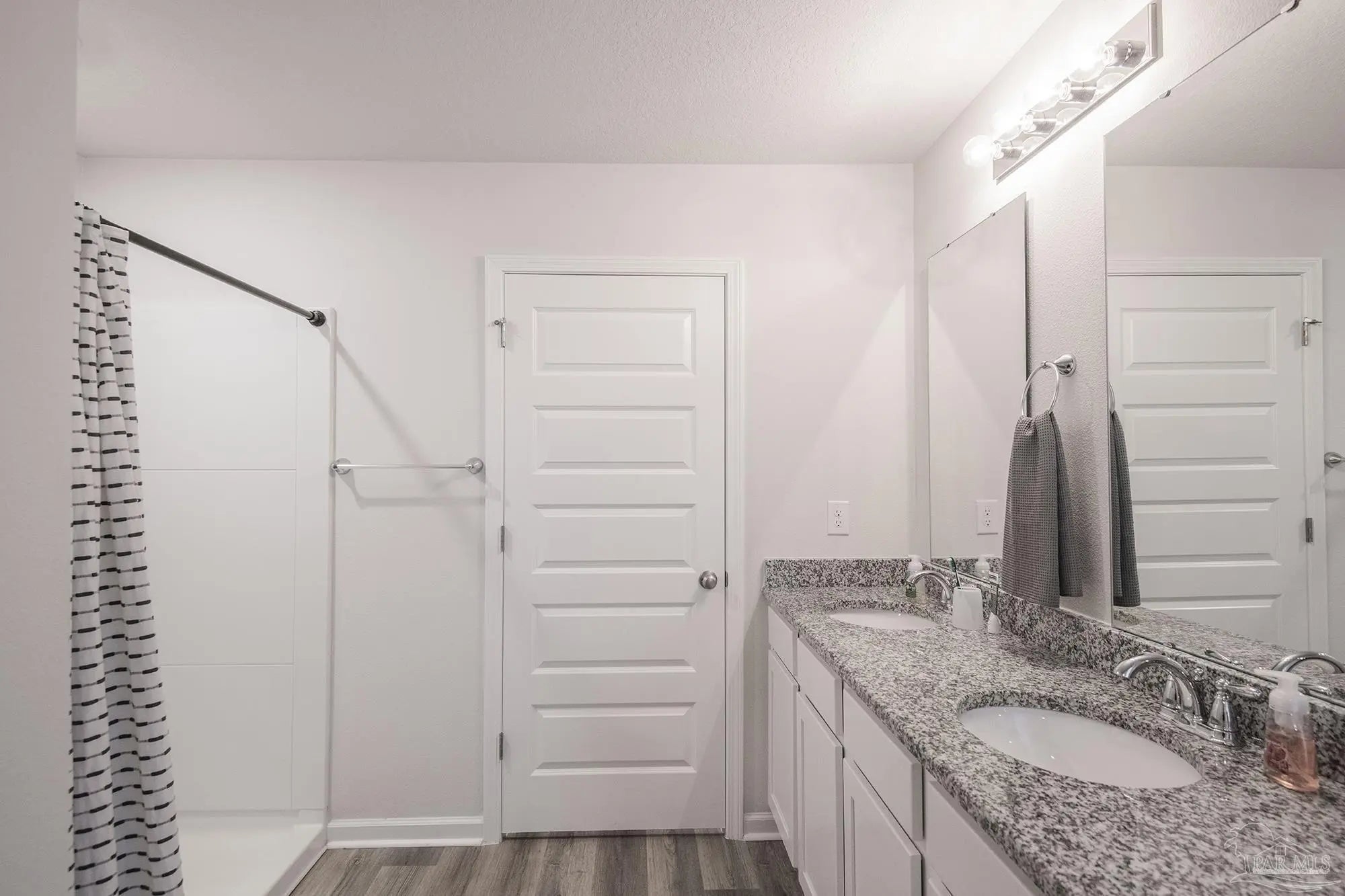 This spacious 5-bedroom, 3-bathroom home offers 2,628 square feet of modern living in the prestigious Reserve at Deer Run community. Built in 2022, this stunning home combines contemporary design with low-maintenance living and lower insurance costs. Nestled on 0.28 acres overlooking a serene pond, it provides a peaceful retreat while offering convenient access to 9 Mile Road, I-10, shopping, hospitals, schools, restaurants, downtown Pensacola, and Pensacola Beach. Designed for both comfort and functionality, the home features an open-concept living area that seamlessly blends the living room, kitchen, and dining space—perfect for entertaining. A bonus room with a full bath downstairs adds versatility, ideal for guests, a home office, or a playroom. Upstairs, you’ll find four additional bedrooms, two full baths, a laundry room, and a spacious common landing area. Additional features include a whole-house water filtration system, ample storage, and an attached 2-car garage. As part of Reserve at Deer Run, residents enjoy exclusive community amenities, including a pool, cabana bath house, grilling area, and underground utilities. If you're searching for a large, modern home with premium features in an excellent location, this is the one for you. Don’t miss your chance—schedule a tour today!