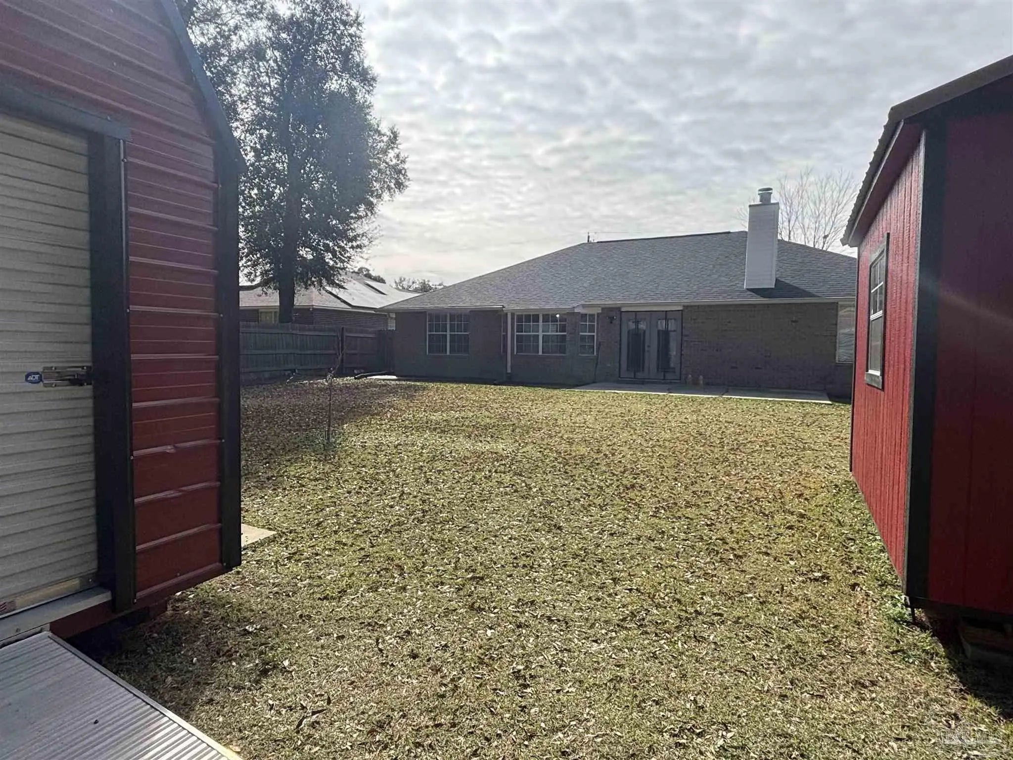 VA Assumable Loan *** This all brick 2,026 SF 3 bedroom 2 bathroom home with side entry garage and solar panels is move in ready just waiting for you. The home is located in peaceful Ashton Woods just North of Highway 90 in Milton. It boasts many updates including luxury vinyl plank (LVP) throughout as well as updated fixtures is most every room. Bedrooms and Great room also have ceiling fans. The great room has a 12 foot ceiling, French doors to the patio, wood burning fireplace and it is open to the kitchen and breakfast area. The kitchen has had updates and includes a backsplash, white painted cabinets and stainless steel appliances including refrigerator. There is a breakfast room as well as a separate dining room that could double as many uses. The master bedroom is a good size and has a bathroom with a large walk-in closet, double sinks in a white painted cabinet, separate shower, water closet and a garden tub. The additional bedrooms both have double closets. The additional bathroom has a standard tub and shower combo and white cabinet. The laundry room comes with a washer and dryer and the house is all electric and is equipped with hurricane window protection. The yard is a great size and includes three newer well built yard buildings with metal roofing, drive through doors on one and a roll up door on all three. The home is located conveniently to hospital and clinics, schools, shopping and anything else you may need. Come see it before someone beats you to it.