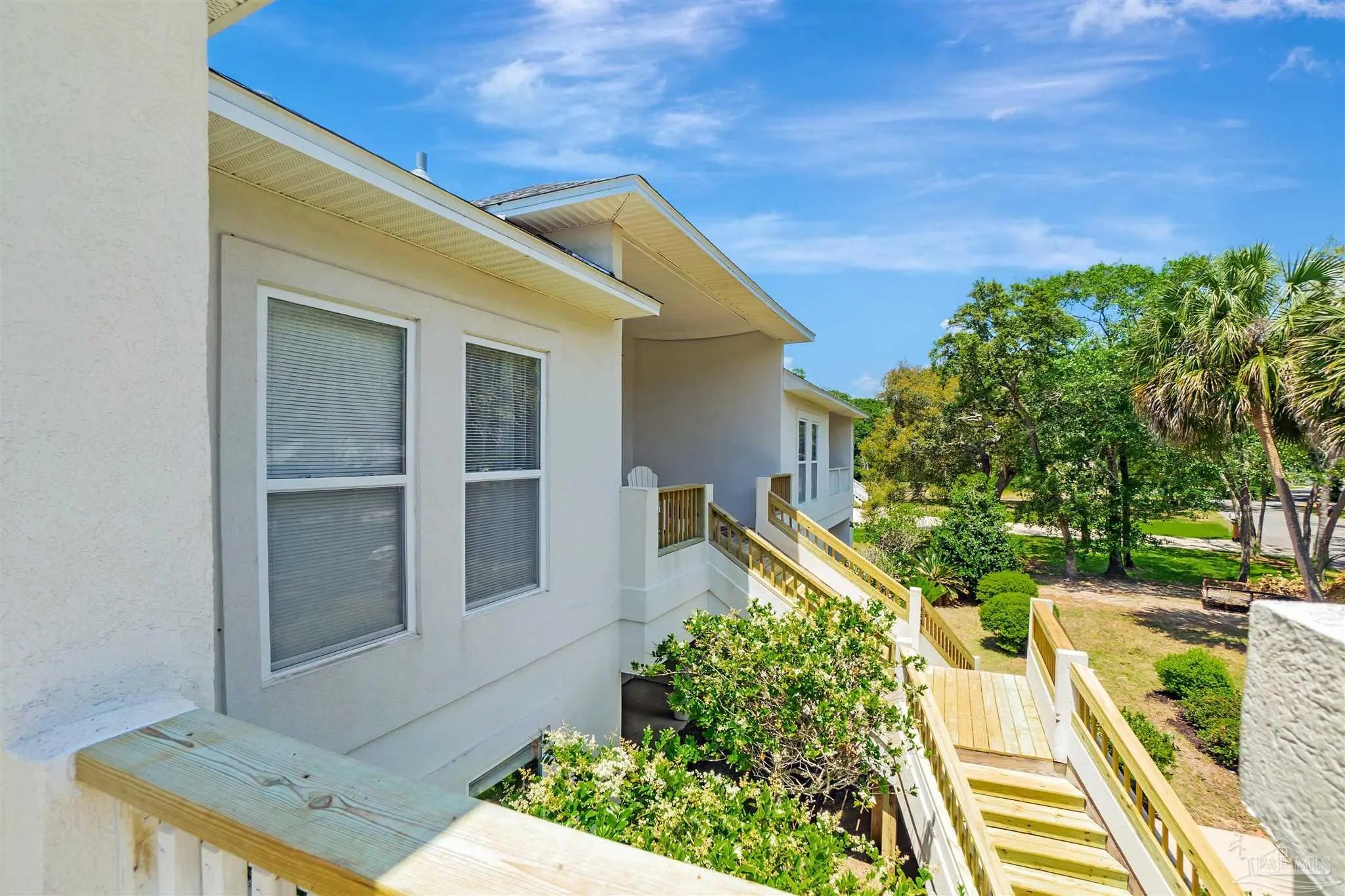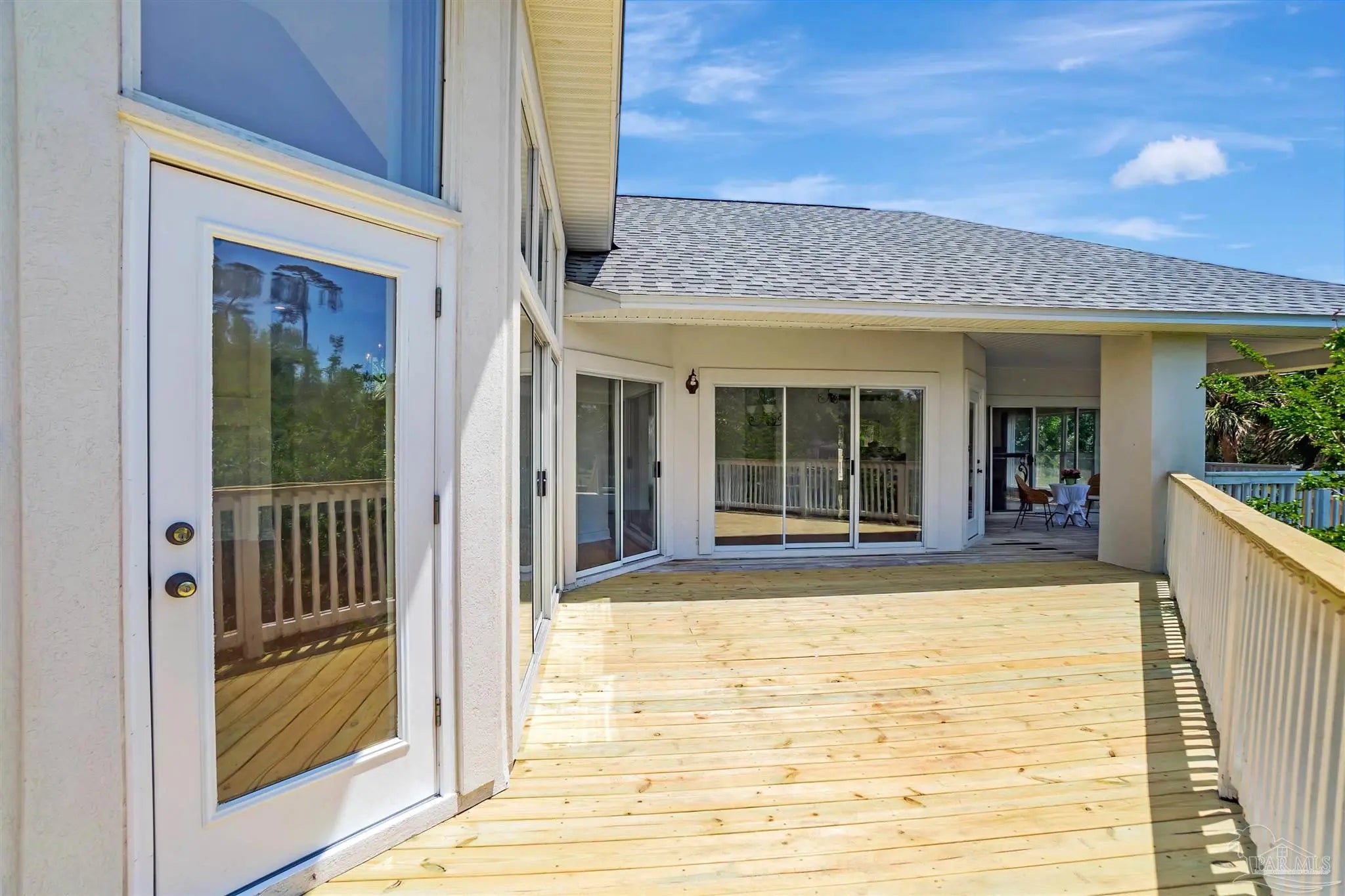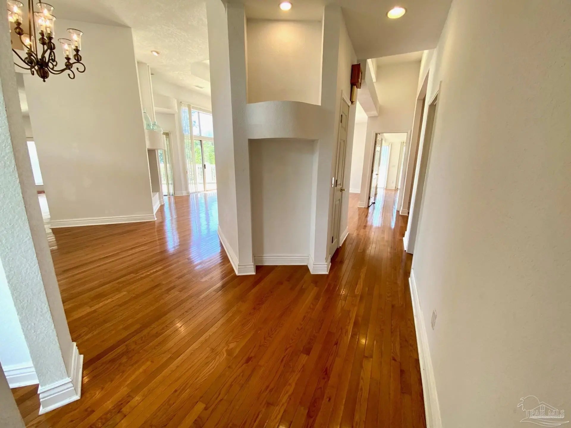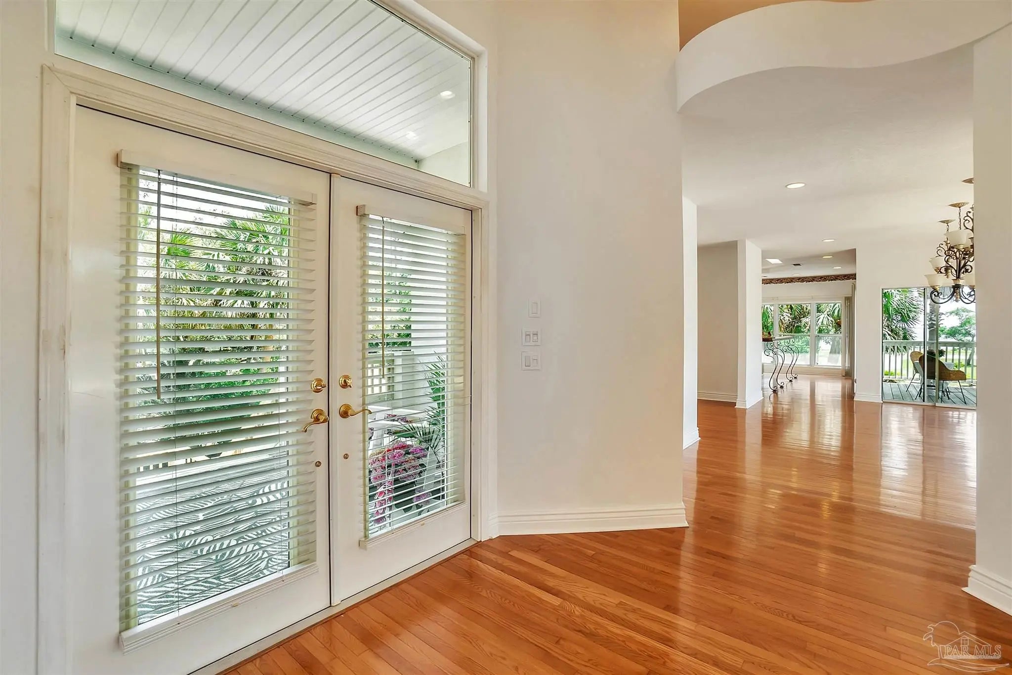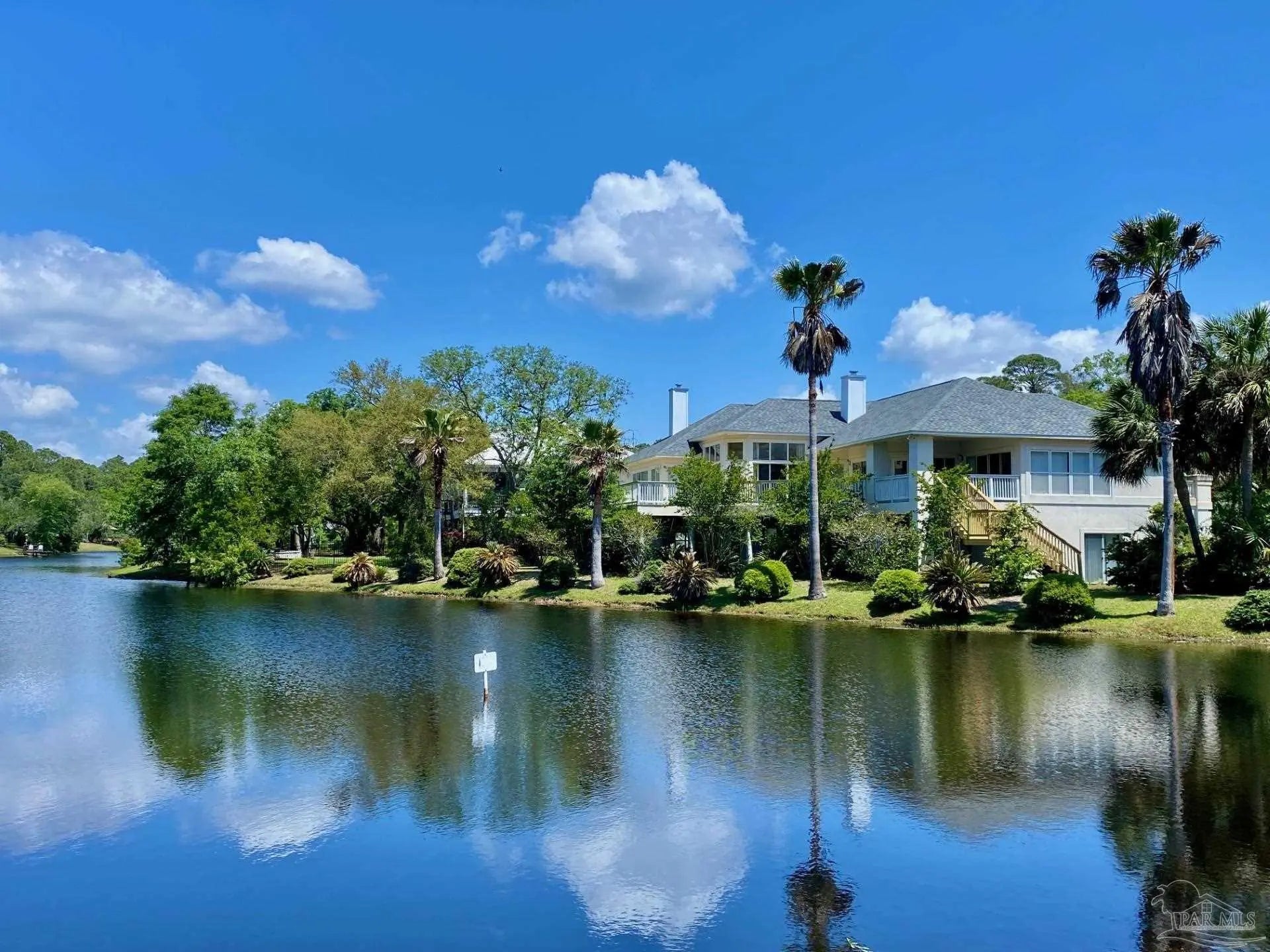 LAKESIDE WITH BAY VIEWS! Welcome to this Mediterranean style meets NWFL grand home with bay views, large decks, and 185 feet of lakefront. Easy access to East Bay at neighborhood park with a fishing dock and boat ramp! Enter the home from an impressive double staircase and wide front porch. Enormous windows and glass sliding doors allow for plenty of natural light in these spacious rooms: living room, dining room, kitchen and owner's suite. The living room has 13-foot ceilings in the tray, the foyer has 12-foot ceilings, and the dining room has 9-foot ceilings. The home features hardwood and tile floors, two see through fireplaces, granite countertops, two stoves in the kitchen, a tray ceiling, a double pantry, a built-in wet-bar that could easily be converted into a library or office, and so much more. An inside spiral staircase leads you to the extra unfinished 3,000+ square feet on the ground floor. The house is built on pilings for storm safety, but the ground floor is enclosed with outer walls, doors, windows and so much potential. New roof and new AC in 2024. New stairs and deck work in 2025. This home is an entertainer's dream, but if you just want to sip coffee on your deck and watch the bay, you can do that too!