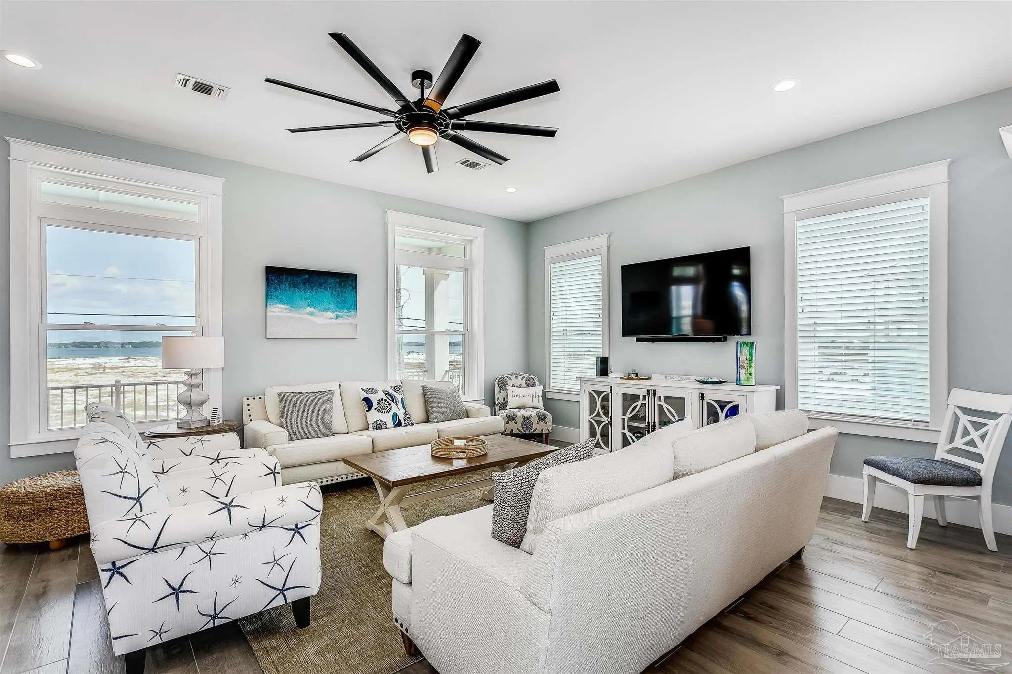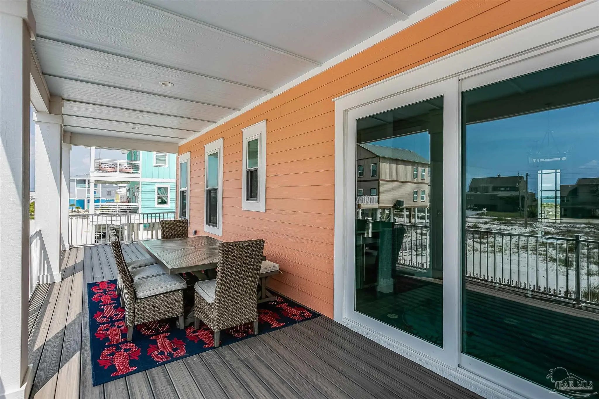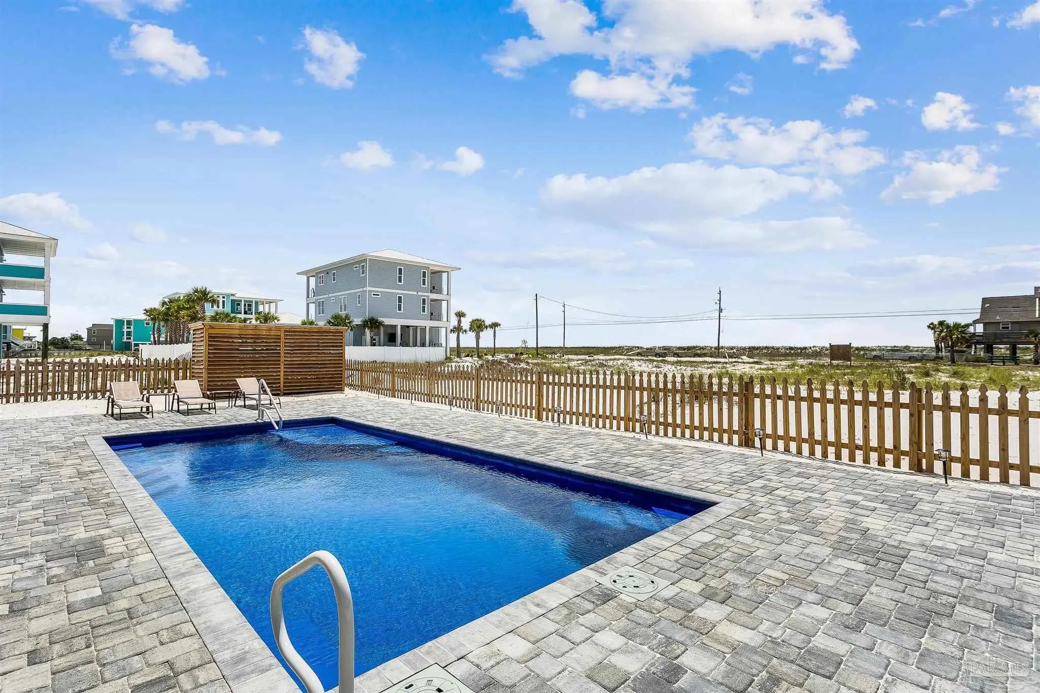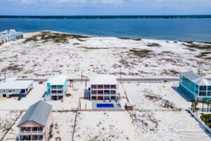 Enjoy unobstructed views of the Sound and Gulf from the oversized balconies. 5 bedrooms plus bunk bedroom, 5.5 baths. fully furnished home with Elevator, private Pool, and a 6-seater golf cart. The beach is a short walk or golf cart ride away. Upgraded Open Floor Plan with many upgraded custom designer finishes that include square edge custom cottage trim, high ceilings, tall 8-ft doors, and porcelain plank tile throughout. The Chef’s kitchen has water views in every direction, high end appliances, expansive breakfast bar, quartz counter tops, double ovens, under counter microwave and wine cooler. Two guest bedrooms on the first living level each with their own bath. Two other guest bedrooms each with their own bath, bunk room and Master suite are on the second living level. Half bath is next to the bunk room and a laundry room. The Master suite overlooks the Gulf of Mexico, has king bed, twin pull out sofa, master bath with large walk-in shower, soaking tub, double vanity with Quartz countertop, and motorized privacy roller shade. The garage adjoins the pool deck and has storage areas for swim and beach toys, 10 bikes and second refrigerator for easy access to drinks and cool treats. Large garage area has plenty of space for vehicles and golf cart. Located a short distance from the National Seashore and walk-over to the Gulf and minutes away from local attractions, shopping and restaurants. Opportunity for Vacation Home or Vacation Rental Investment “Peachy Queen” has dual Masters and sleeps up to 20 people. Begin to experience Coastal Beach Life!
