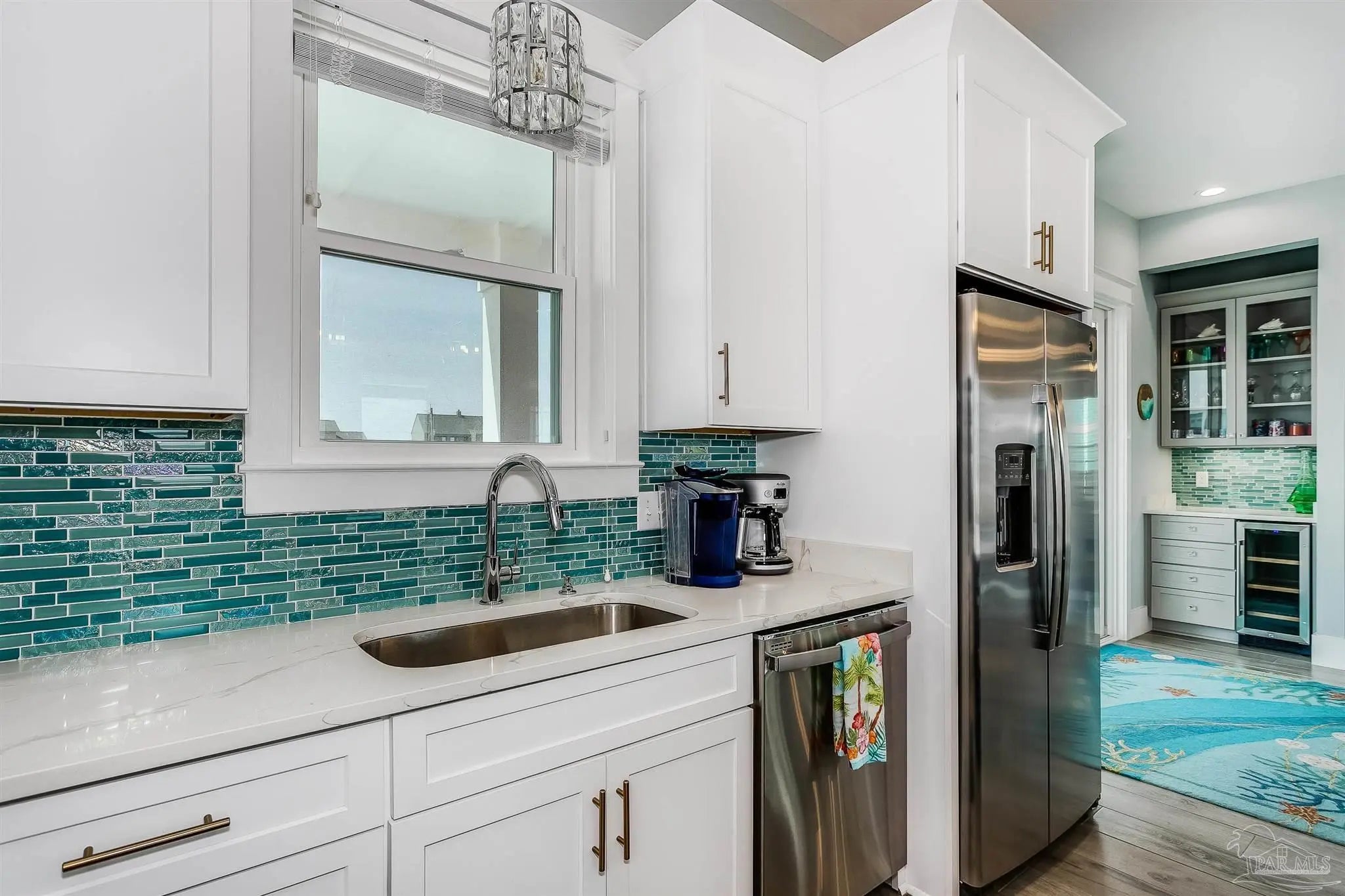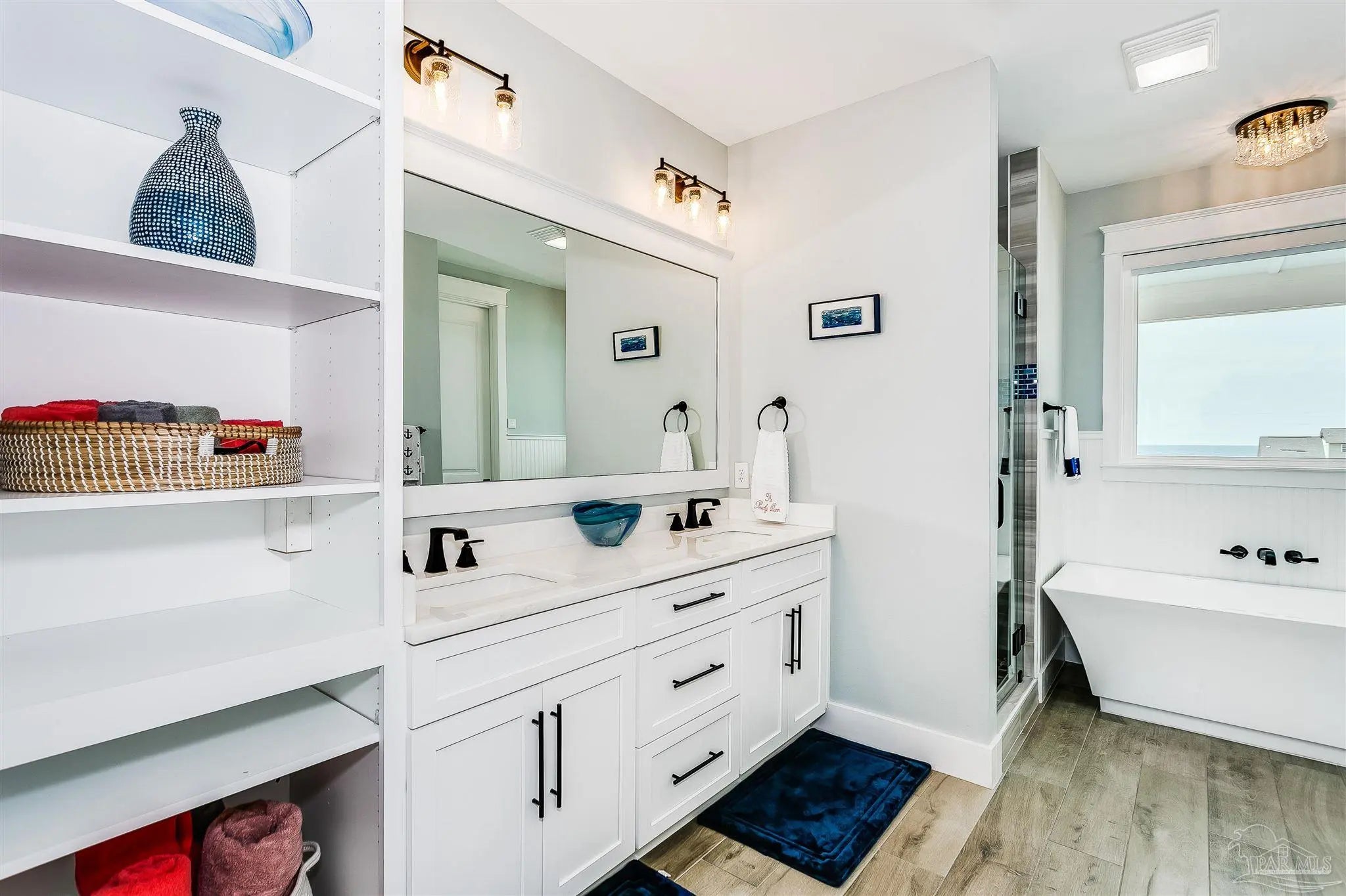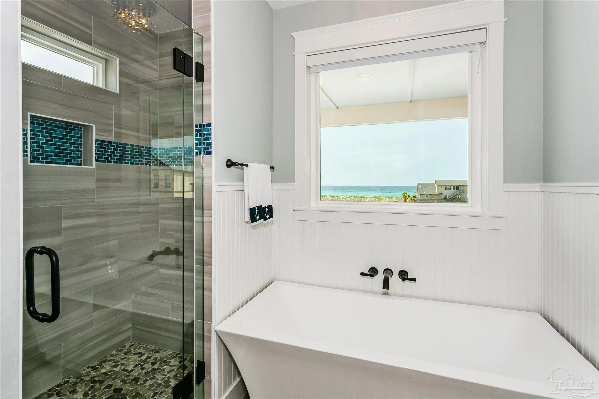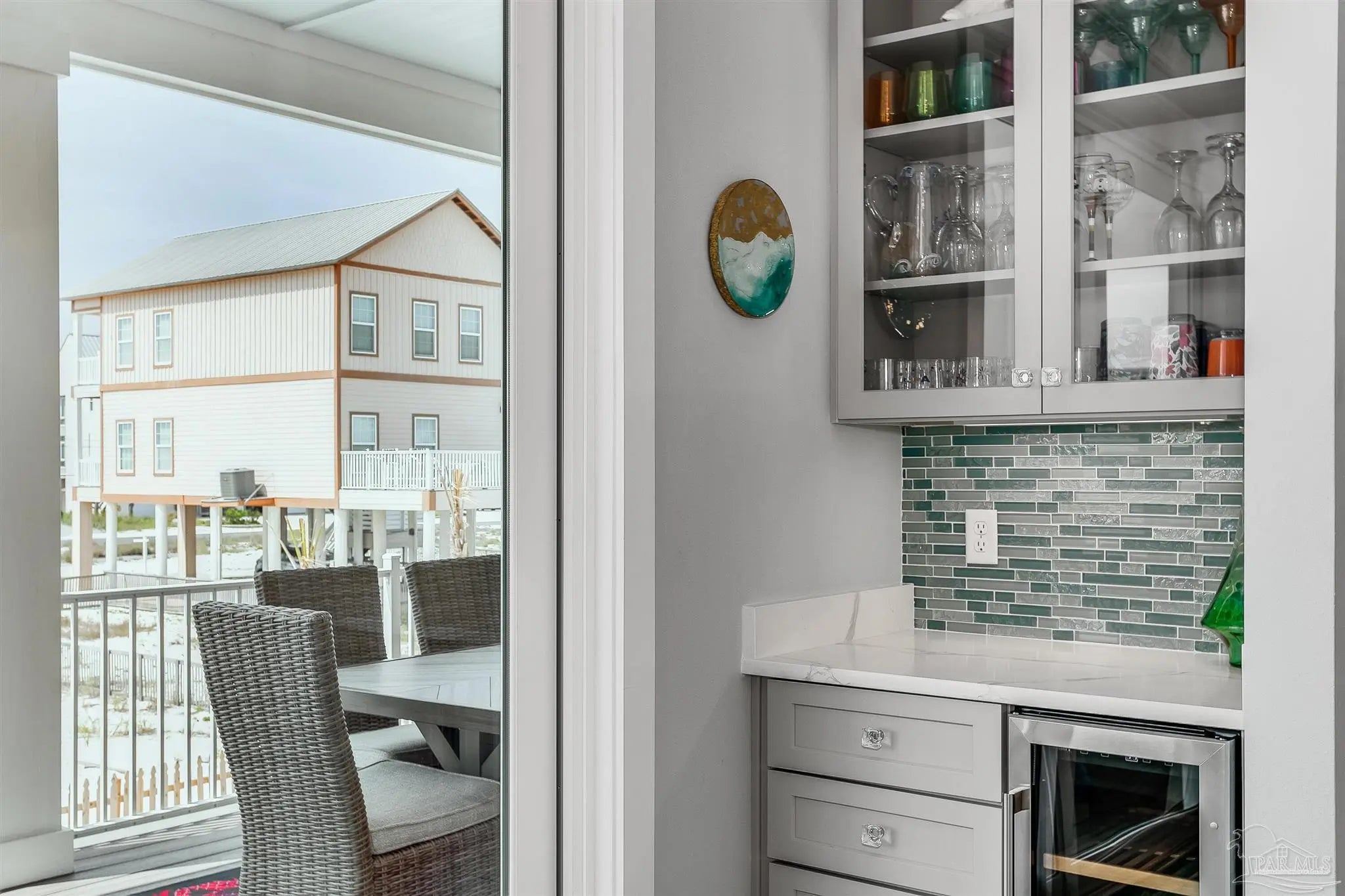 Enjoy unobstructed views of the Sound and Gulf from the oversized balconies. 5 bedrooms plus bunk bedroom, 5.5 baths. fully furnished home with Elevator, private Pool, and a 6-seater golf cart. The beach is a short walk or golf cart ride away. Upgraded Open Floor Plan with many upgraded custom designer finishes that include square edge custom cottage trim, high ceilings, tall 8-ft doors, and porcelain plank tile throughout. The Chef’s kitchen has water views in every direction, high end appliances, expansive breakfast bar, quartz counter tops, double ovens, under counter microwave and wine cooler. Two guest bedrooms on the first living level each with their own bath. Two other guest bedrooms each with their own bath, bunk room and Master suite are on the second living level. Half bath is next to the bunk room and a laundry room. The Master suite overlooks the Gulf of Mexico, has king bed, twin pull out sofa, master bath with large walk-in shower, soaking tub, double vanity with Quartz countertop, and motorized privacy roller shade. The garage adjoins the pool deck and has storage areas for swim and beach toys, 10 bikes and second refrigerator for easy access to drinks and cool treats. Large garage area has plenty of space for vehicles and golf cart. Located a short distance from the National Seashore and walk-over to the Gulf and minutes away from local attractions, shopping and restaurants. Opportunity for Vacation Home or Vacation Rental Investment “Peachy Queen” has dual Masters and sleeps up to 20 people. Begin to experience Coastal Beach Life!