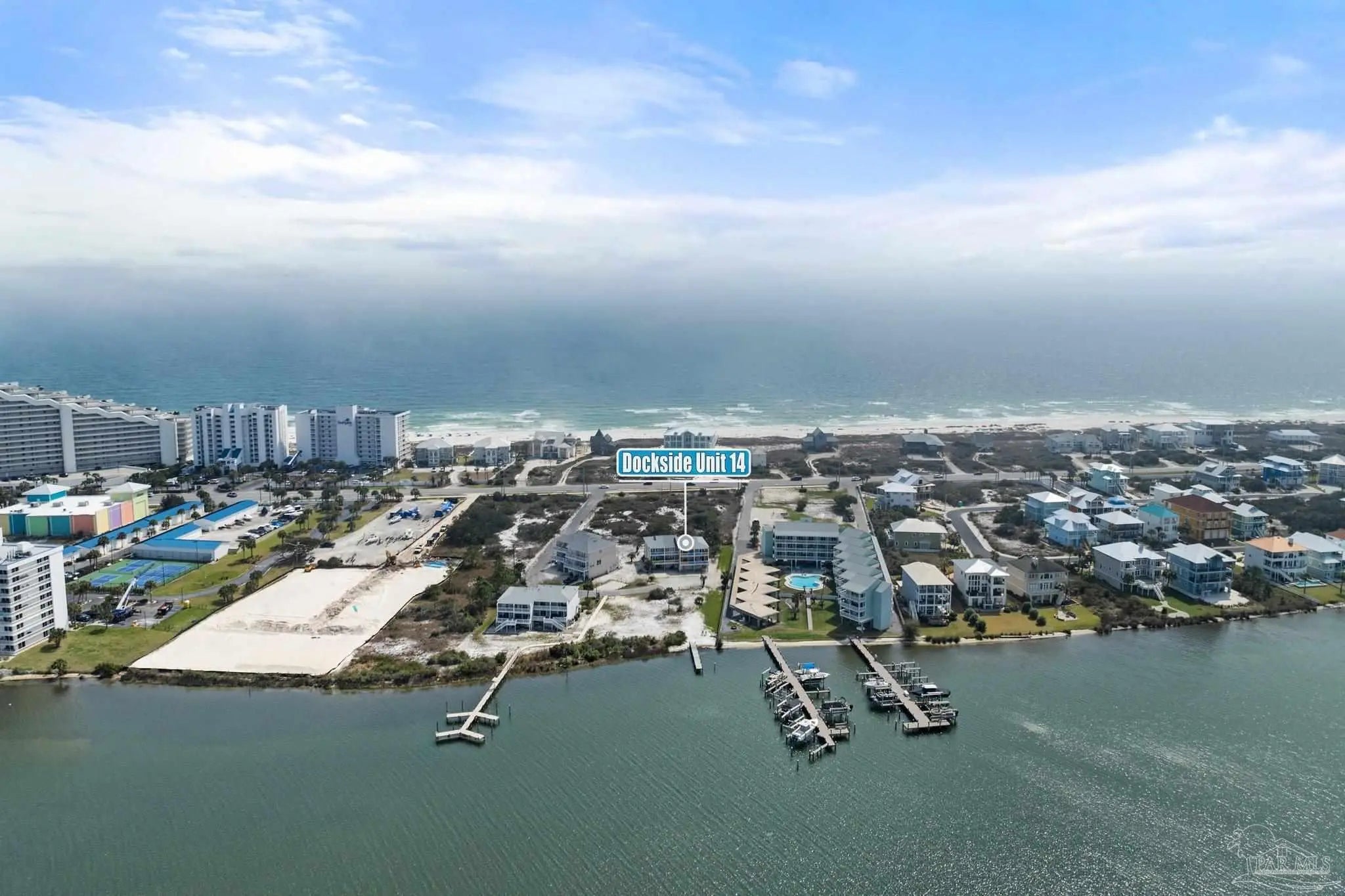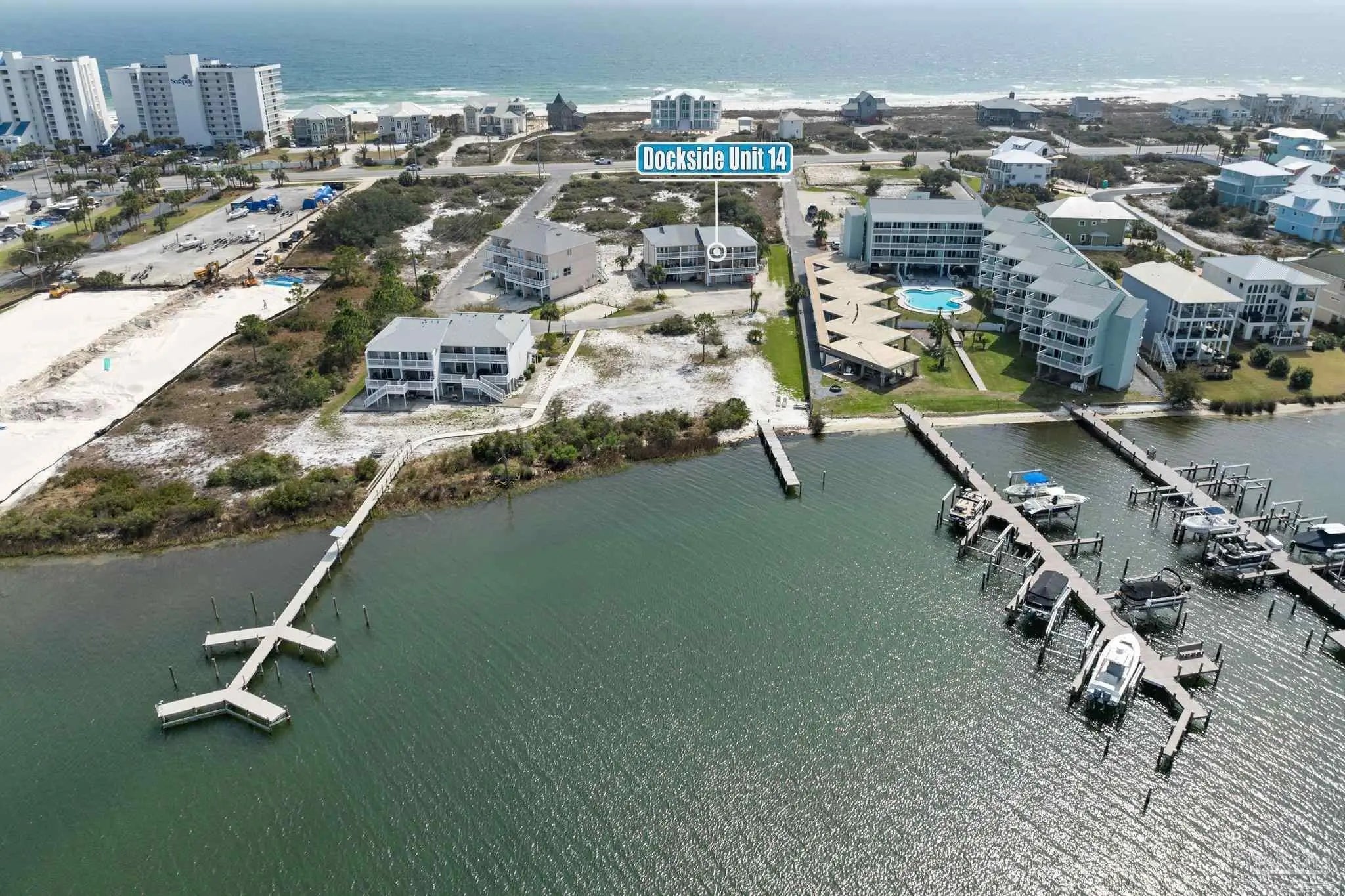 Dockside Villas is a low density group of Townhomes located in Beautiful Perdido Key, FL & situated along Old River, with nearby Public Beach access. Unit 14 has an enclosed garage, incorporating the laundry room and storage space on ground level. This unit is a 2/2.5, featuring the first floor living areas including the Kitchen, Living Room, 1/2 bath, North & South facing Balconies and BRAND NEW LVP PLANK FLOORING. The second floor houses the bedrooms, baths, and a 16'x6' Balcony overlooking Old River, providing a layout that separates social & private spaces. The complex conveys with waterfront on Ole River, two separate piers, wet boat slips, & fish cleaning station on a first come basis to owners. The complex is centrally located between Orange Beach and Pensacola, allowing flexibility in everyday life and the many waterways this area has to offer. There are 3 Public Boat Launches and 6 Public Beaches very close, granting convenience to the many ways to experience and enjoy this exciting beach community. This townhome would make for a great homestead, or investment property with the great tenant pool of military personnel that train in our area. Located in the heart of Perdido Key with proximity to restaurants, nightlife, sugar sand beaches & numerous waterways that this Coastal Community offers. Schedule your private showing today.