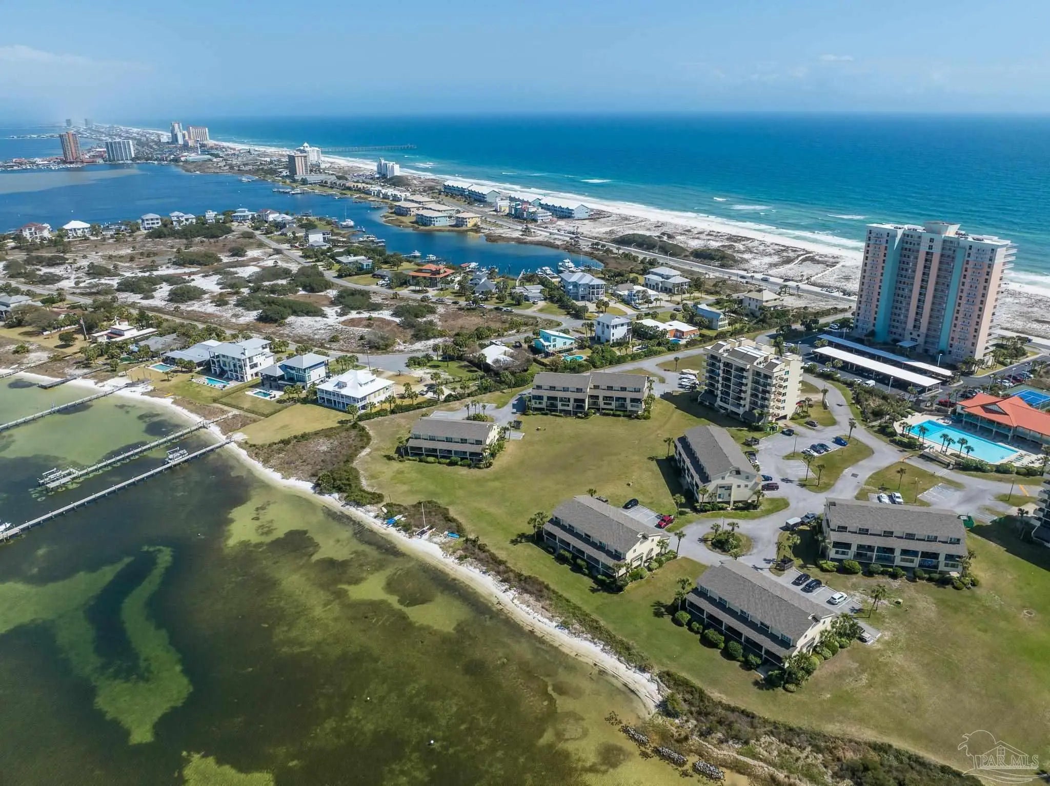 Experience the best of Pensacola Beach waterfront living in this beautifully remodeled 2-bedroom, 2.5-bath condo perfectly positioned on the tranquil Santa Rosa Sound and just steps from the Gulf of Mexico. This coastal retreat offers the ideal blend of luxury, comfort, and convenience, with direct beach access, serene water views, and resort-style amenities. Step inside to find a modern, move-in-ready interior featuring stylish tile and durable LVP flooring, an updated kitchen, and a spacious open-concept living and dining area. Enjoy fresh sea breezes and stunning views from your expansive covered lanai, perfect for morning coffee, evening cocktails, and year-round outdoor living. This condo offers exceptional storage—rare for beach properties—including a dedicated storage shed, additional attic space, and covered parking to keep your vehicle protected. The community features some of the best amenities on Pensacola Beach, including the largest pool on the island, a full game room, private Sound-side beach, tennis courts, and a scenic dock ideal for sunset walks, paddleboarding, fishing, or simply taking in the beauty of the Gulf Coast. Whether you're seeking a vacation rental investment, a serene full-time residence, or the perfect coastal getaway, this waterfront condo delivers incredible value, location, and lifestyle. Schedule your showing today and start living your Pensacola Beach dream.