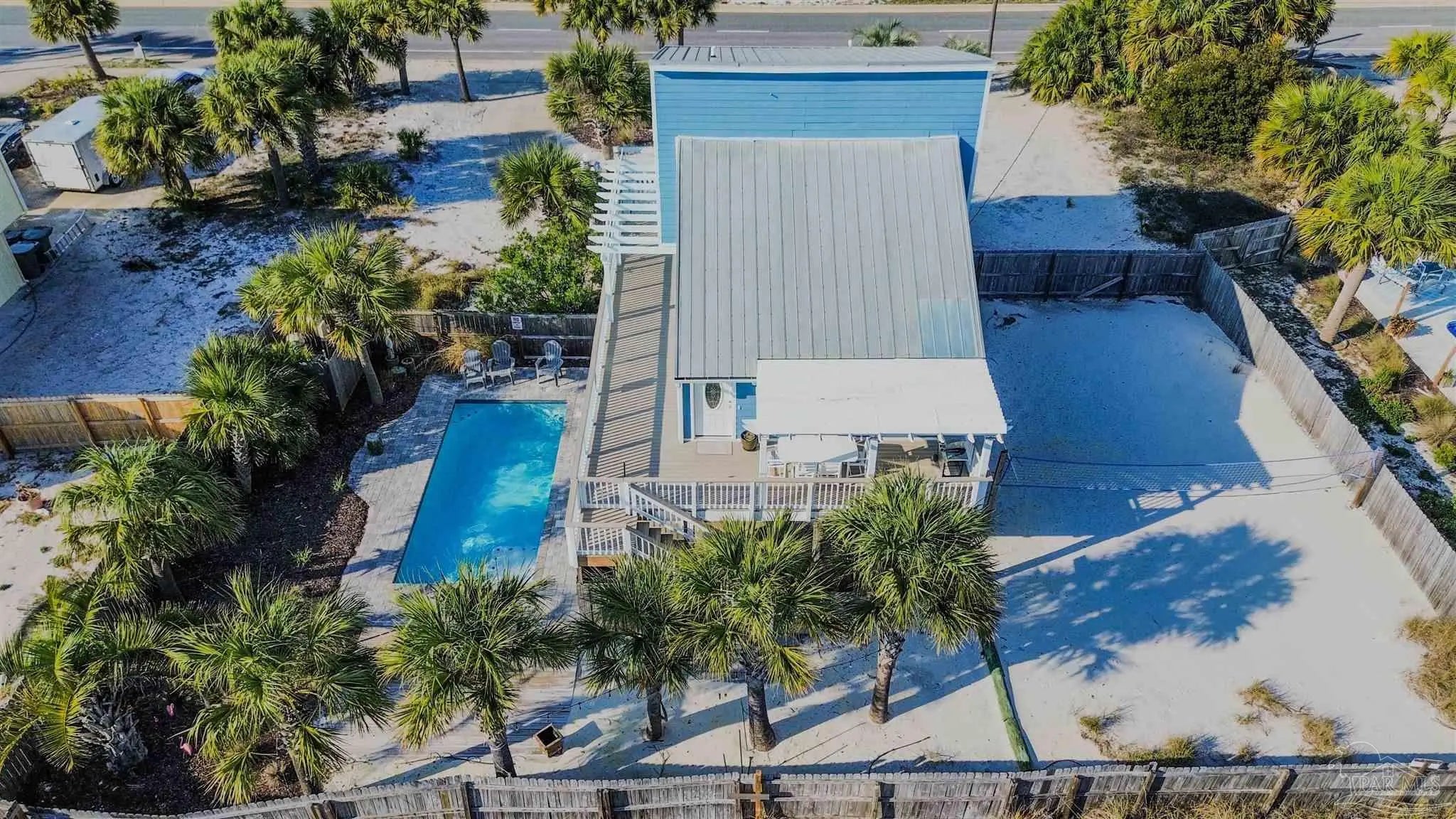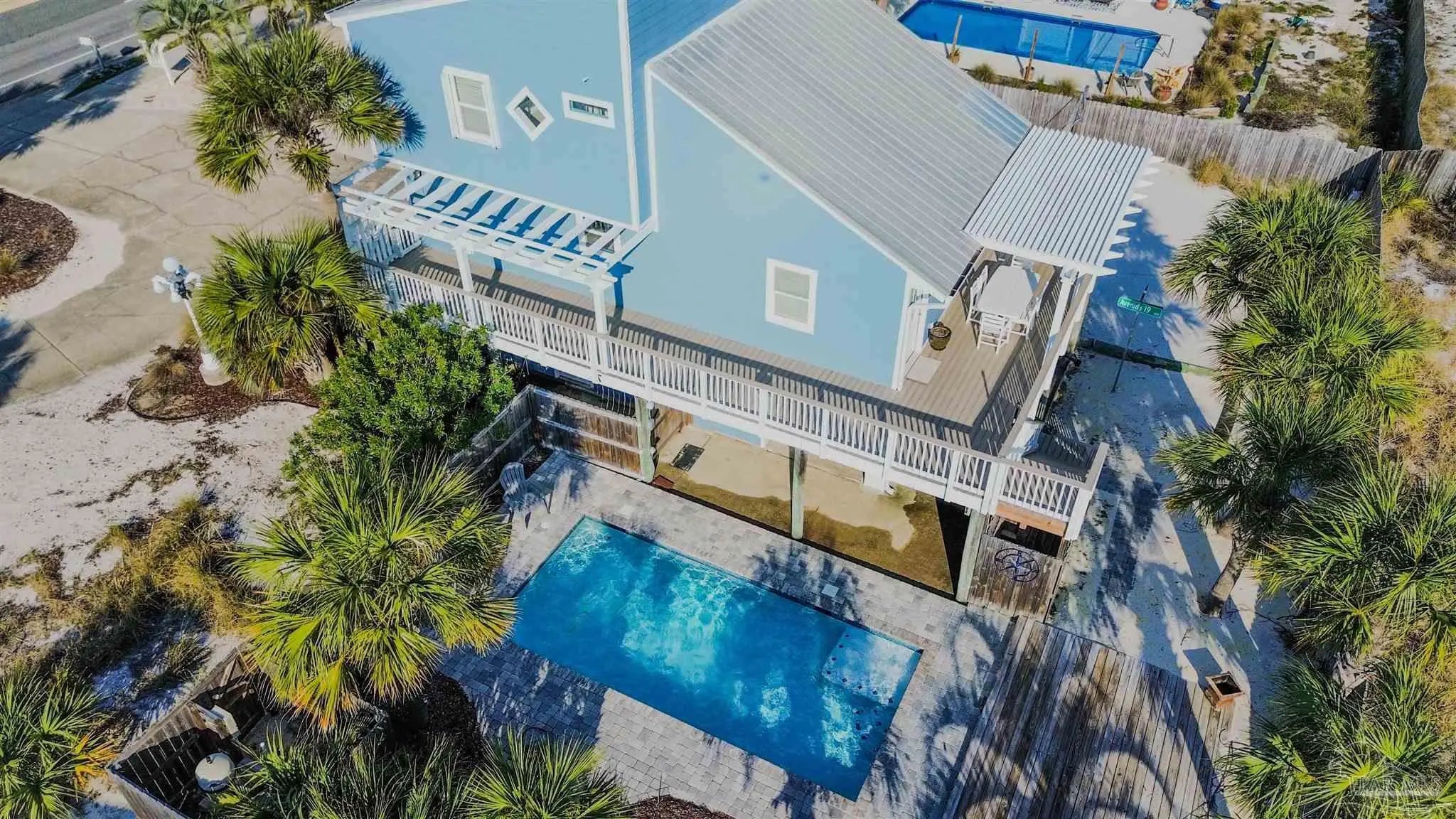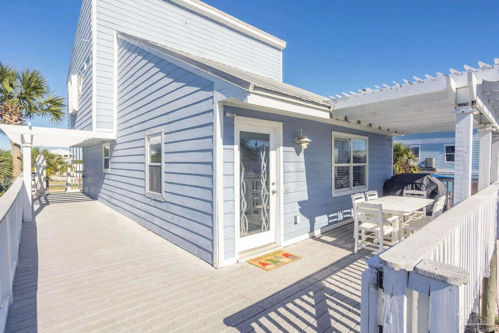 Welcome to your charming beach bungalow just a few blocks from the beach. This beautifully updated 3-bedroom, 2-bathroom home offers the perfect blend of comfort, style, and convenience. Step inside to be greeted with a large open concept living room with 12’ ceilings and natural light flooding in from all corners of the room. The kitchen is a chef’s dream, equipped with a new gas range, new stainless steel fridge, sleek granite countertops, large pantry, and plenty of space for meal prep. Off the dining room is the primary suite with a large walk-in closet, and an en suite bathroom. Both bathrooms are fully remodeled featuring custom vanities, quartz countertops and floor-to-ceiling tiled showers. On your way upstairs passing the overlook down into the living room is the remaining two bedrooms and second bathroom. The first bedroom off the hall is currently a large bunk room with a large walk-in closet and tv nook. The final bedroom is at the end of the hall and features a private balcony with breathtaking views of the bay. Outside your paradise oasis awaits with a wraparound deck, large gunite pool with paver decking, and volleyball court. The home also boasts brand-new moisture shield decking, new hand railings and a fresh coat of exterior paint. For those with future expansion plans, there is a large area to the East of the property that offers potential for an extension down the road. The possibilities are endless! This property also is a highly successful rental property generating rental income north of $85,000/annually and comes fully furnished, turnkey! Whether you’re soaking in the sun by the large gunite pool or taking a short walk to the beach, this home offers the ideal coastal living experience for both full time residents or investors! Don’t miss out on this coastal gem – schedule a tour today!