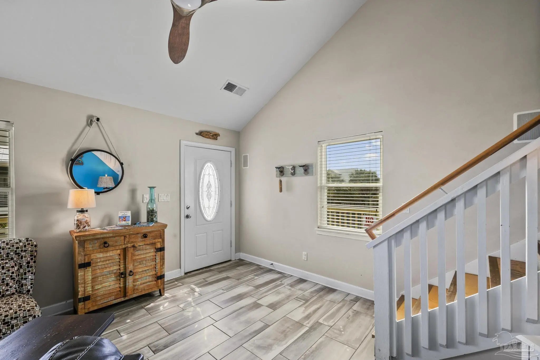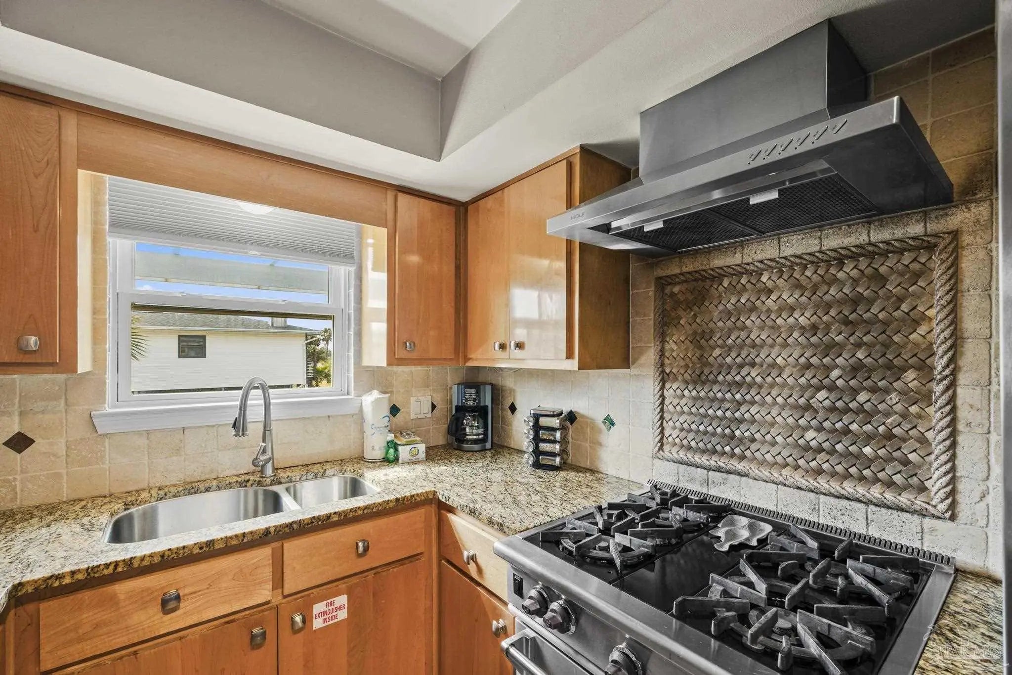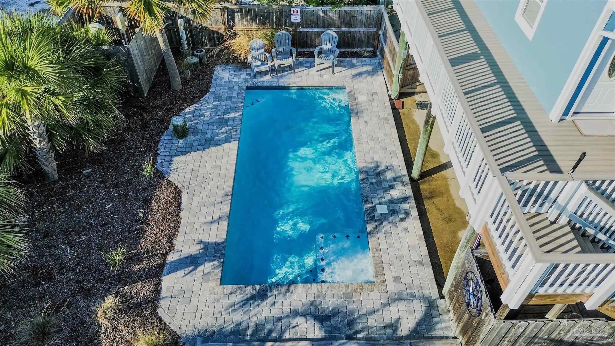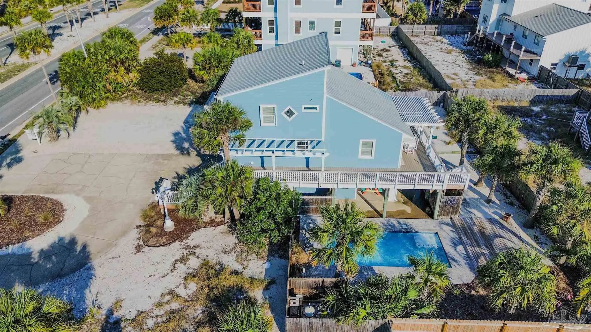 Welcome to your charming beach bungalow just a few blocks from the beach. This beautifully updated 3-bedroom, 2-bathroom home offers the perfect blend of comfort, style, and convenience. Step inside to be greeted with a large open concept living room with 12’ ceilings and natural light flooding in from all corners of the room. The kitchen is a chef’s dream, equipped with a new gas range, new stainless steel fridge, sleek granite countertops, large pantry, and plenty of space for meal prep. Off the dining room is the primary suite with a large walk-in closet, and an en suite bathroom. Both bathrooms are fully remodeled featuring custom vanities, quartz countertops and floor-to-ceiling tiled showers. On your way upstairs passing the overlook down into the living room is the remaining two bedrooms and second bathroom. The first bedroom off the hall is currently a large bunk room with a large walk-in closet and tv nook. The final bedroom is at the end of the hall and features a private balcony with breathtaking views of the bay. Outside your paradise oasis awaits with a wraparound deck, large gunite pool with paver decking, and volleyball court. The home also boasts brand-new moisture shield decking, new hand railings and a fresh coat of exterior paint. For those with future expansion plans, there is a large area to the East of the property that offers potential for an extension down the road. The possibilities are endless! This property also is a highly successful rental property generating rental income north of $85,000/annually and comes fully furnished, turnkey! Whether you’re soaking in the sun by the large gunite pool or taking a short walk to the beach, this home offers the ideal coastal living experience for both full time residents or investors! Don’t miss out on this coastal gem – schedule a tour today!