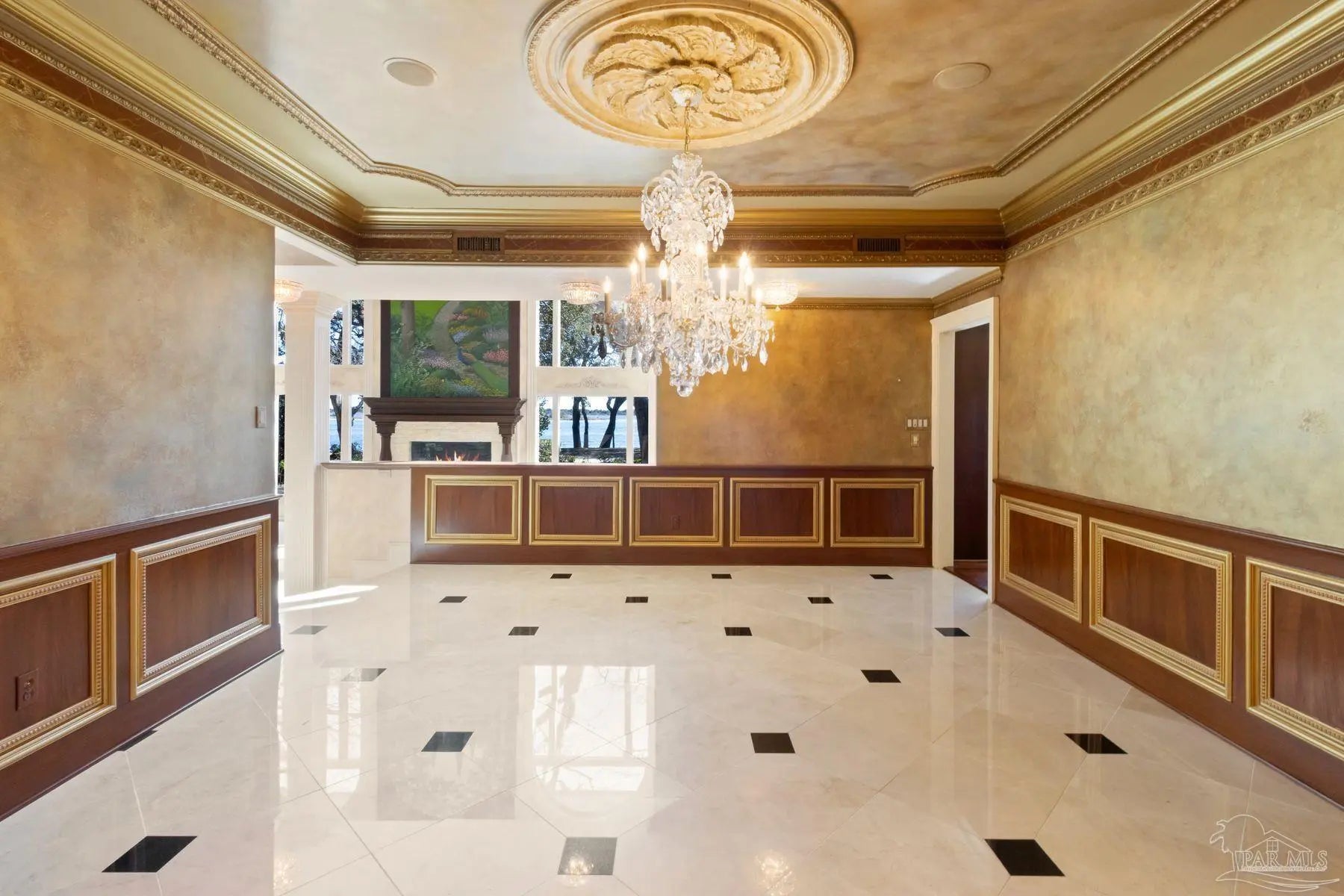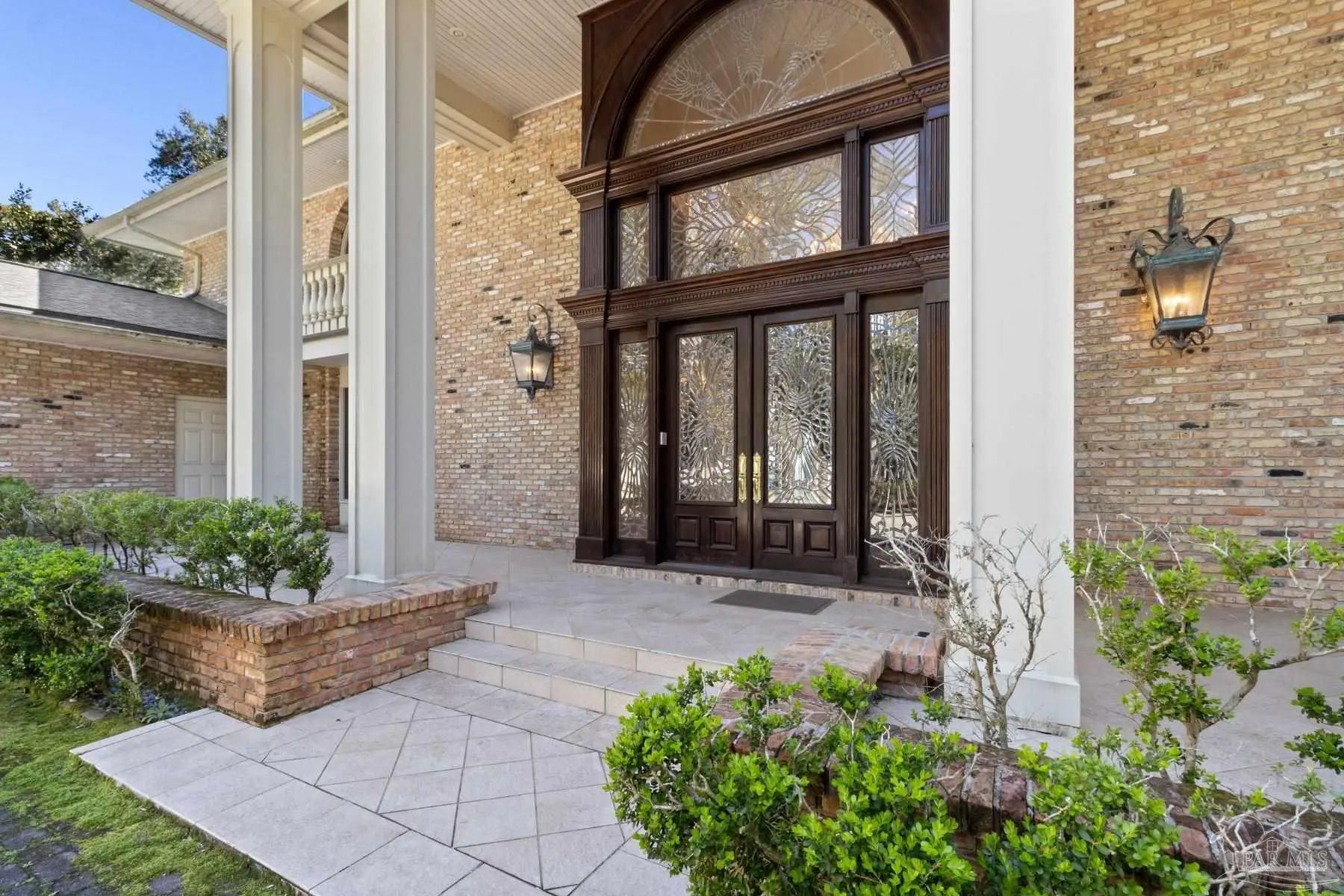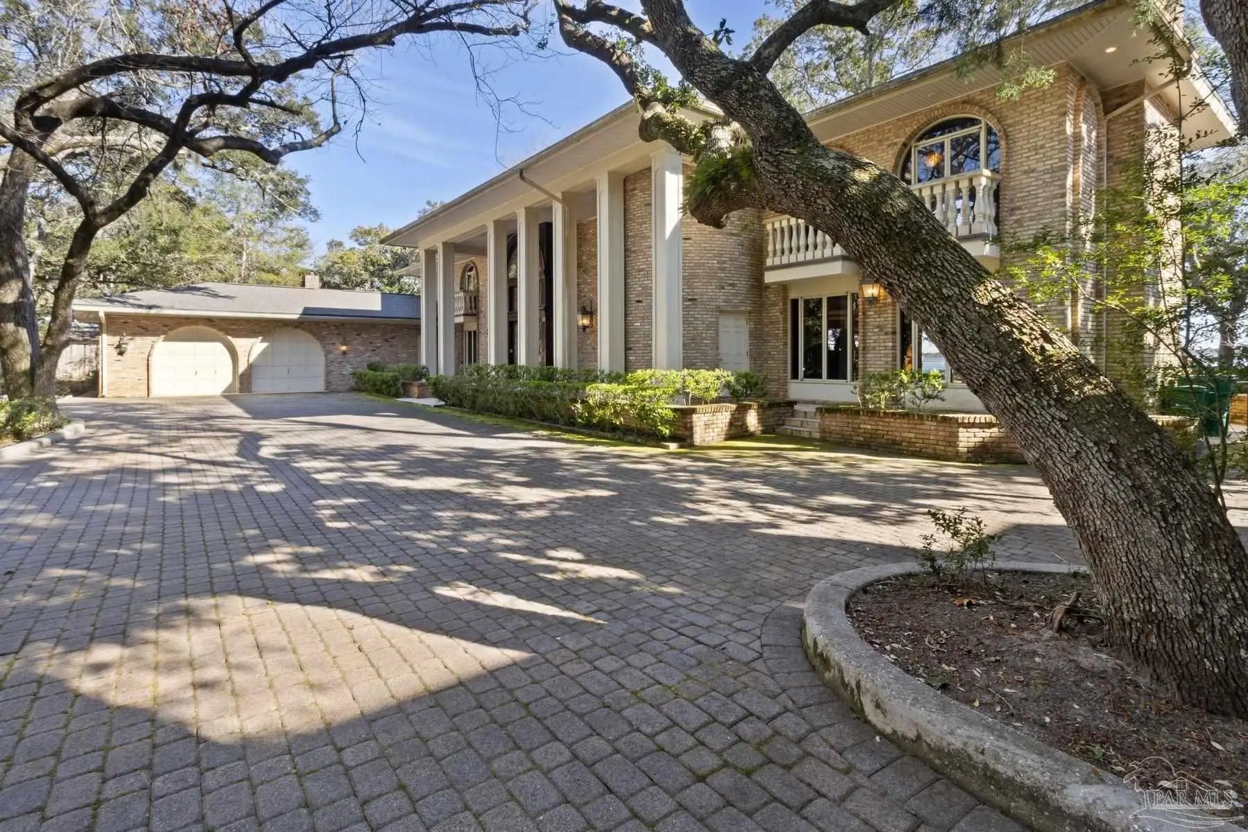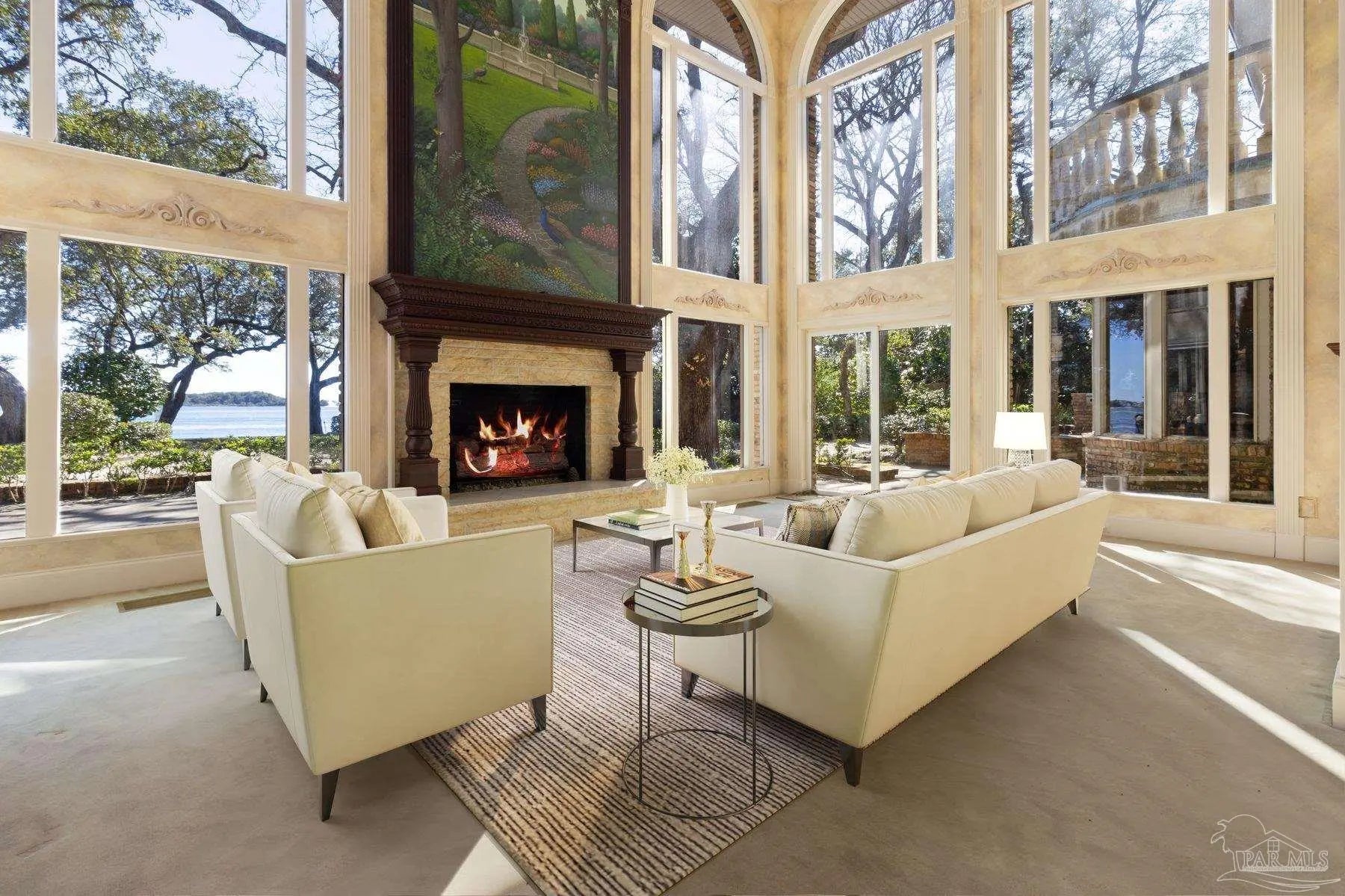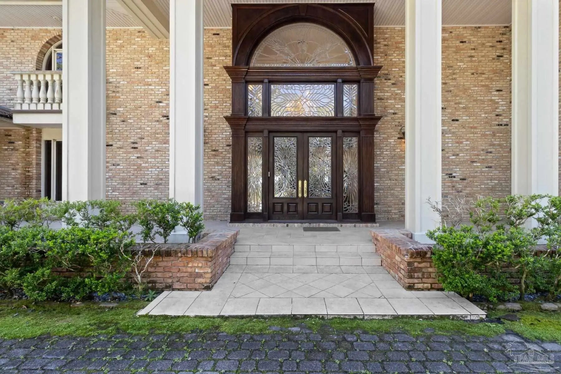 Tucked away on 2.75 acres along the Santa Rosa Sound, this stately waterfront estate offers an extraordinary combination of privacy, deep water access and breathtaking views of the barrier islands and the gulf. A 600-foot oak-lined driveway leads to this impressive 5,120-square-foot Old Chicago brick home, where timeless elegance meets the beauty of the Intracoastal Waterway. With 150 feet of private sandy beach and deep water frontage, this property provides unparalleled access to the water. Whether launching a kayak, paddleboard or jet ski right from your backyard or simply enjoying the serenity of the water from the verandas, this is a retreat like no other. Inside, architectural details abound. Crystal chandeliers, imported mahogany millwork, and soaring 25-ft. ceilings frame a home built for both grandeur and comfort. A wall of windows in the main living area captures stunning water views, while three fireplaces add warmth and charm. The primary suite is a private sanctuary, complete with a fireplace, balcony and an opulent dressing area. A library with a wet bar offers a quiet escape, and the kitchen is equipped with designer Sub-Zero and Thermador appliances, including warming and refrigeration drawers. Outdoor living is equally remarkable with covered porches, open patios and a separate artist studio, all set against the backdrop of sweeping waterfront vistas. The gated entrance and long paver driveway enhance the estate’s exclusivity. For those seeking a private deepwater retreat, this property offers an unparalleled lifestyle. Alternatively, its expansive acreage presents an exceptional development opportunity, with potential for multiple waterfront homesites and additional residences with water access. Whether as a grand estate or an exclusive residential enclave, this Mary Esther property is a rare and remarkable find.